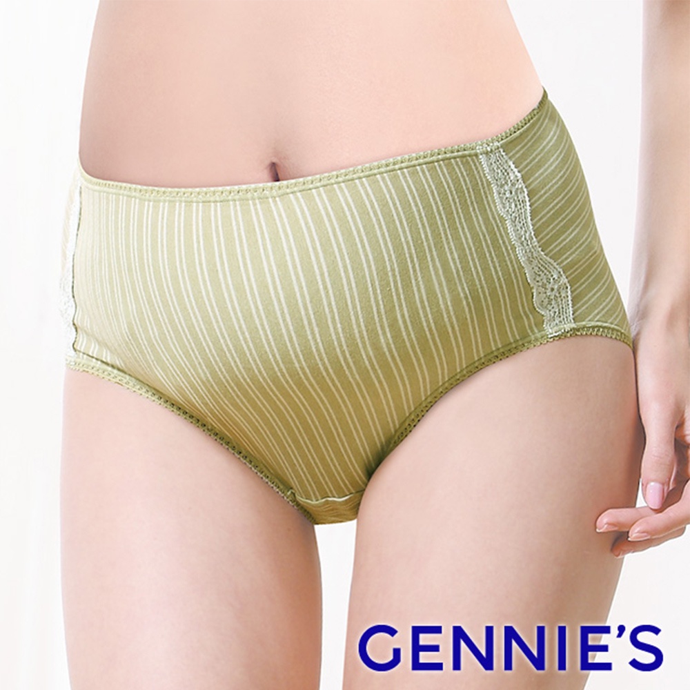 • 【Gennies 奇妮】天然原棉系列 孕婦高腰內褲-條紋綠(GB27)