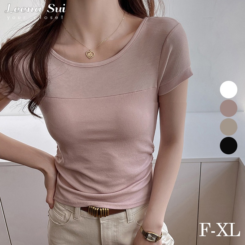 天絲韓系小圓領正肩t恤 短袖高級拼接收腰設計感上衣 021034黑,均碼|黑,XL|白,均碼|白,XL|粉,均碼|粉,XL|灰綠,均碼|灰綠,XLT-shirtsLeenaSui ~台灣賣家 隔日到貨