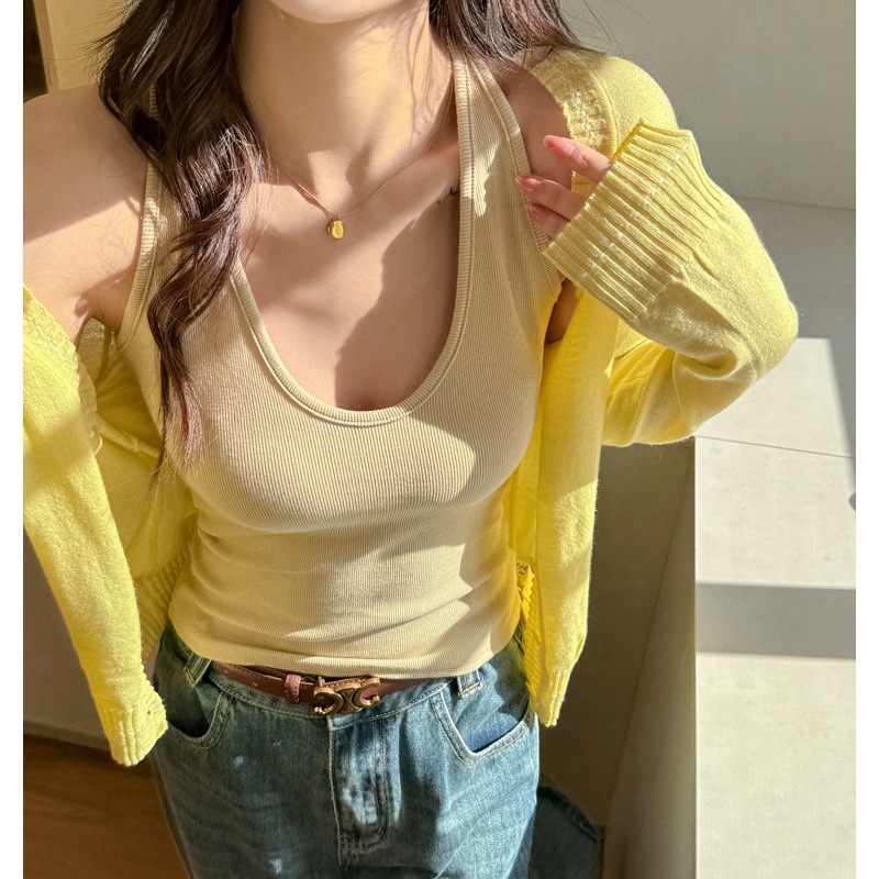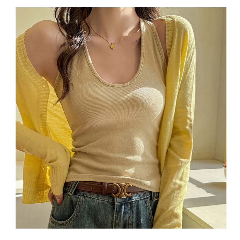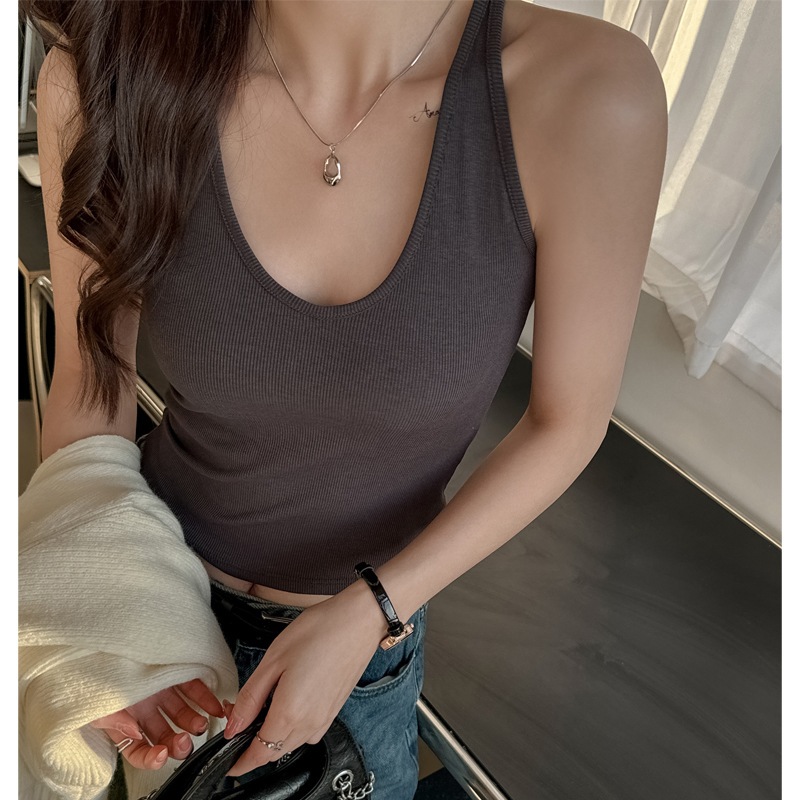 • 美式u領打底工子小吊帶背心女內搭辣妹遮副乳可外穿無袖上衣 028609