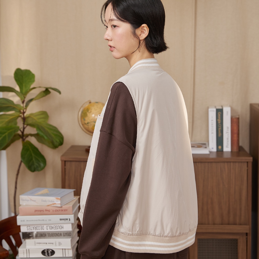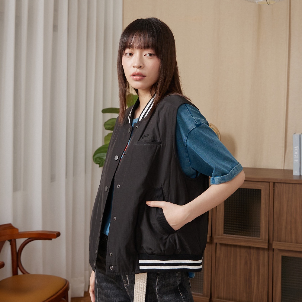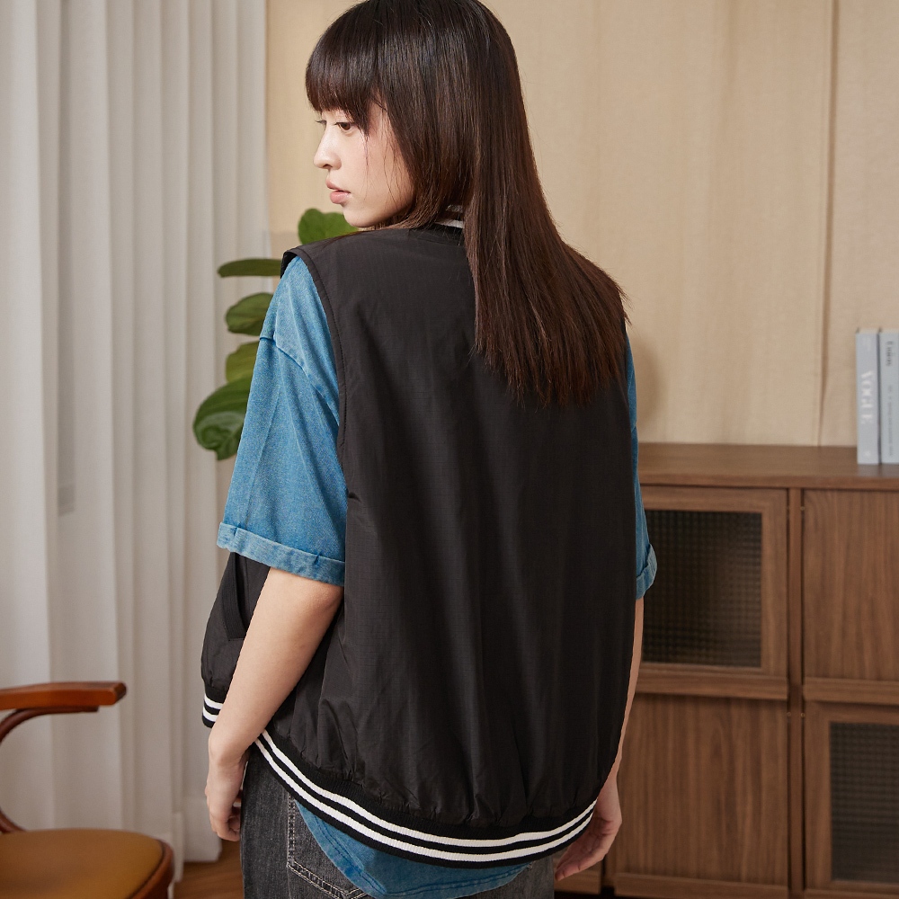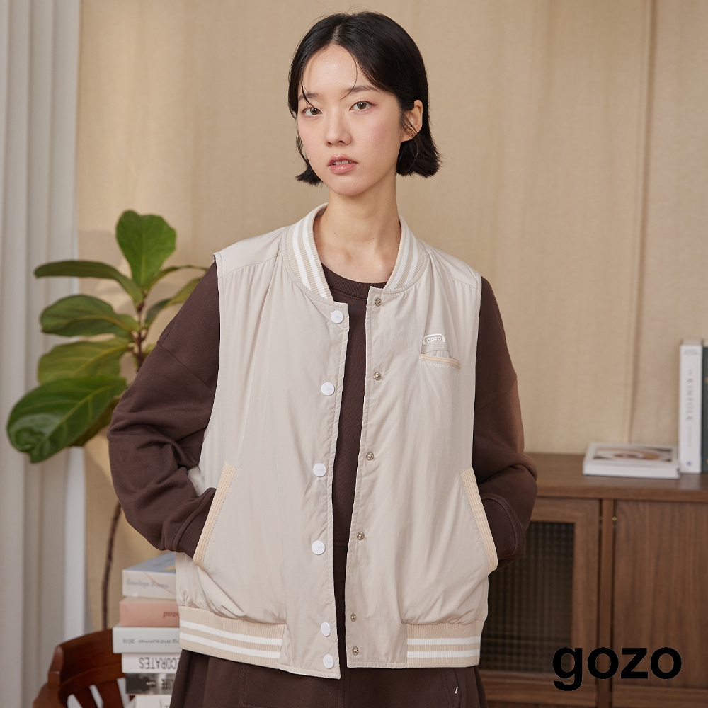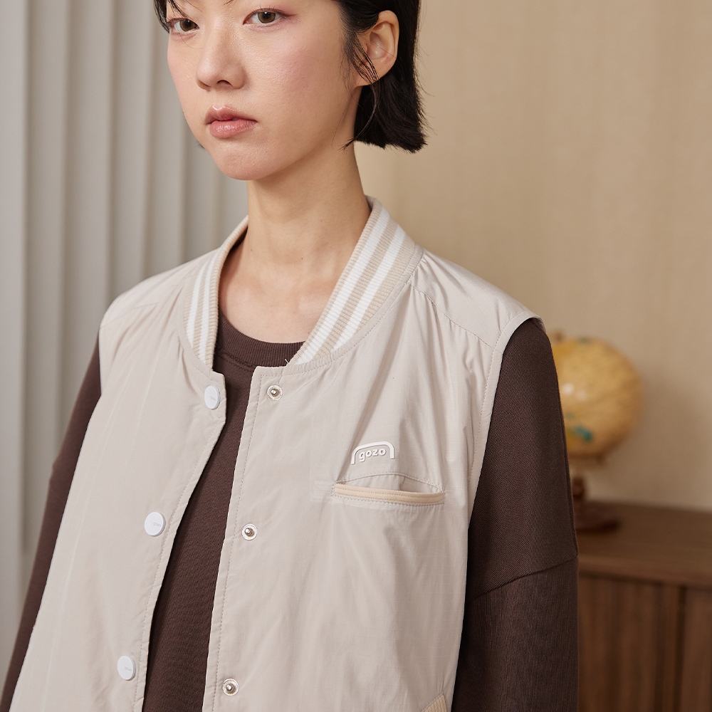 【gozo】gozo書籤鋪棉棒球背心(黑色/淺卡其_F) | 女裝 V領 保暖黑色,F|淺卡其,FVestsgozo 品牌旗艦店