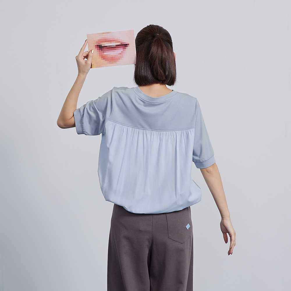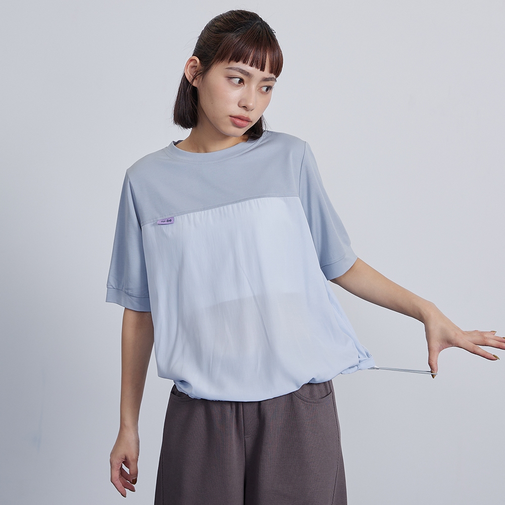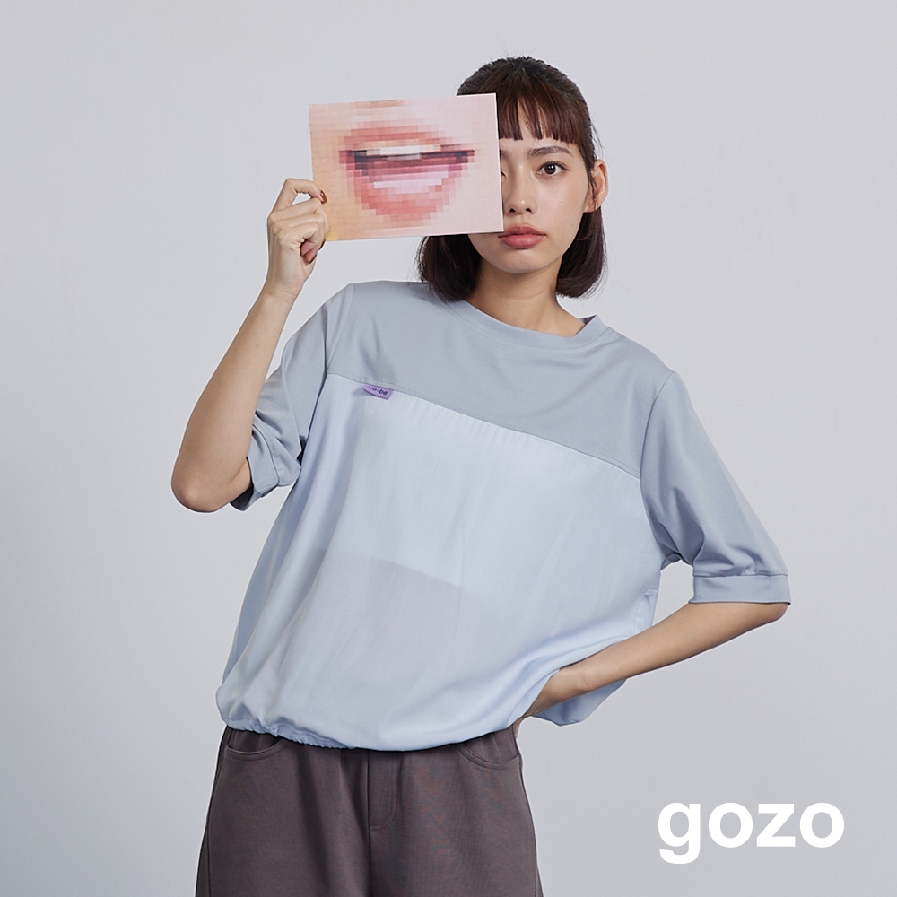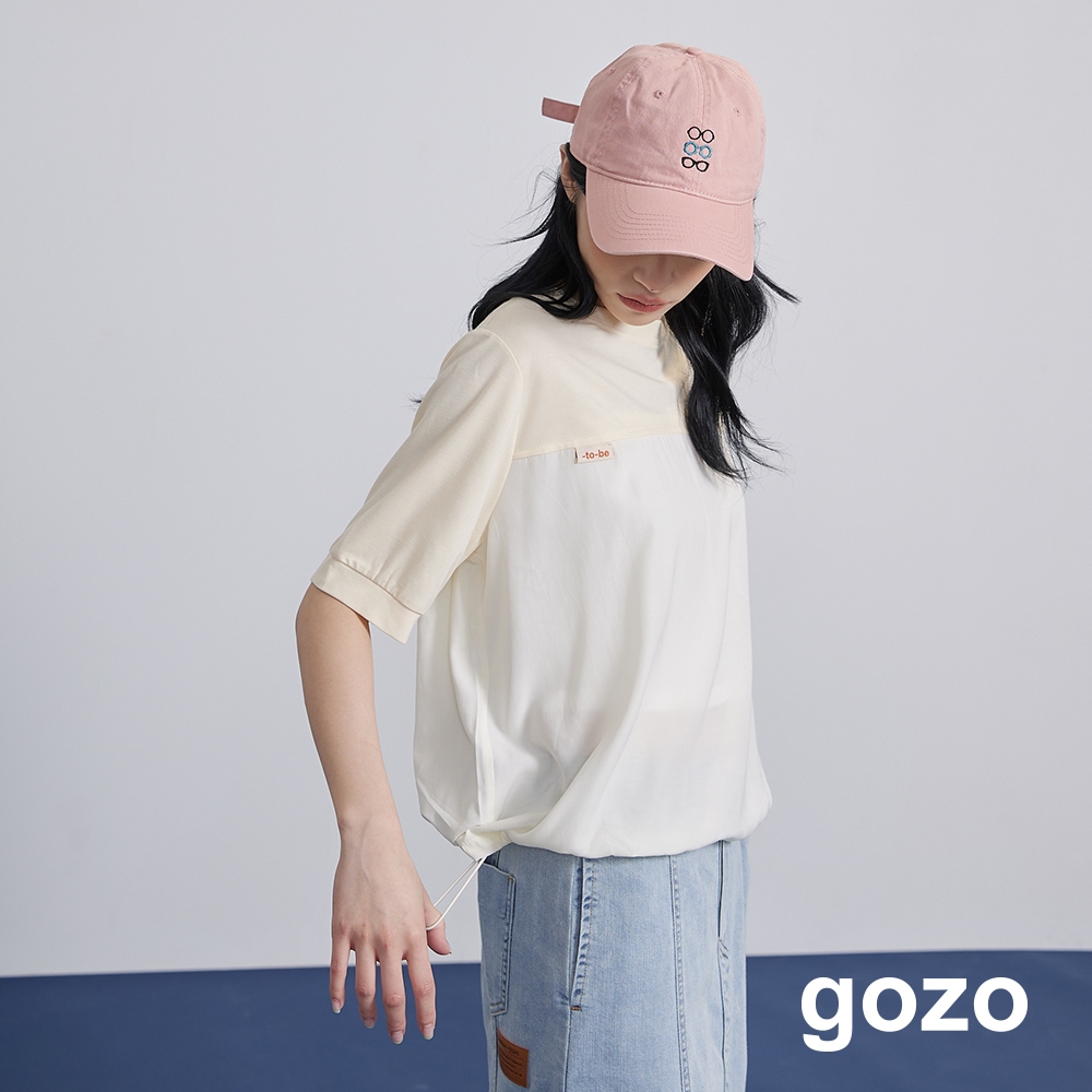 【gozo】➤微透拼接抽繩造型T恤(淺黃/淺藍_F) | 女裝 圓領 百搭淺黃,F|淺藍,FT-shirtsgozo 品牌旗艦店