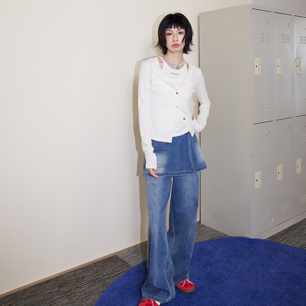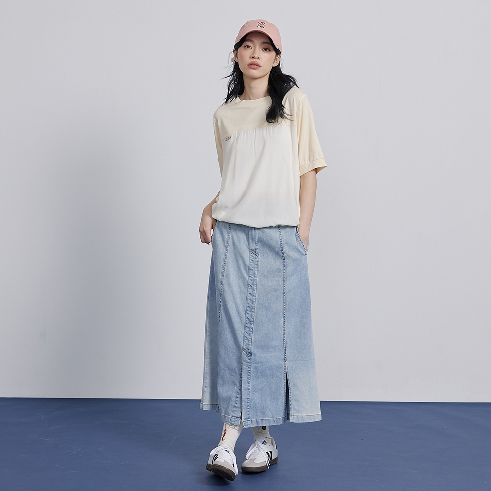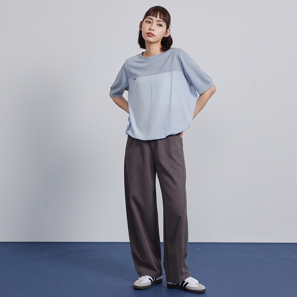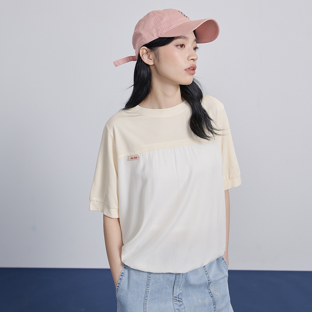 【gozo】➤微透拼接抽繩造型T恤(淺黃/淺藍_F) | 女裝 圓領 百搭淺黃,F|淺藍,FT-shirtsgozo 品牌旗艦店