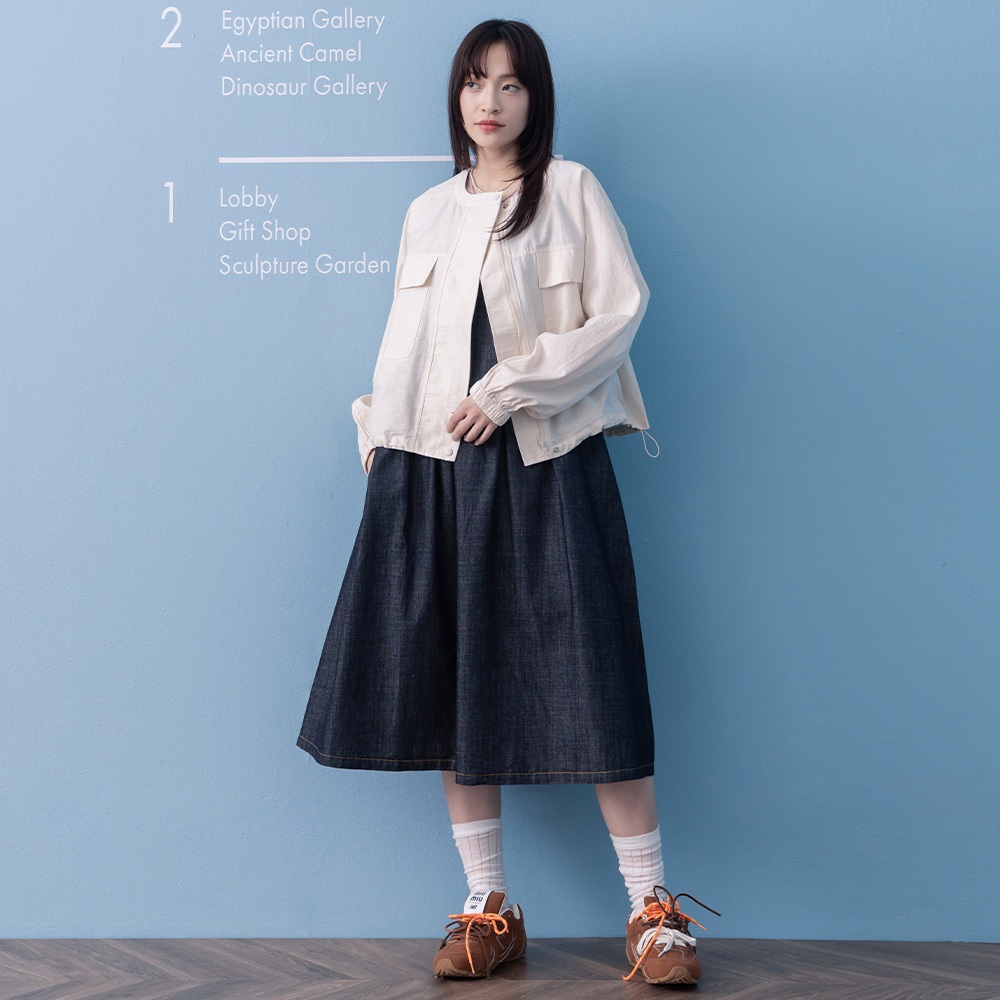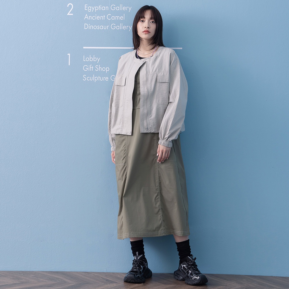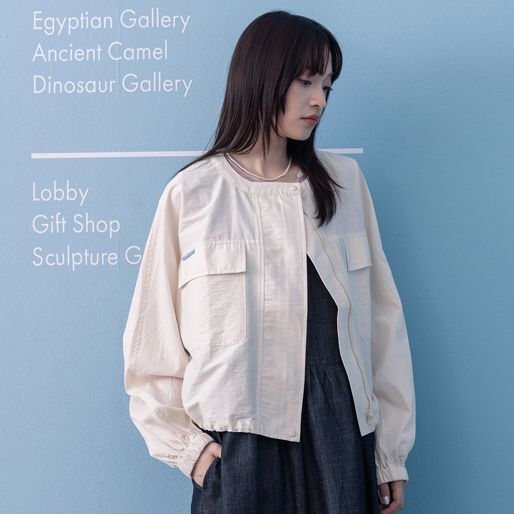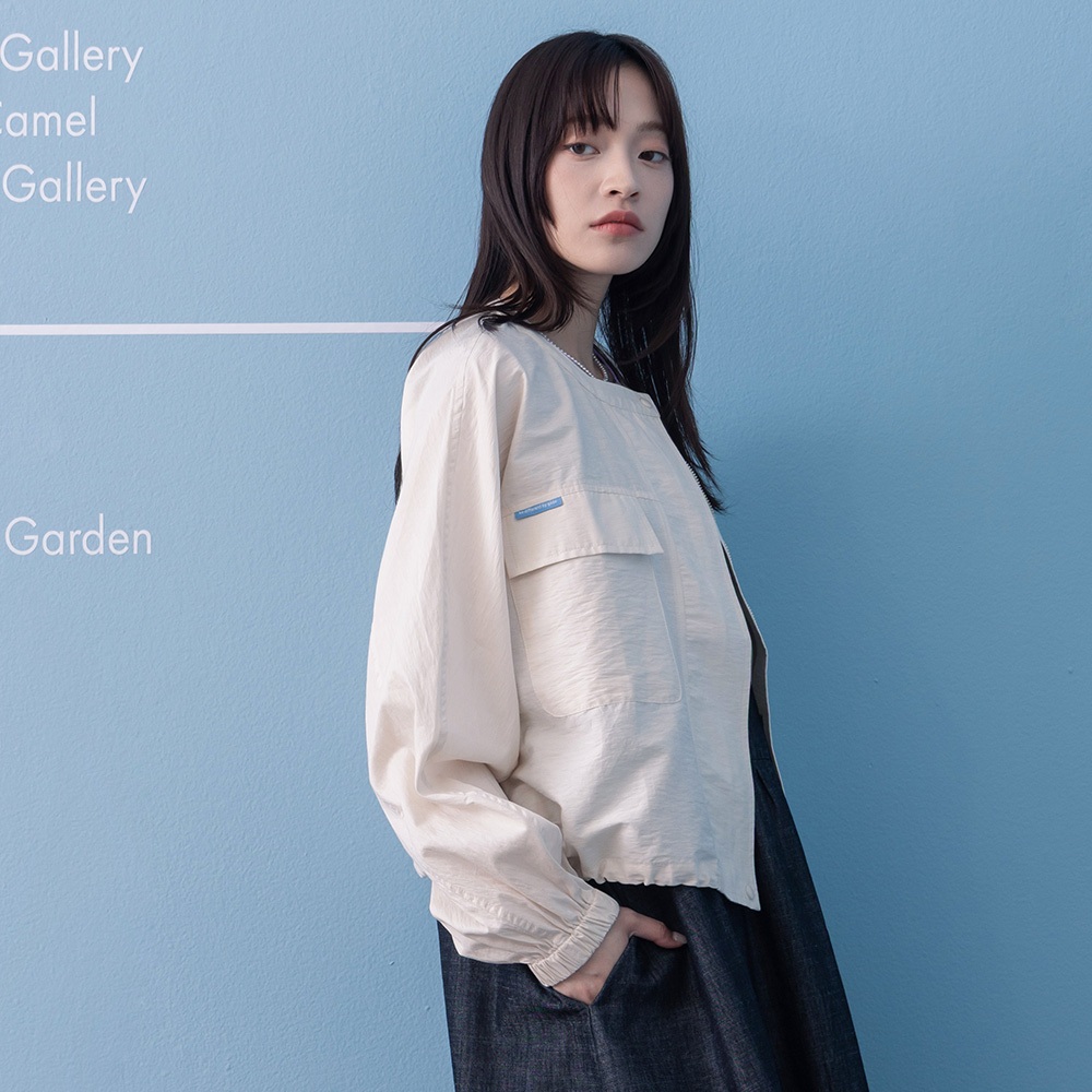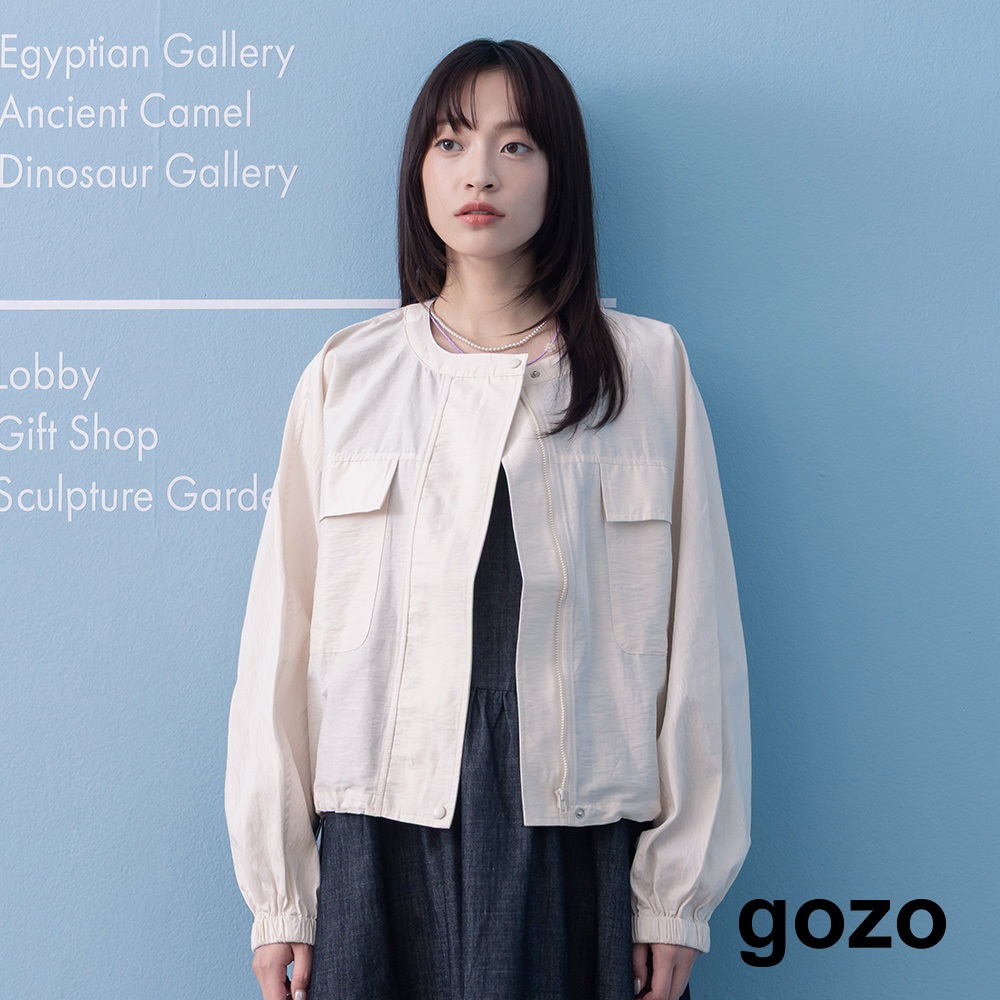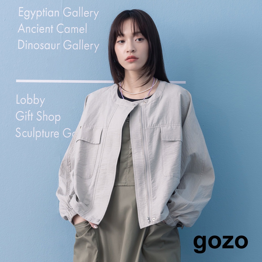 【gozo】➤大口袋下擺抽繩圓領拉鍊外套(灰色/米白_F) | 女裝 圓領 休閒灰色,F|米白,FJacketsgozo 品牌旗艦店