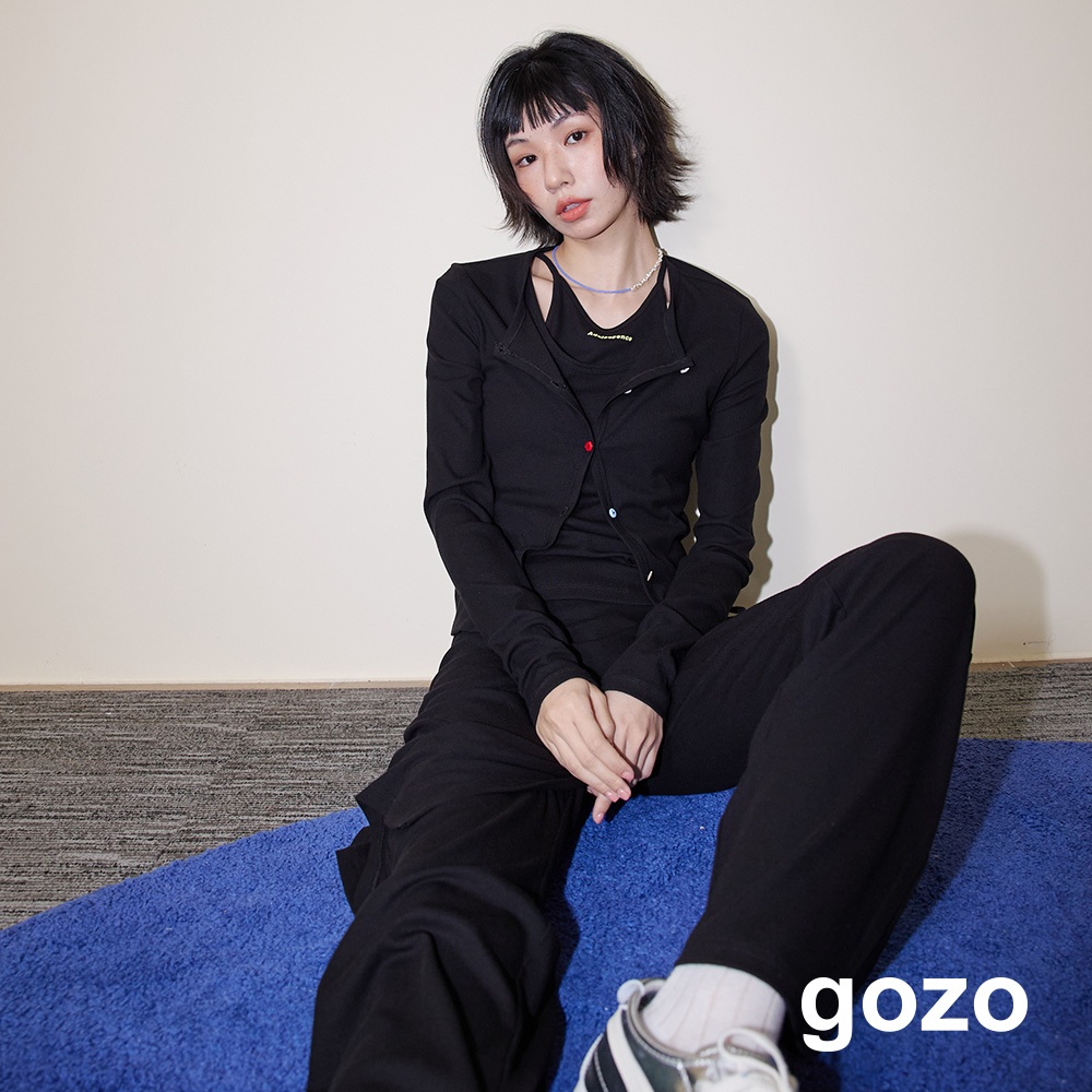 【gozo】A|造型鈕扣開襟彈性合身外套(黑色/米白_F) | 女裝 圓領 休閒黑色,F|米白,FOthersgozo 品牌旗艦店