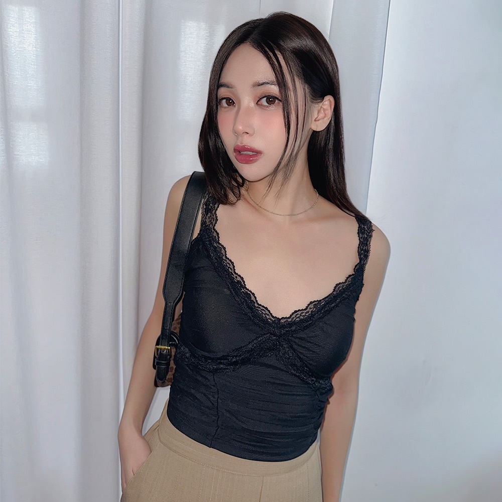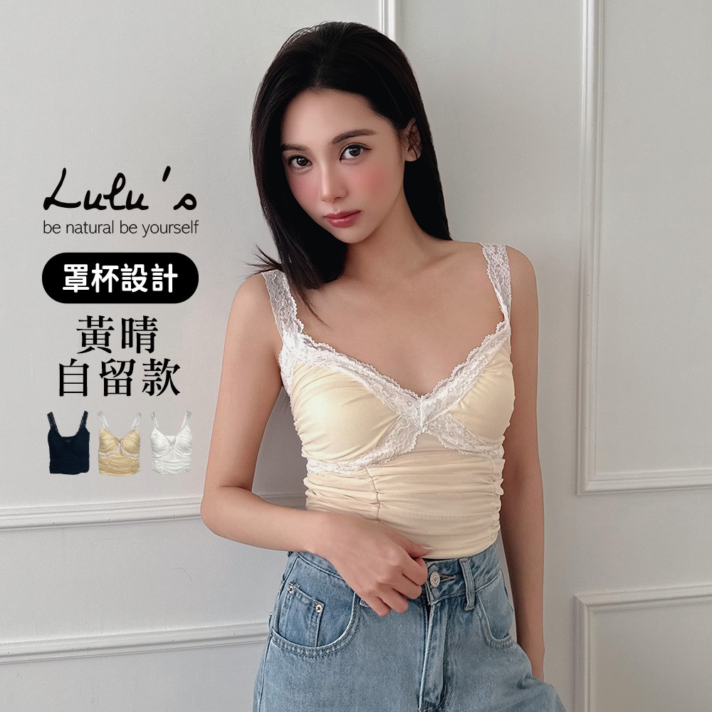 LULUS/純慾蕾絲網紗深V罩杯BRATOP背心3色【A01250109】法式背心 睡衣250326杏|黑|白Tanks & CamisolesLULUS