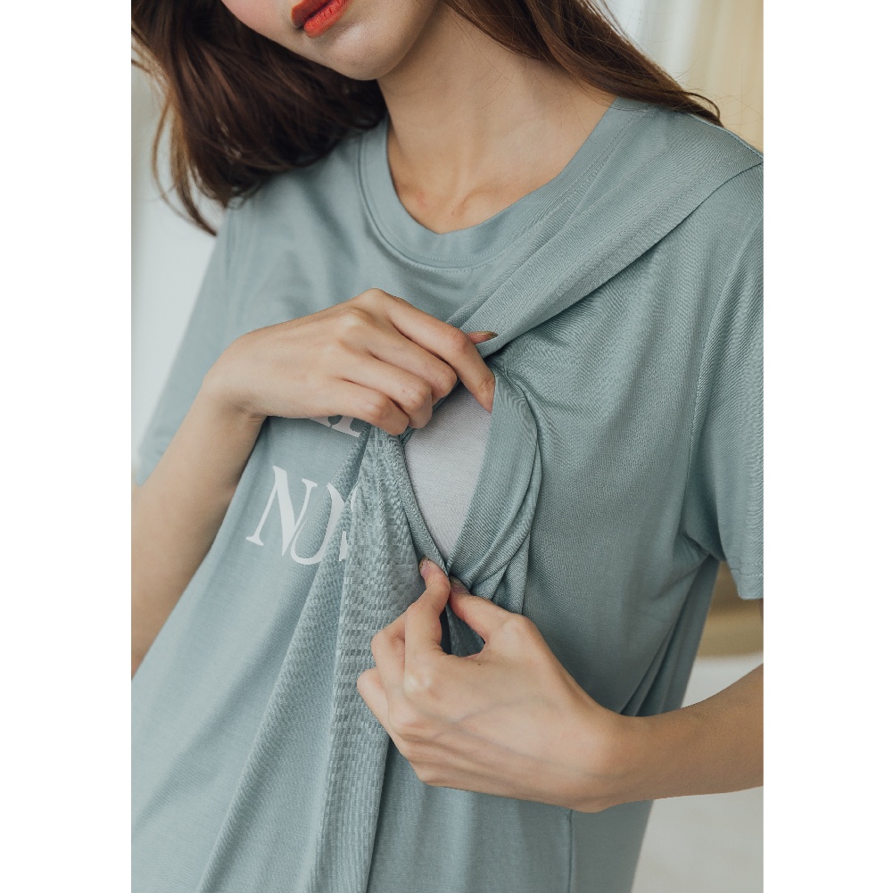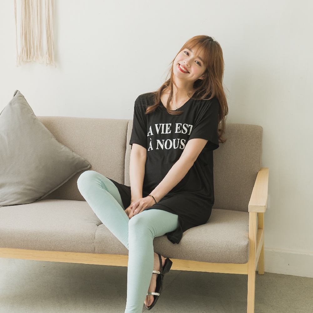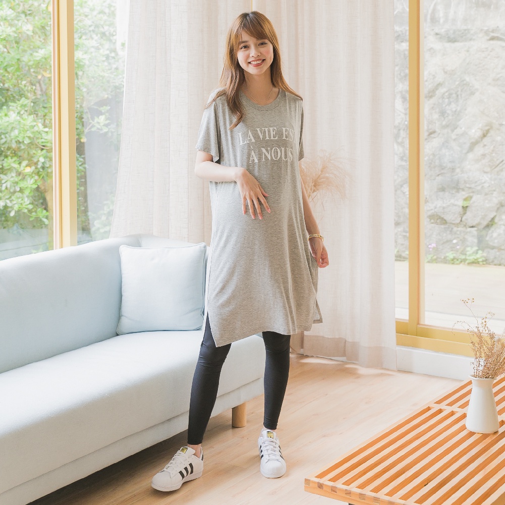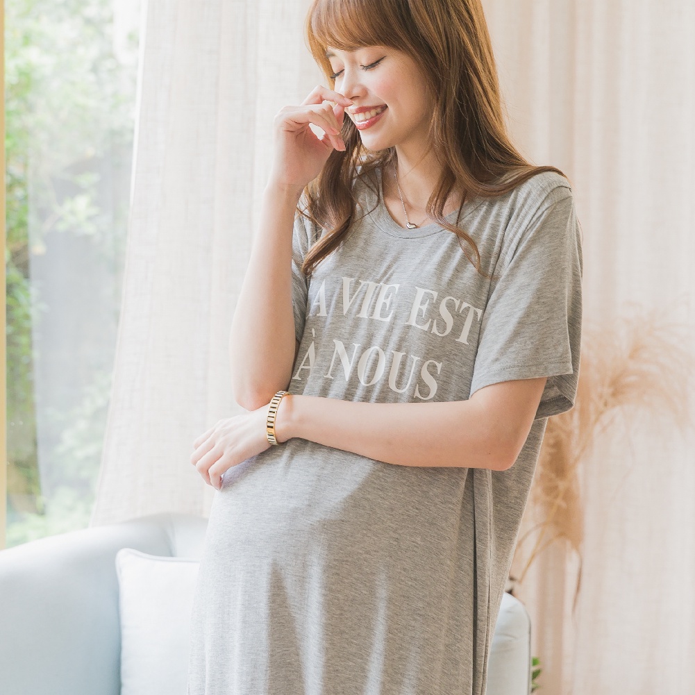 Mamamia孕婦裝 LA VIE垂墜感棉柔長版哺乳睡衣 正韓製 哺乳洋裝 連衣裙 短袖 哺乳衣 月子服 [A1507]黑|灰|綠|粉Breastfeeding WearMamamia孕婦裝