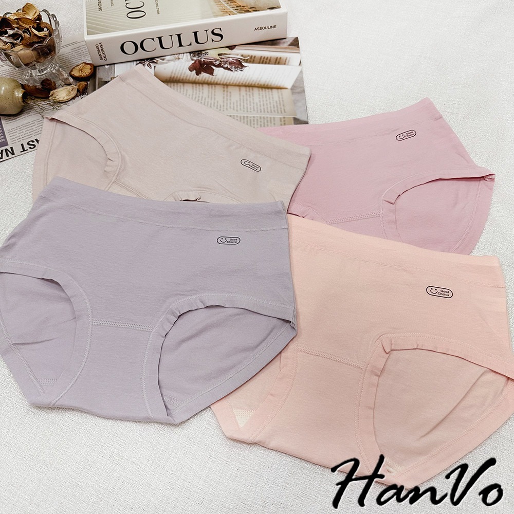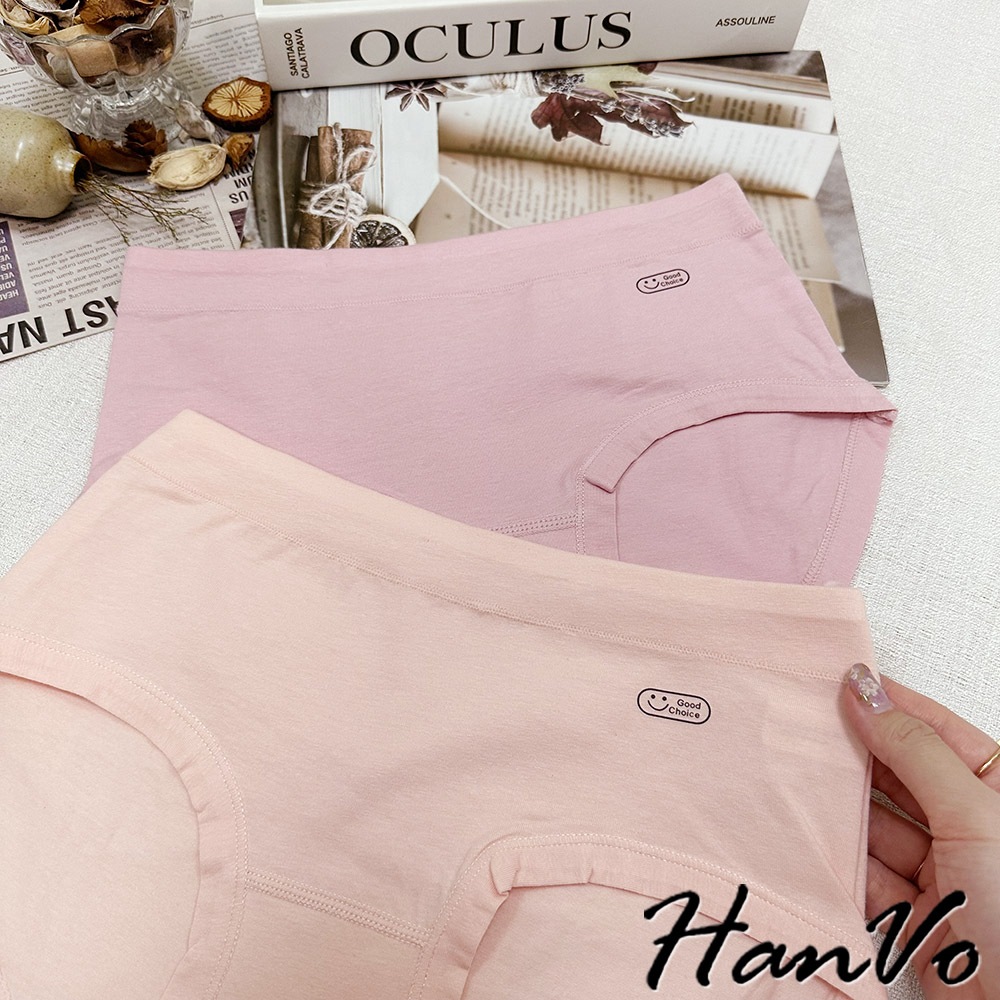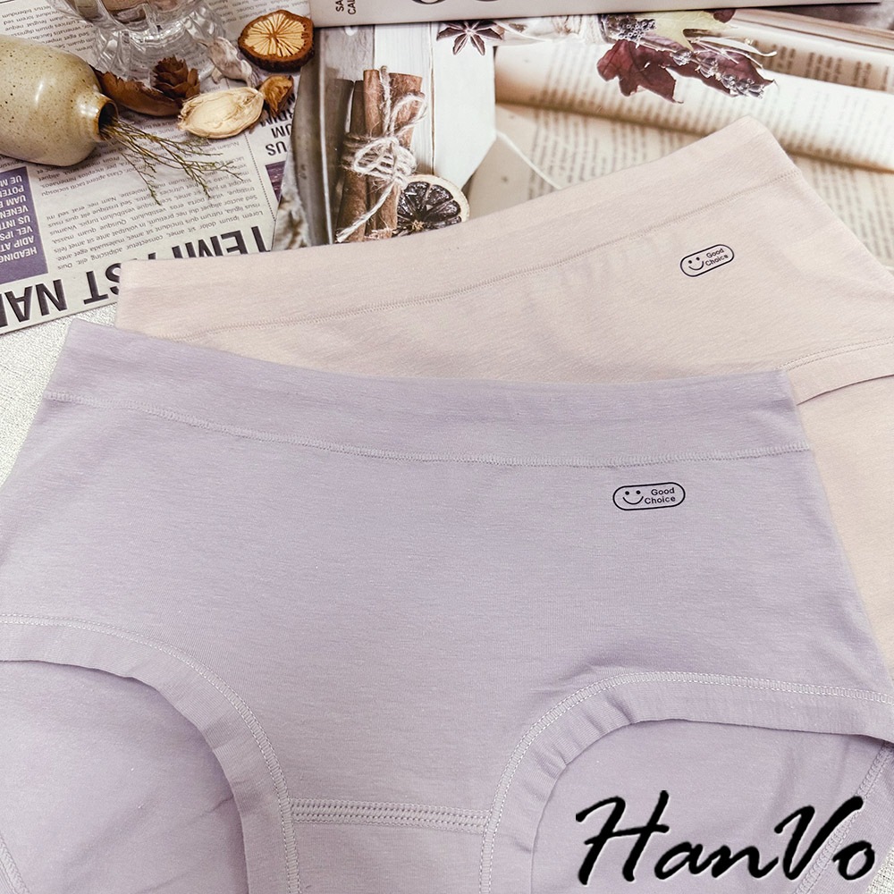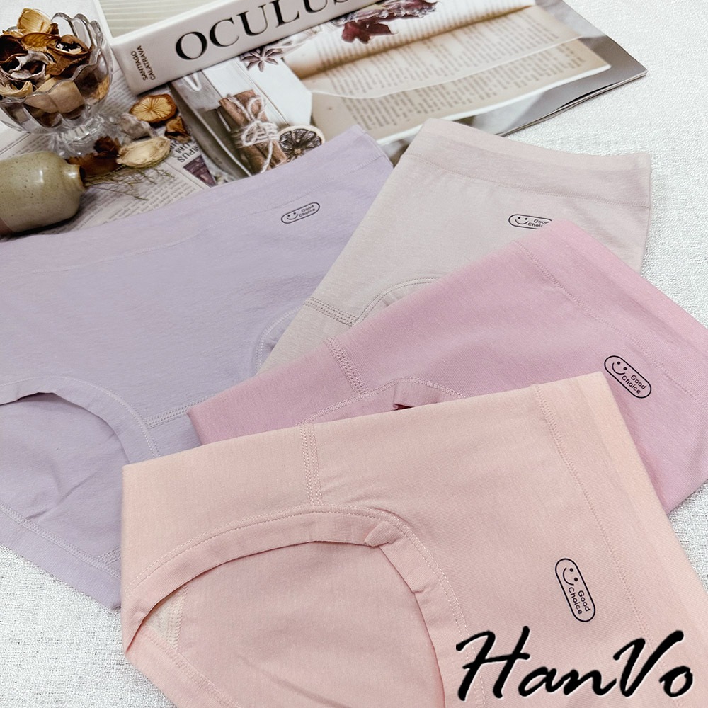 【HanVo】英文笑臉圖純棉內褲 親膚柔軟吸濕排汗中腰內褲 流行少女內褲 A11-5251海鹽灰|甜粉橘|芋香紫|公主粉PantiesHanVo Wear Collection