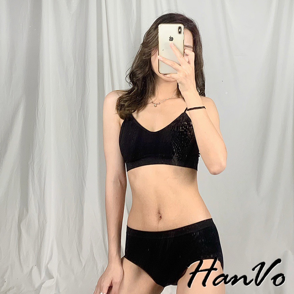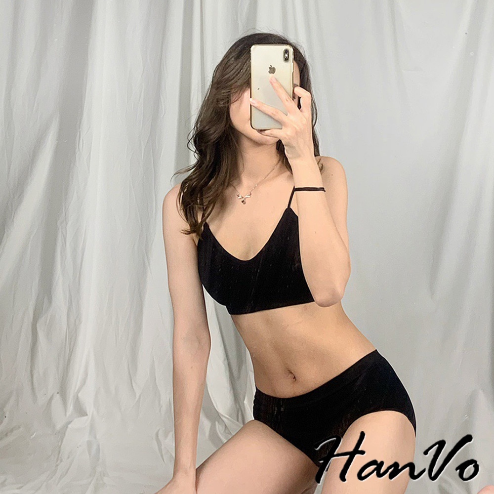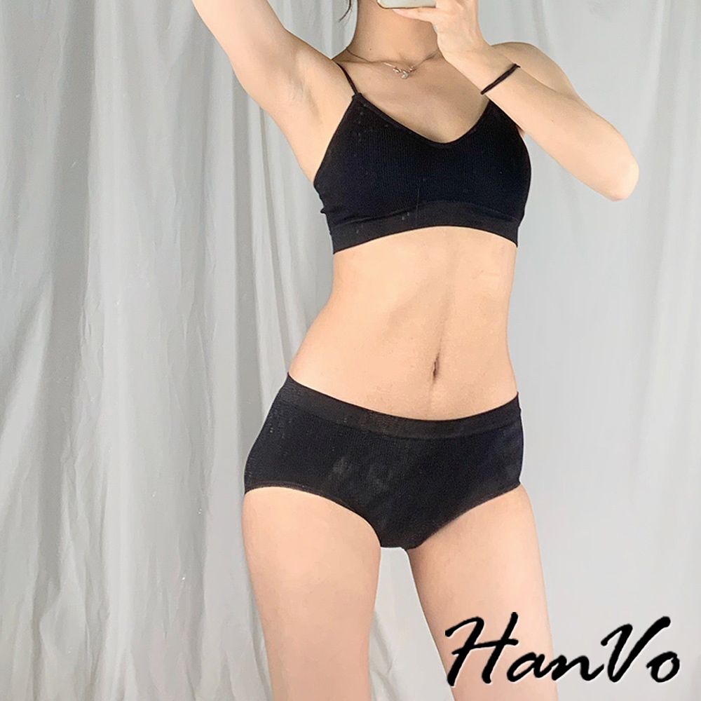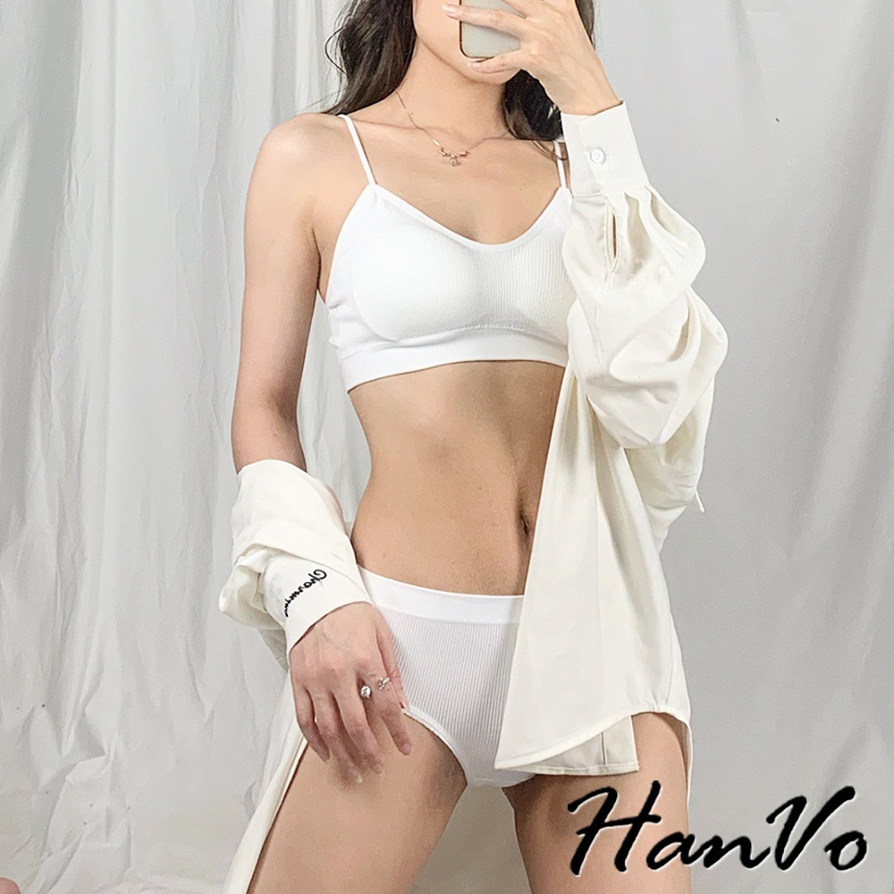 【HanVo】簡約螺紋小可愛內褲套裝 親膚透氣彈性小可愛 附可拆式胸墊 居家內搭 女生衣著 A09-5068黑色|白色|灰色SetsHanVo Wear Collection