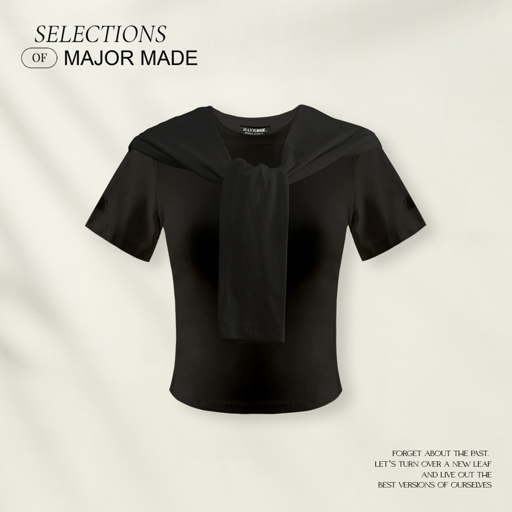 【MAJOR MADE】柔軟刺繡假兩件披肩短T黑,L|藏藍,M|藏藍,L|白,M|白,L|麻花灰,S|黑,S|黑,M|白,S|麻花灰,M|麻花灰,L|藏藍,ST-shirtsMAJOR MADE