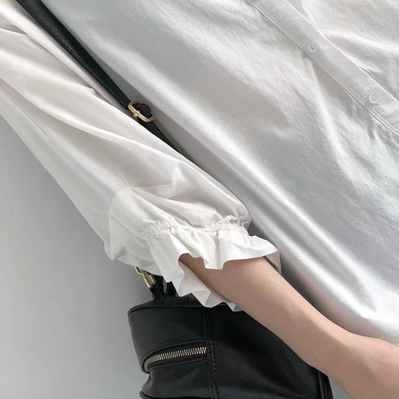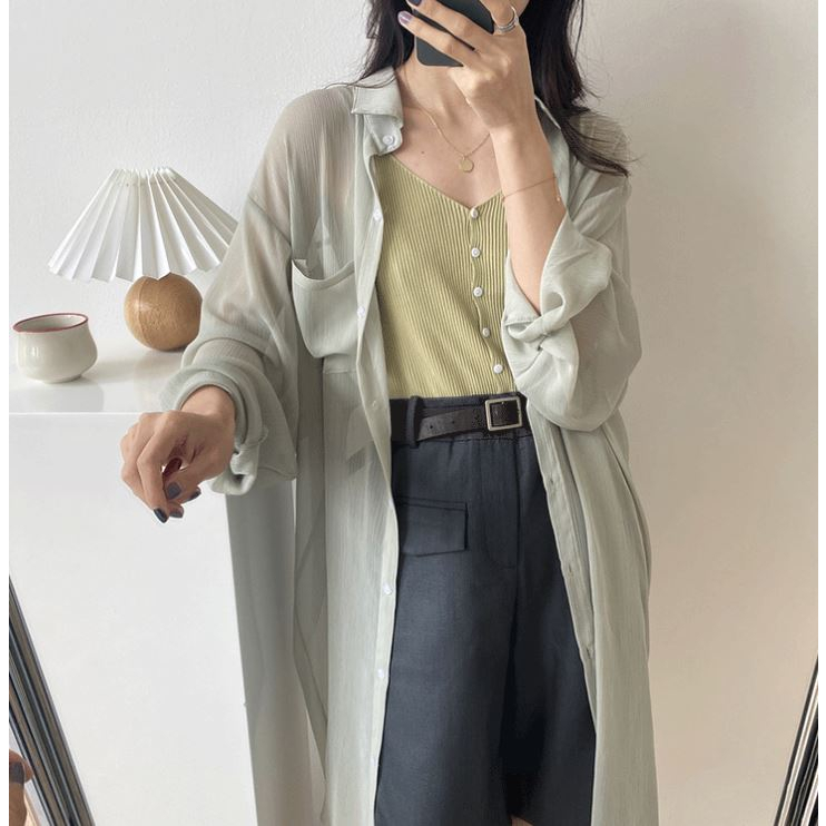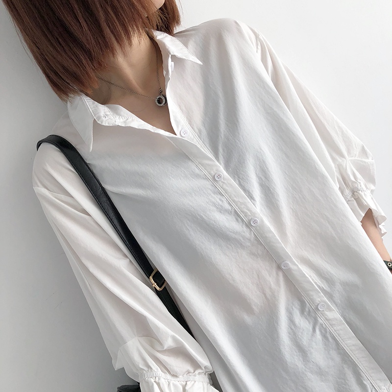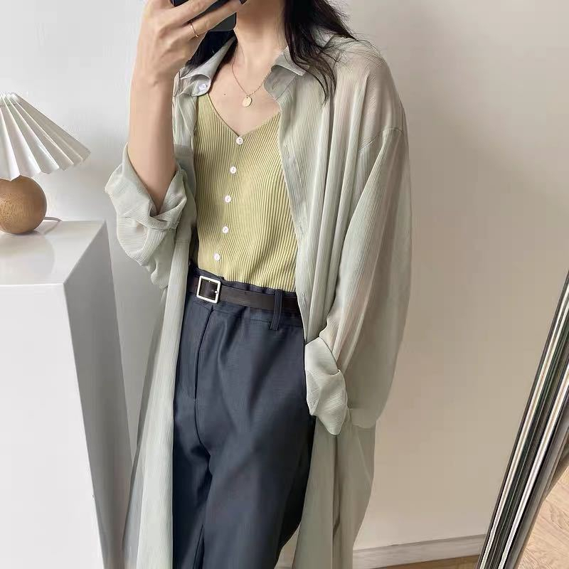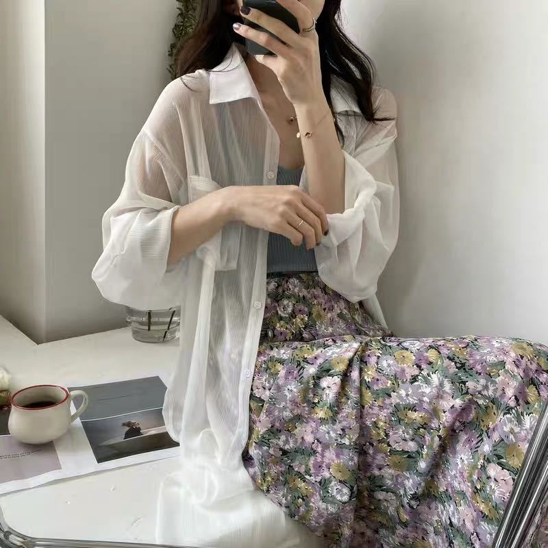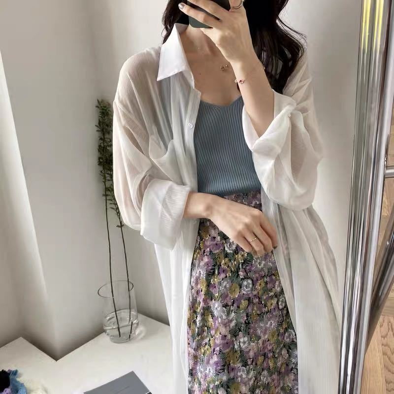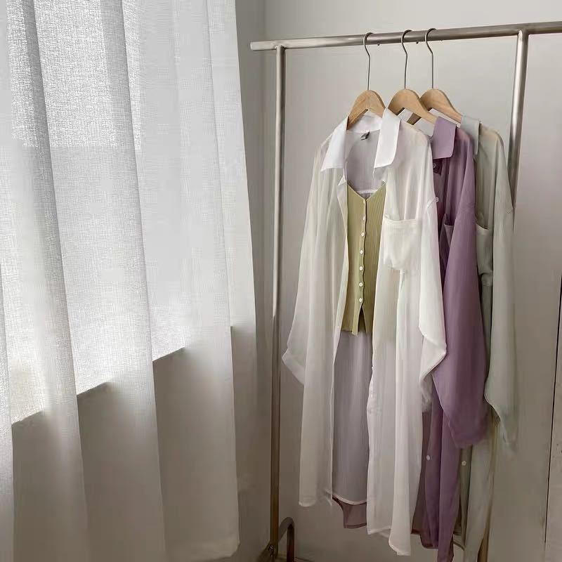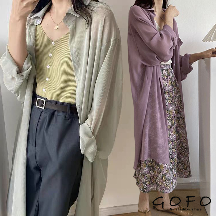 GOFO 長袖襯衫 韓系穿搭 遮肉顯瘦中長版 性感薄款 微透防曬衫 七分袖 雪紡襯衫 女生襯衫 女裝 夏季服飾 夏天防曬白色|綠色|芋紫Shirts & BlousesGOFO 台灣賣家 台灣出貨 台灣現貨