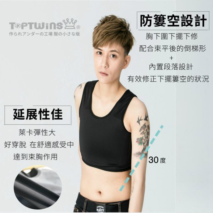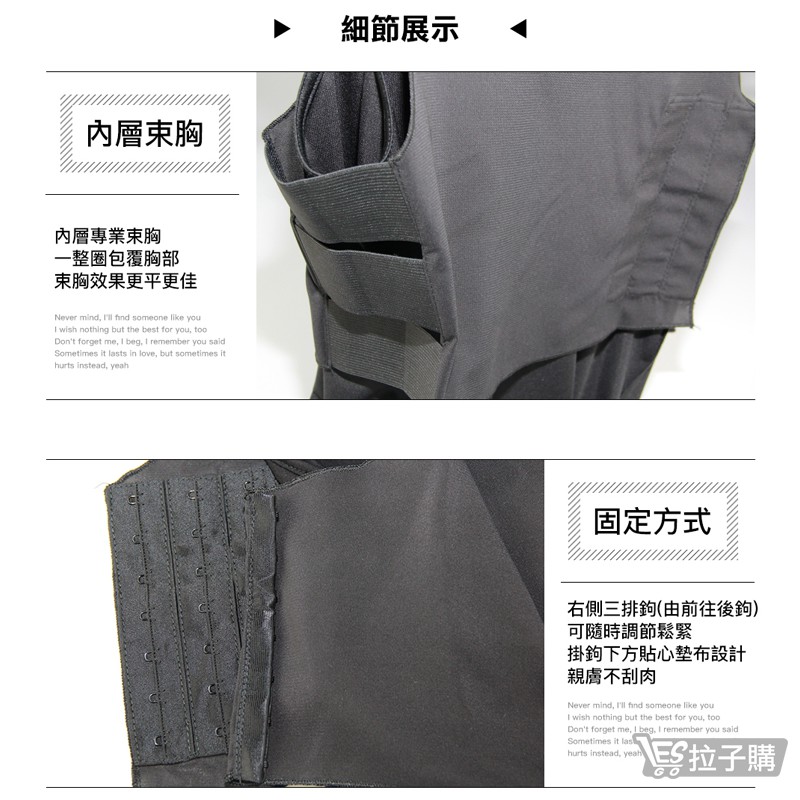 【E.V.A】100%不起毛球全身束胸背心-排扣/排鉤/束平/透氣/挖背/鬆緊帶/帥T/拉子/LES/束衣/大胸顯小