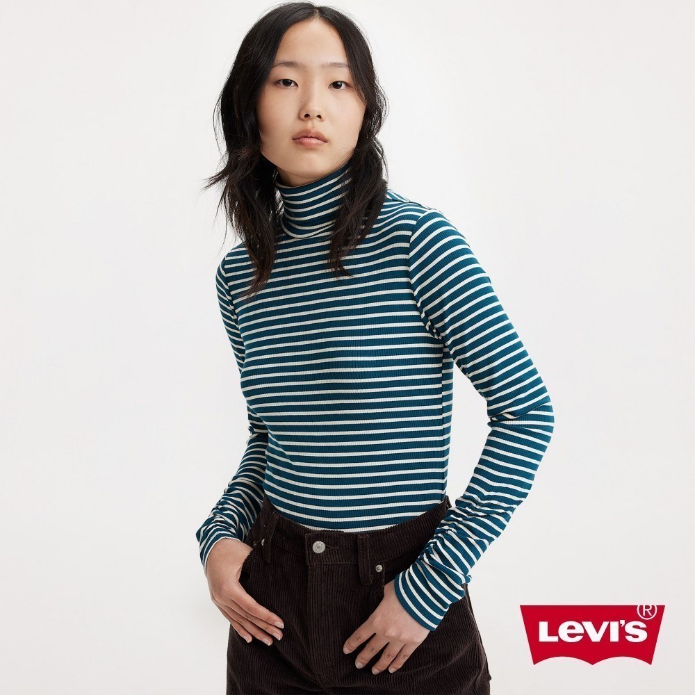 【99限定$790 9.1 0點開賣】Levis 高領長袖條紋T恤/彈力修身/莫代爾吸濕透氣 A6888-0004S|M|XST-shirtsLevi’s官方旗艦店