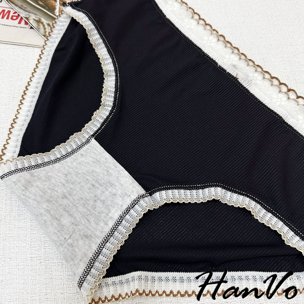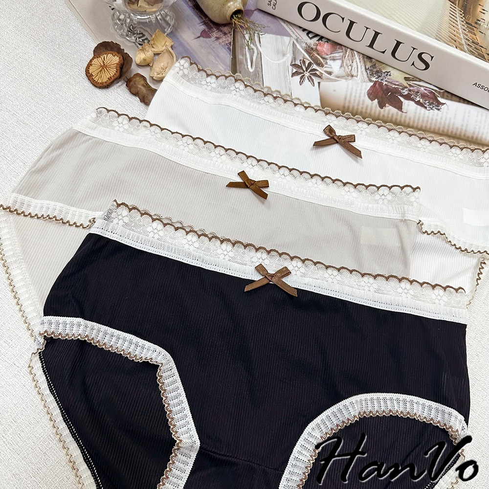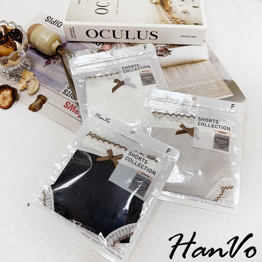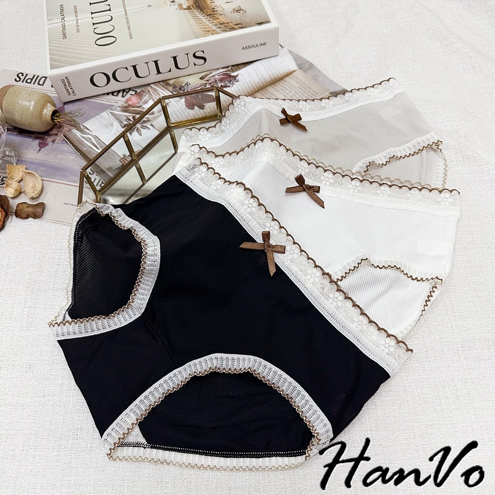 【HanVo】典雅蕾絲花邊蝶結透膚內褲 透氣裸感包覆 獨立包裝 中腰 純棉底襠 透氣內褲 女內褲 內褲 A11-5864天使白|質感灰|夜幕黑PantiesHanVo Wear Collection