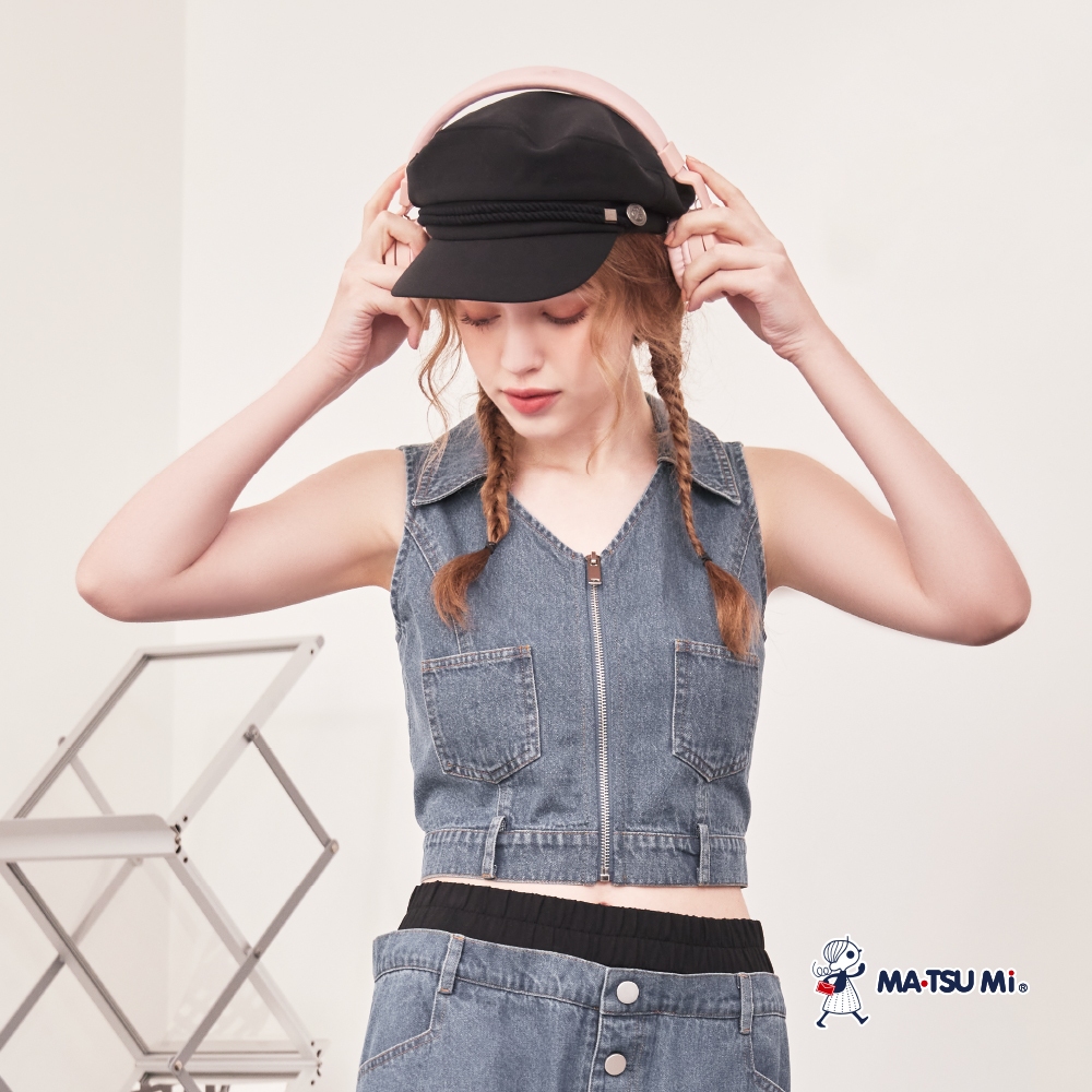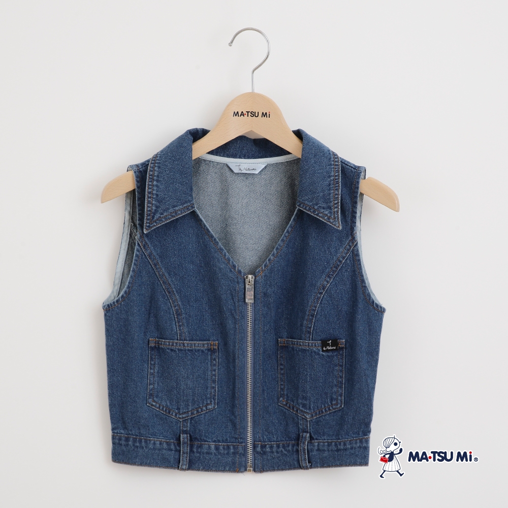 MA‧TSU Mi 拉鍊v領設計丹寧感短版合身背心(深藍)深藍,S|深藍,MVestsMA•TSU Mi瑪之蜜官方旗艦店