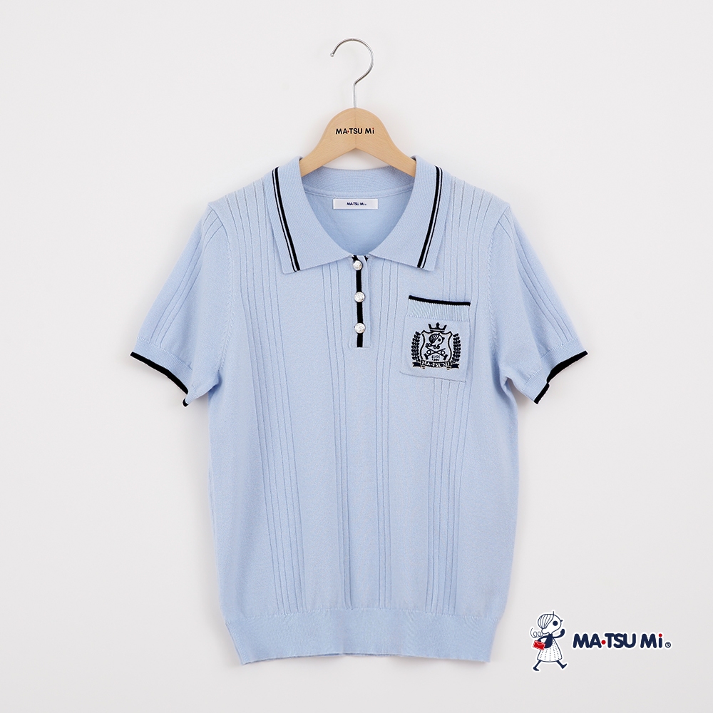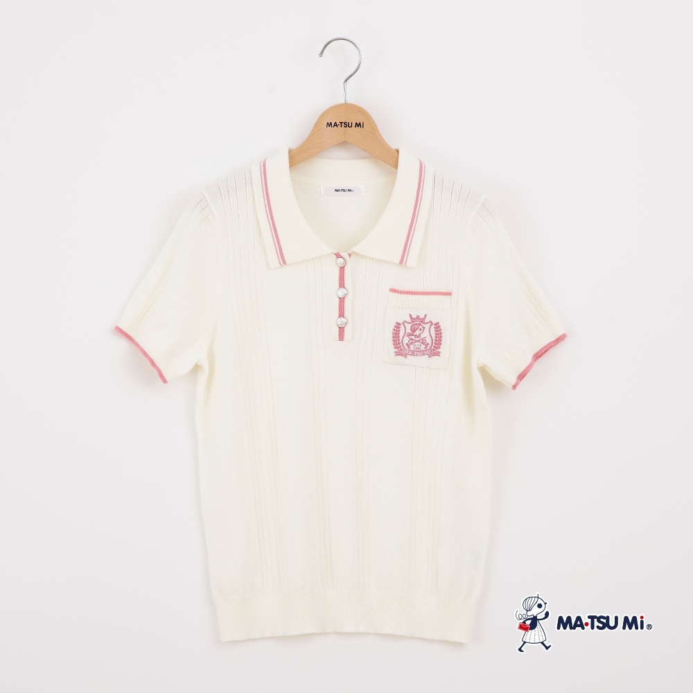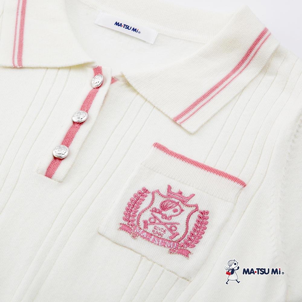 MA‧TSU Mi 撞色瑪娃電繡設計針織上衣(白.水藍)白,M|白,L|水藍,M|水藍,LMA•TSU Mi瑪之蜜官方旗艦店