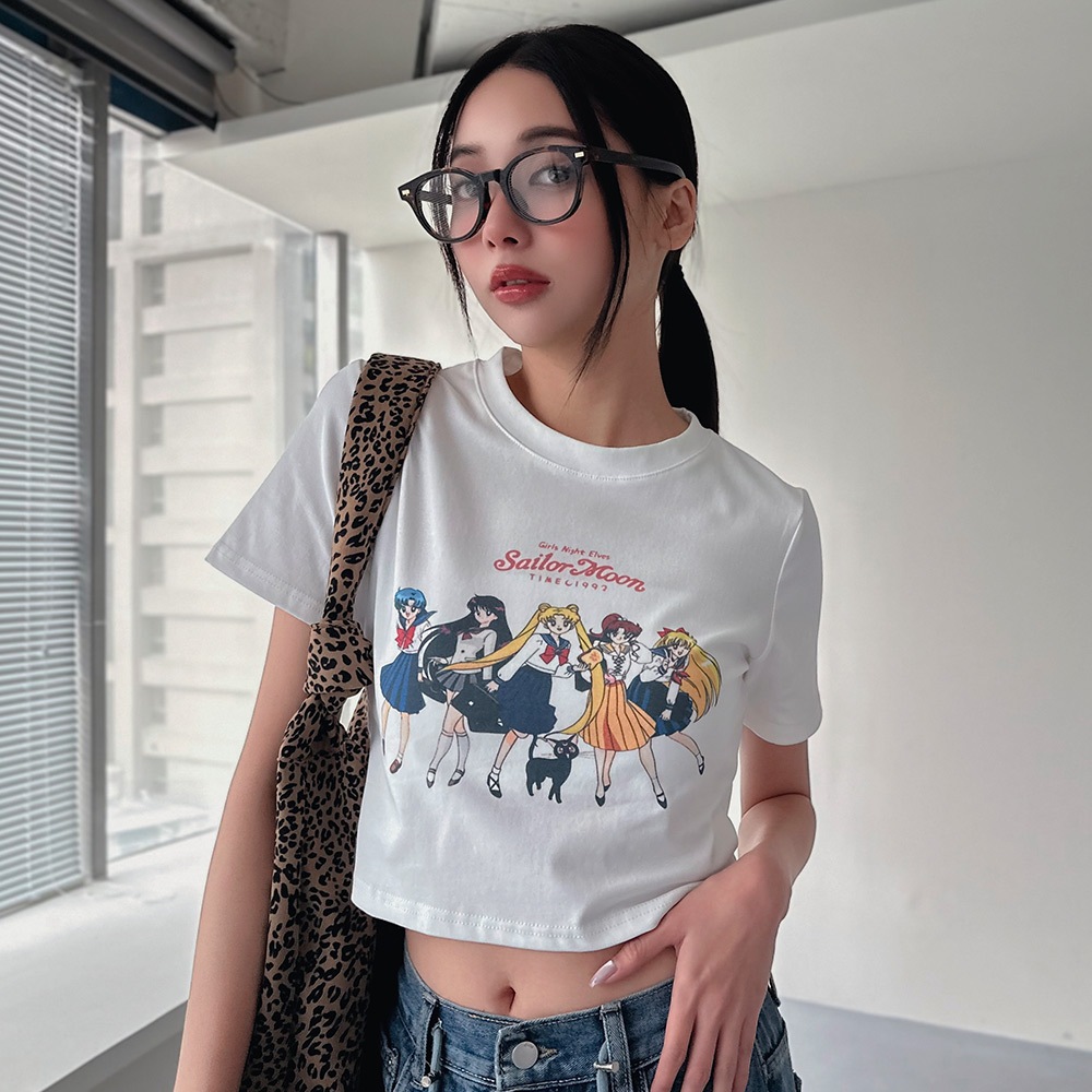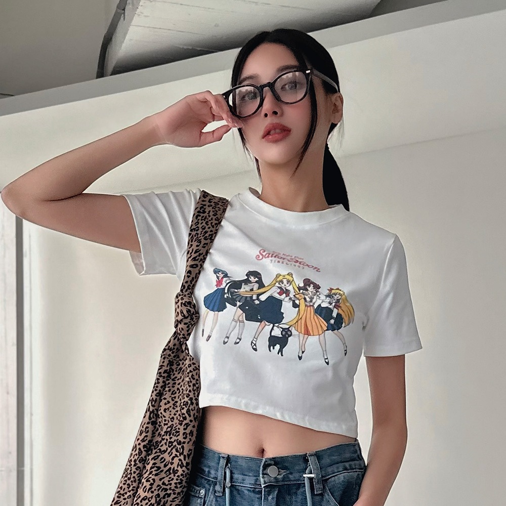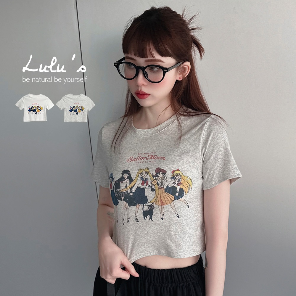 LULUS/日系女團印刷短版上衣2色【A01250327】250521白|白灰T-shirtsLULUS