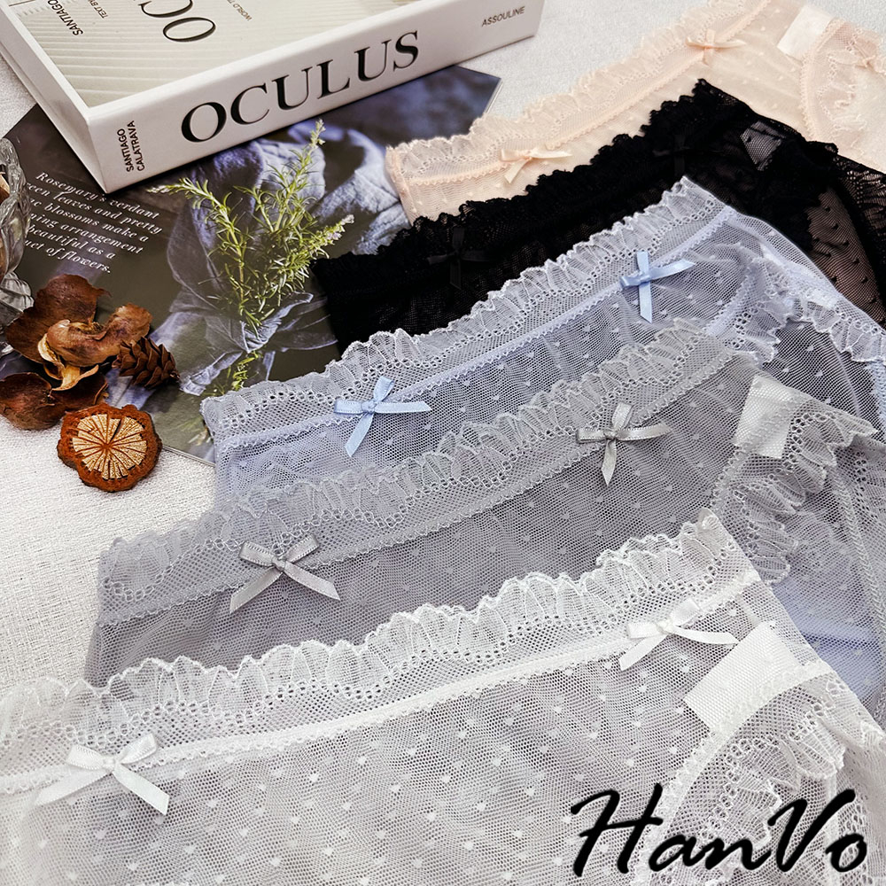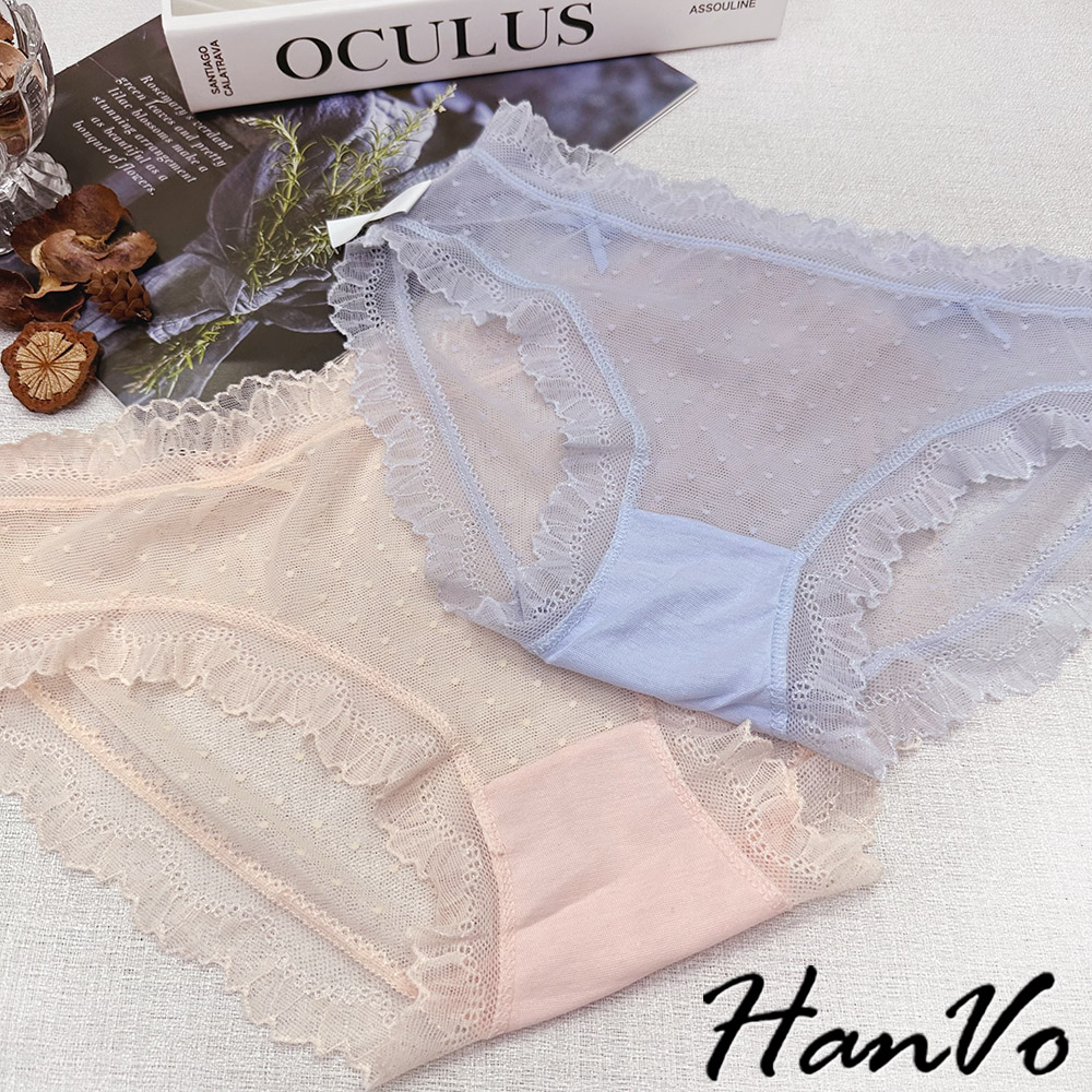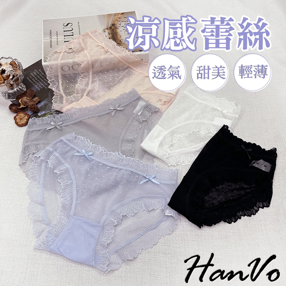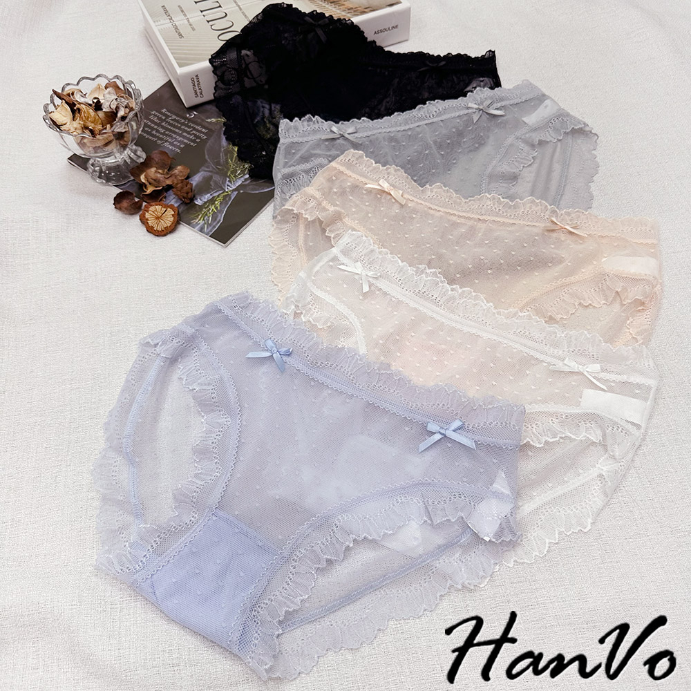 【HanVo】小愛心蝴蝶結蕾絲內褲 舒適涼感透膚系列 透氣愛心網洞三角褲 中腰 女生內褲 內褲 內著 A11-5714柔和藍|仙女白|星空黑|香甜橘|淡霧灰PantiesHanVo Wear Collection