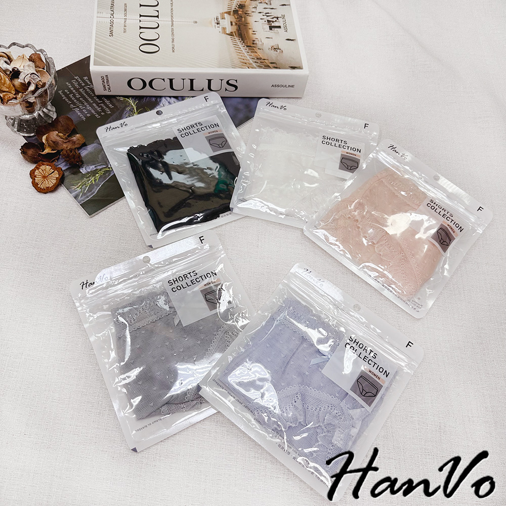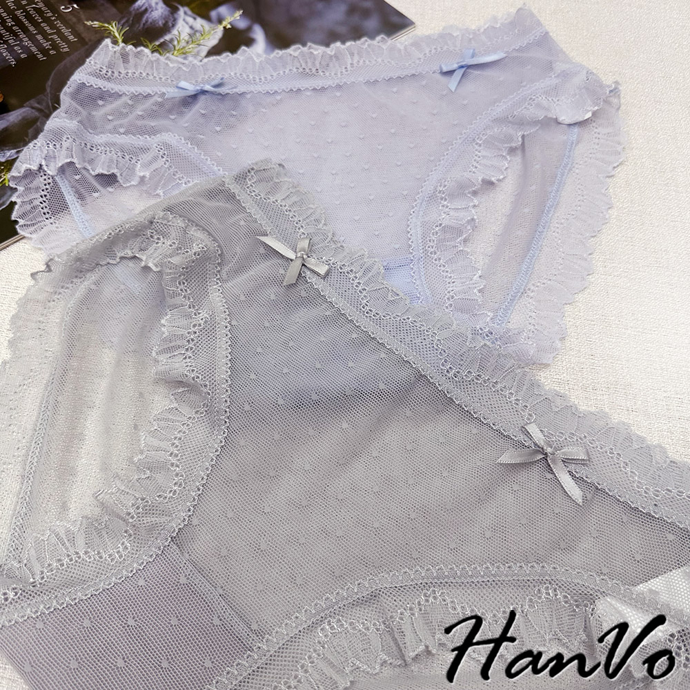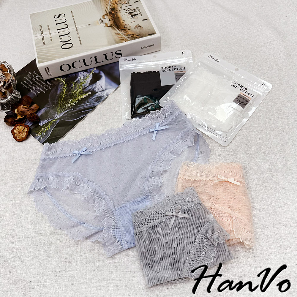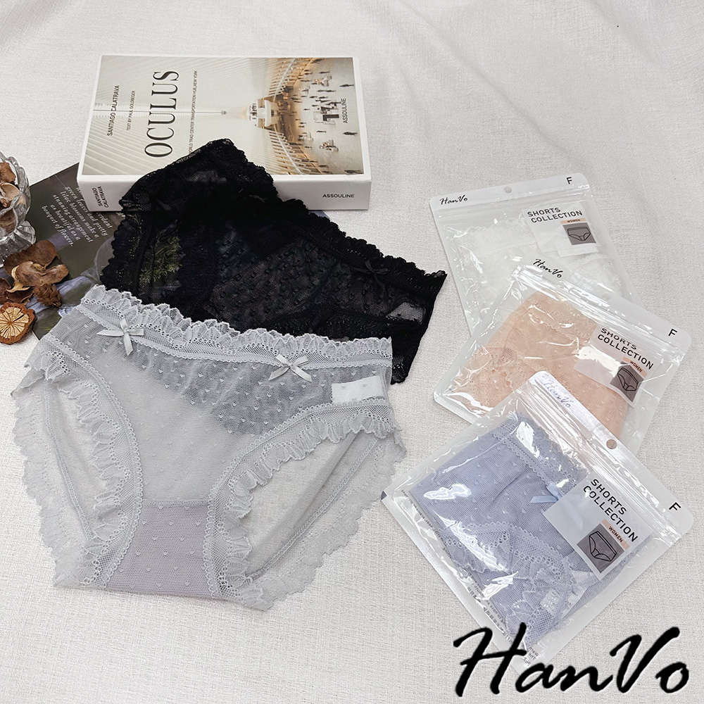【HanVo】小愛心蝴蝶結蕾絲內褲 舒適涼感透膚系列 透氣愛心網洞三角褲 中腰 女生內褲 內褲 內著 A11-5714柔和藍|仙女白|星空黑|香甜橘|淡霧灰PantiesHanVo Wear Collection