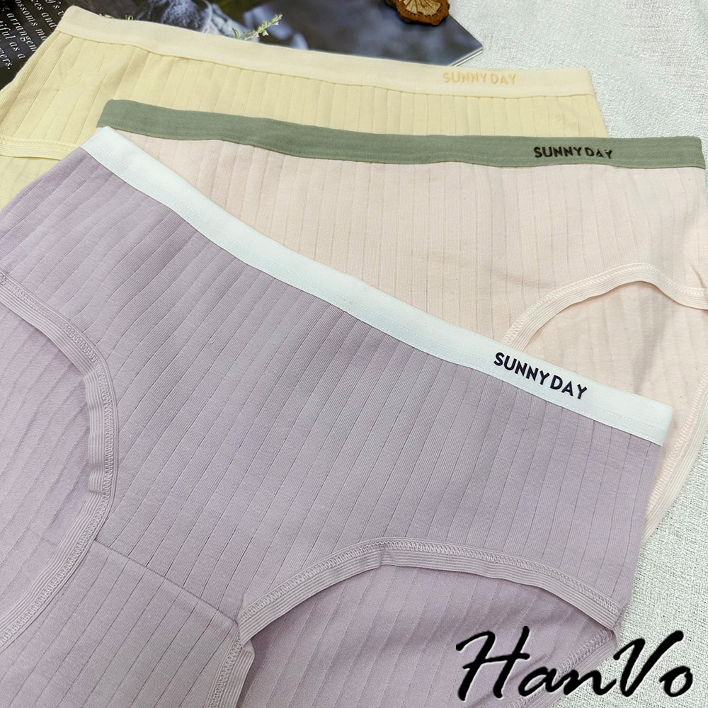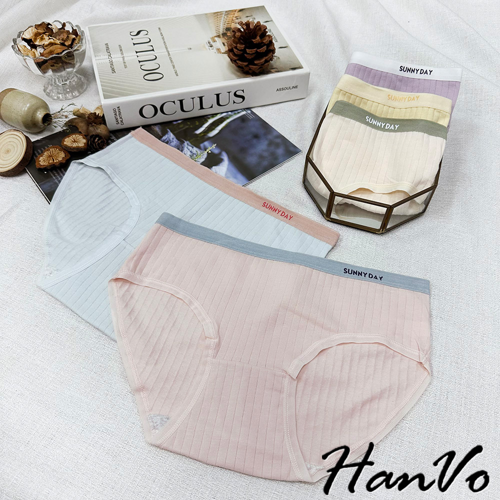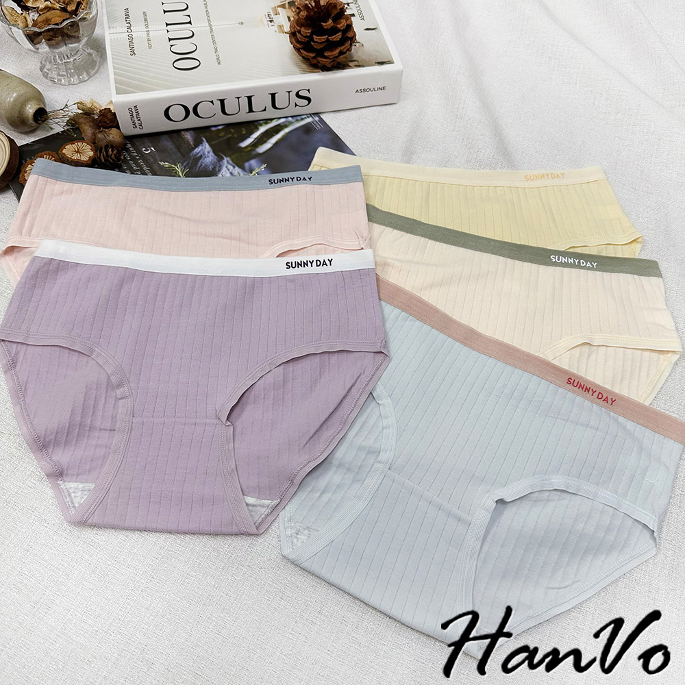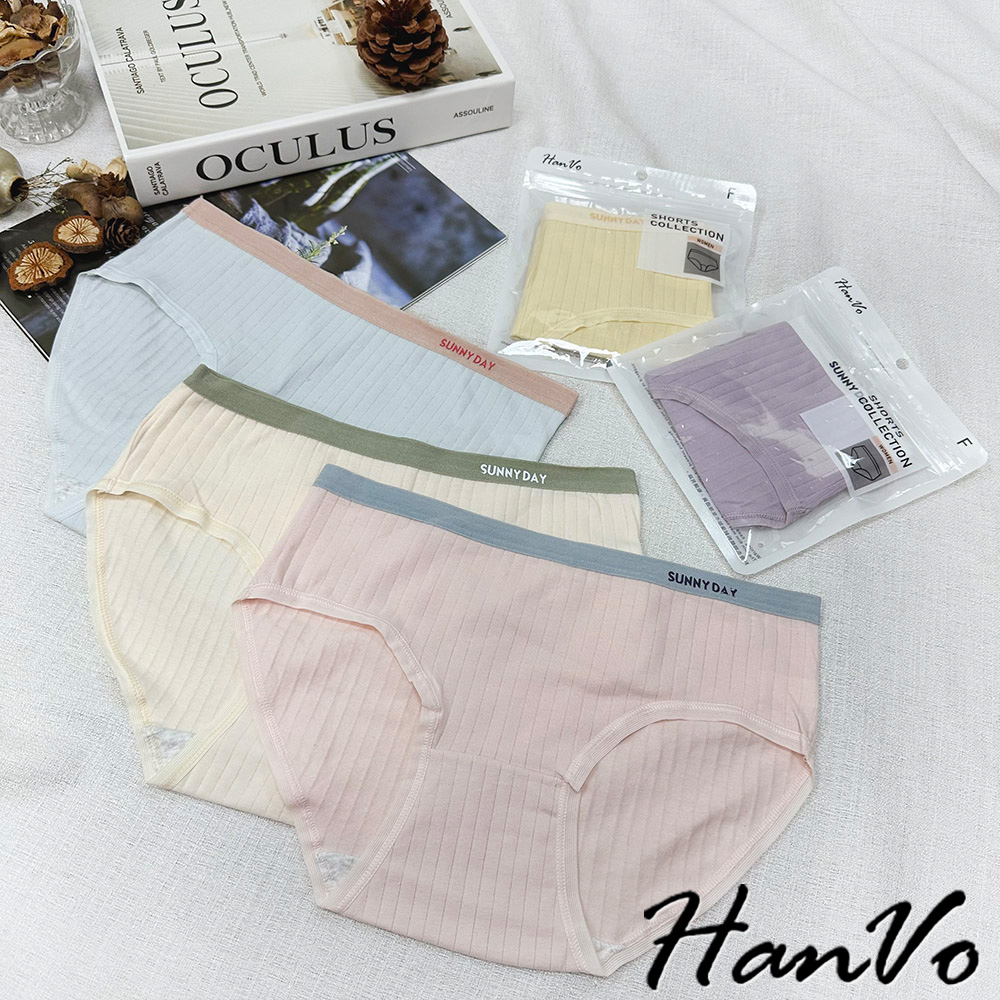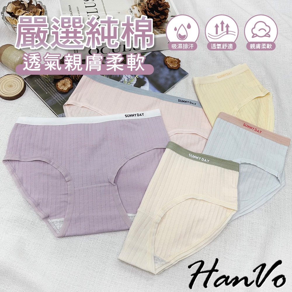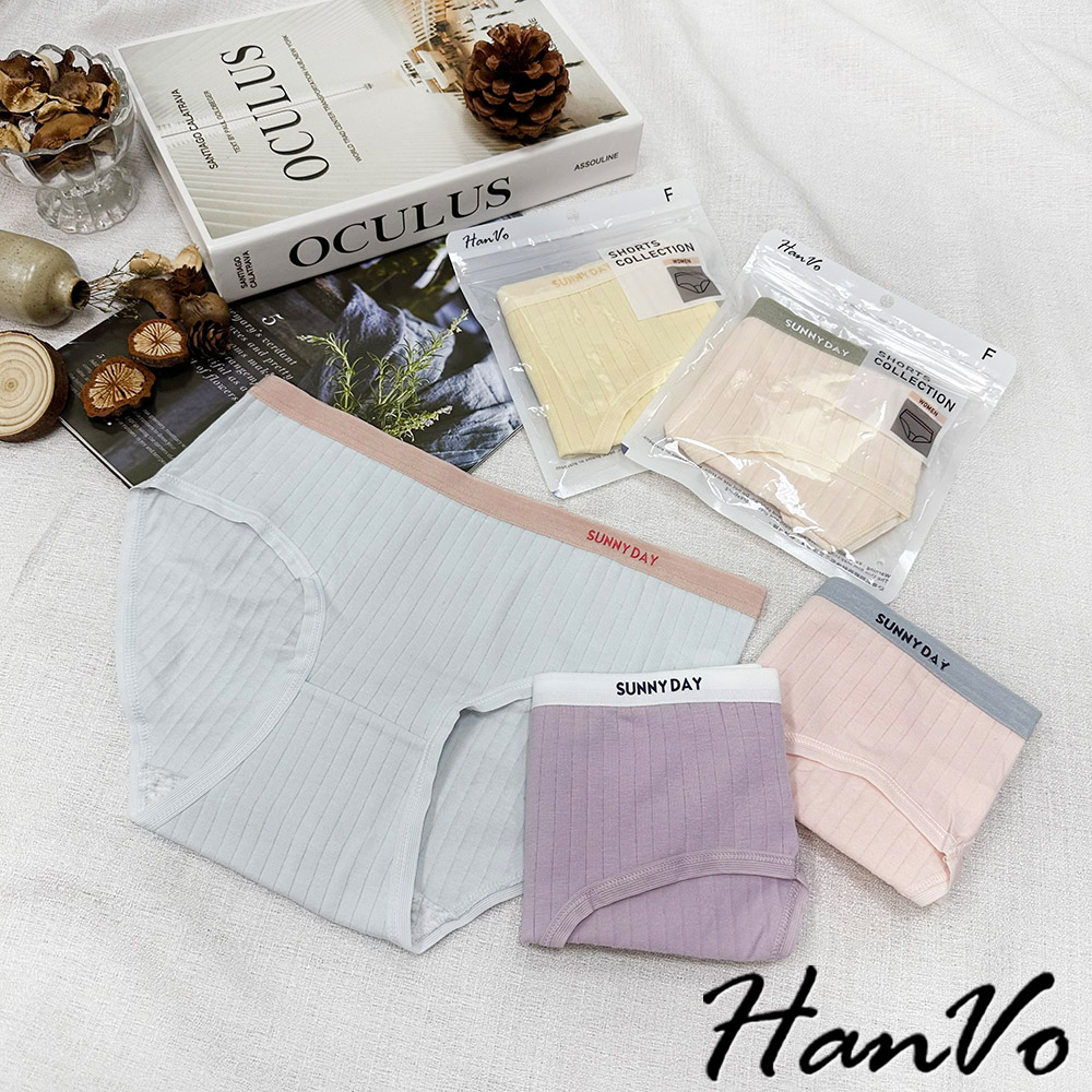 【HanVo】SUNNYDAY少女拚色內褲 純棉吸濕排汗透氣內褲 中低腰 透氣內褲 女生內褲 內褲 A11-5726藍莓紫|晴空藍|柔嫩膚|少女粉|香橙黃PantiesHanVo Wear Collection