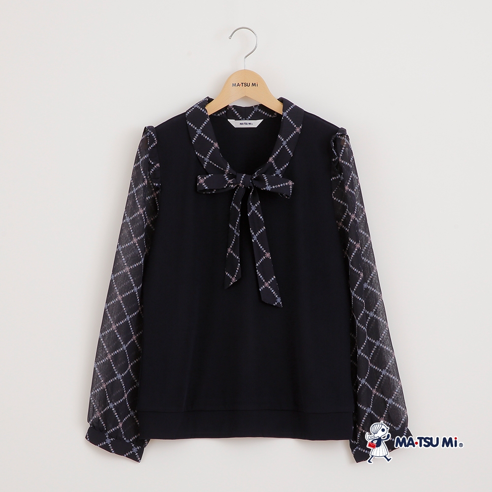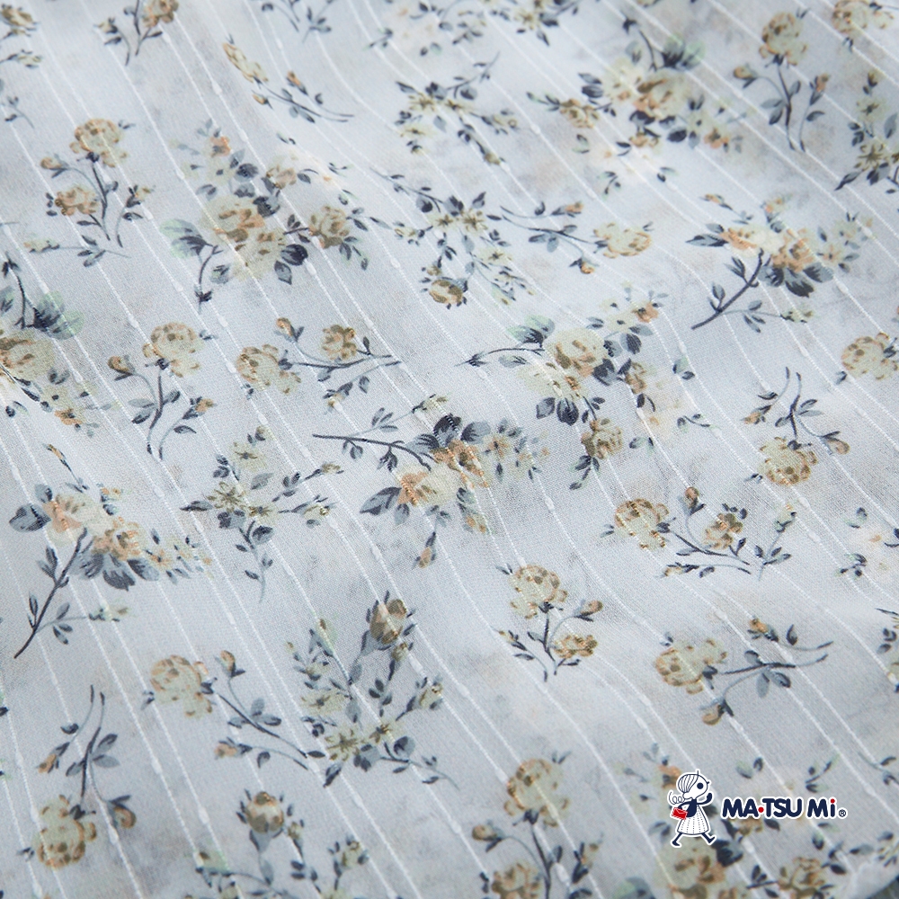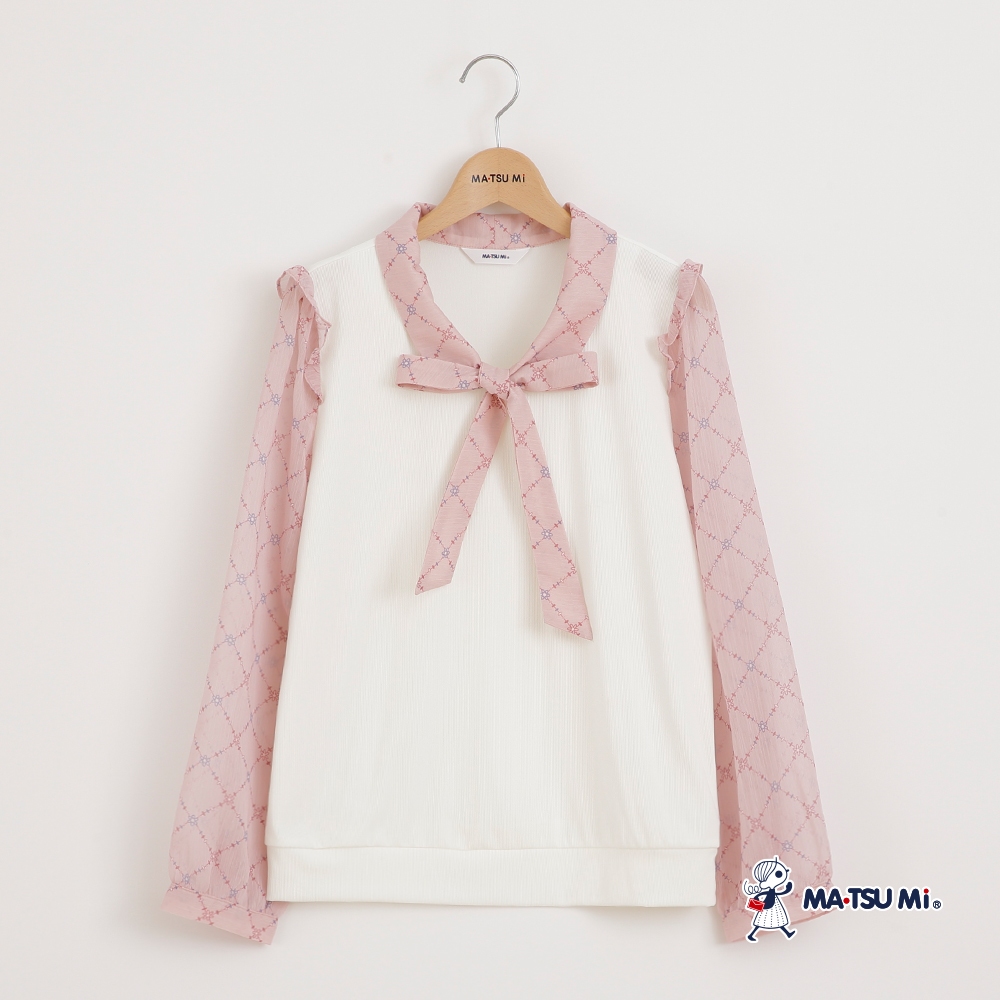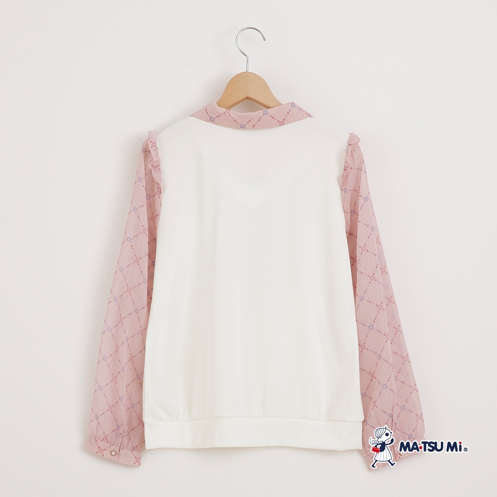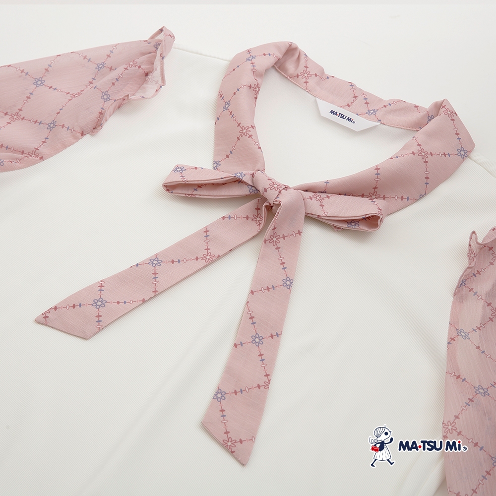 MA‧TSU Mi 假兩件菱格小花壓紋綁帶上衣(白.深藍)