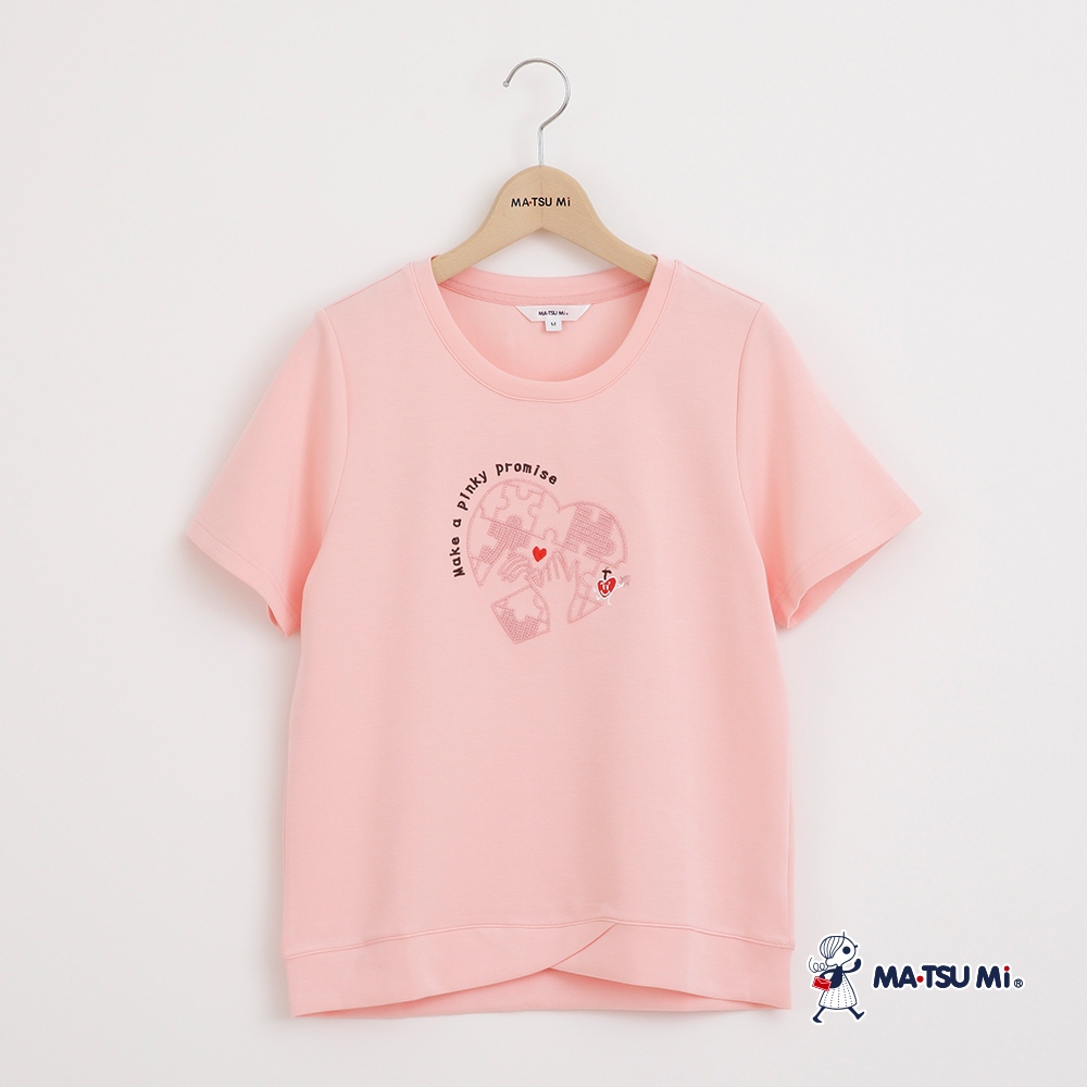 MA‧TSU Mi 愛心拼圖圖案繡花設計上衣(白.粉紅)白,M|白,L|粉紅,M|粉紅,LT-shirtsMA•TSU Mi瑪之蜜官方旗艦店