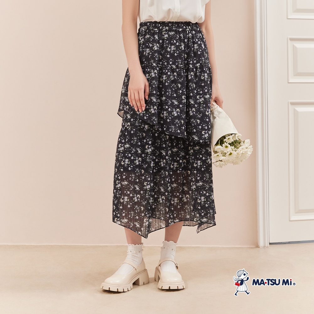 MA‧TSU Mi 優雅碎花層次飄逸感花瓣長裙(水藍.黑)水藍,S|水藍,M|黑,S|黑,MMA•TSU Mi瑪之蜜官方旗艦店