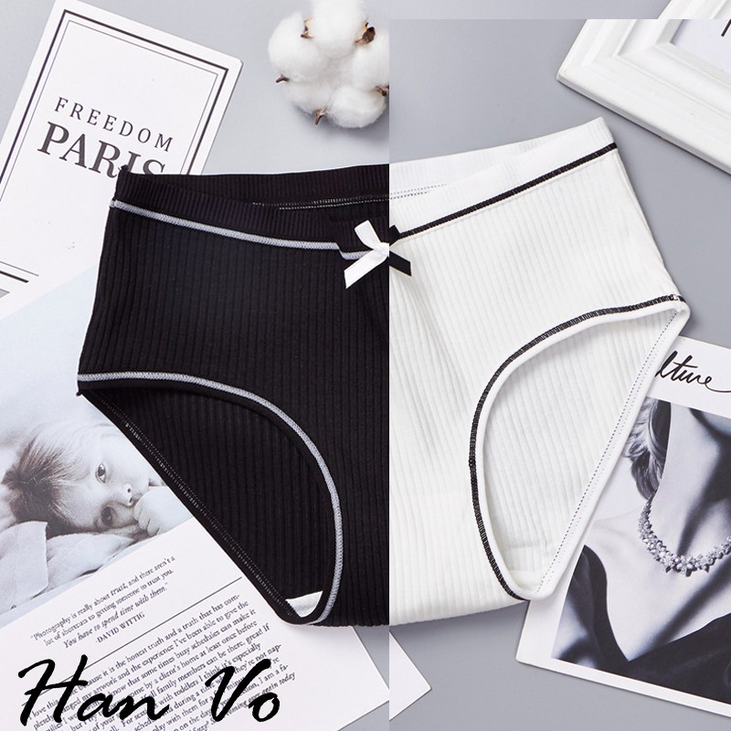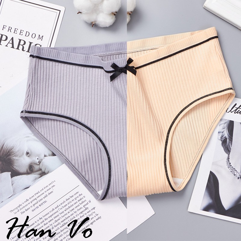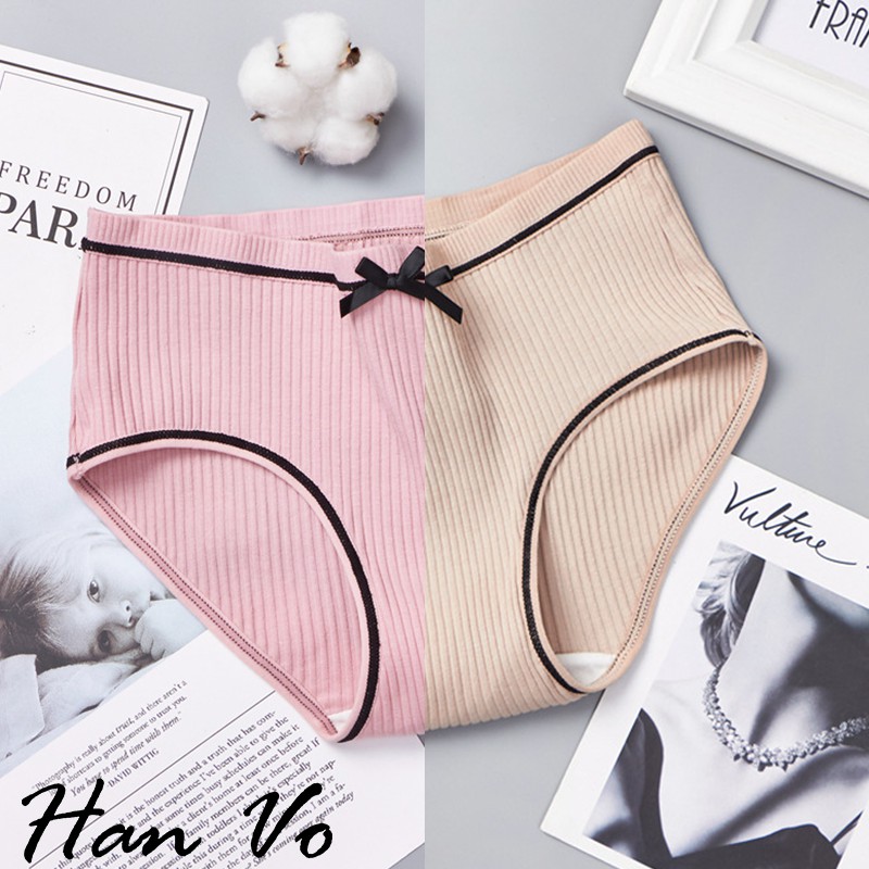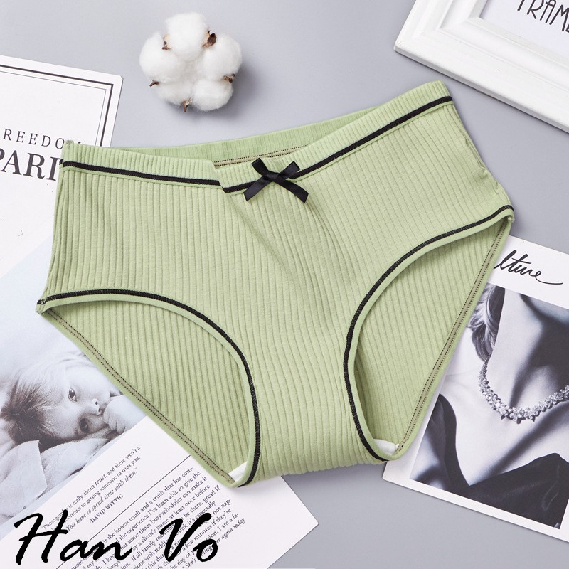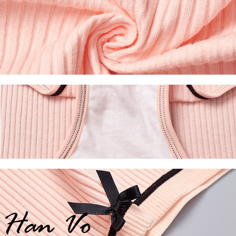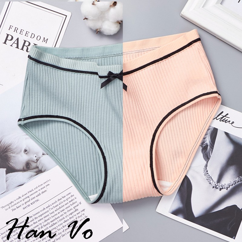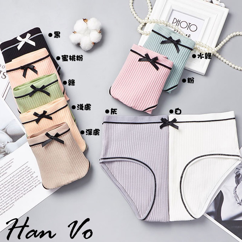 【HanVo】棉質螺紋內褲 現貨棉質少女舒適透氣滾邊柔軟素面中腰內褲女裝 A11-5519白色|淺膚|蜜桃粉PantiesHanVo Wear Collection