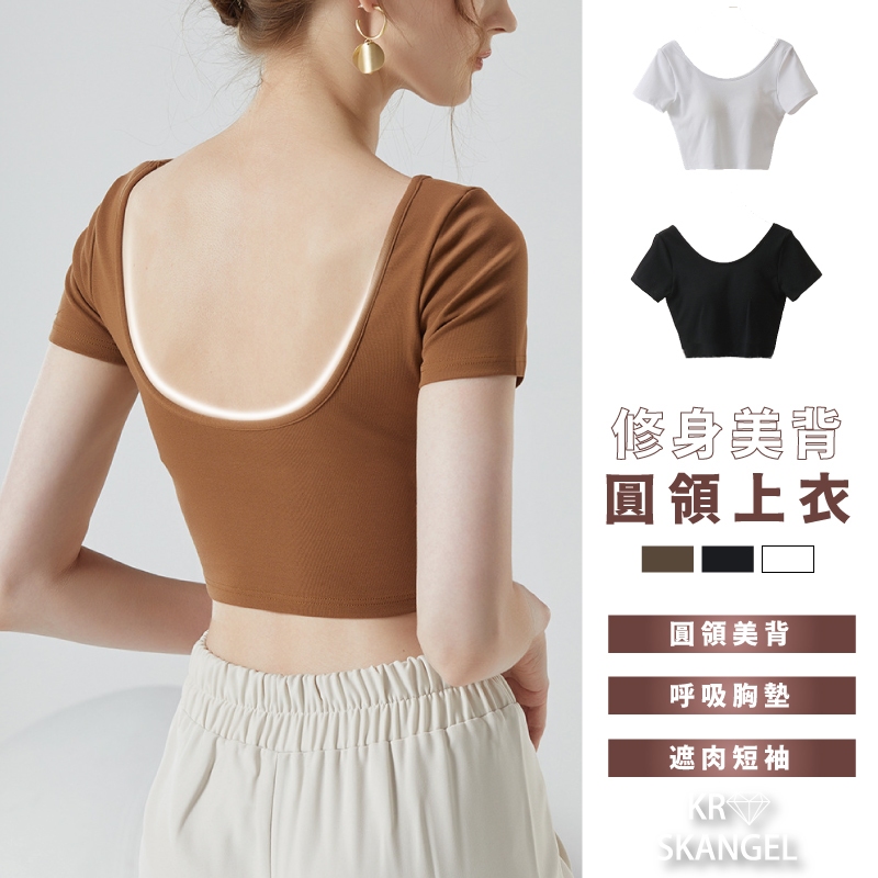 【圓領上衣 素色美背上衣 此款偏小】附罩杯 美背短袖 素色短袖 休閒美背上衣 修身顯瘦 舒適版型 快速出貨 21292白色【M】|白色【L】|白色【XL】|焦糖色【M】|焦糖色【L】|焦糖色【XL】|黑色【M】|黑色【L】|黑色【XL】OthersKR.SKANGEL 內衣、內褲、小可愛、無鋼圈內衣、涼感內衣、冰絲內褲、生理褲