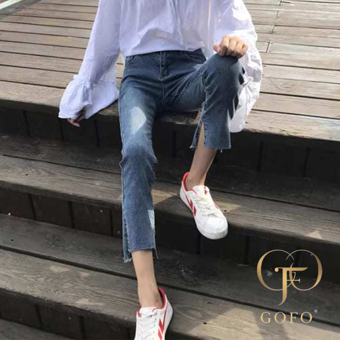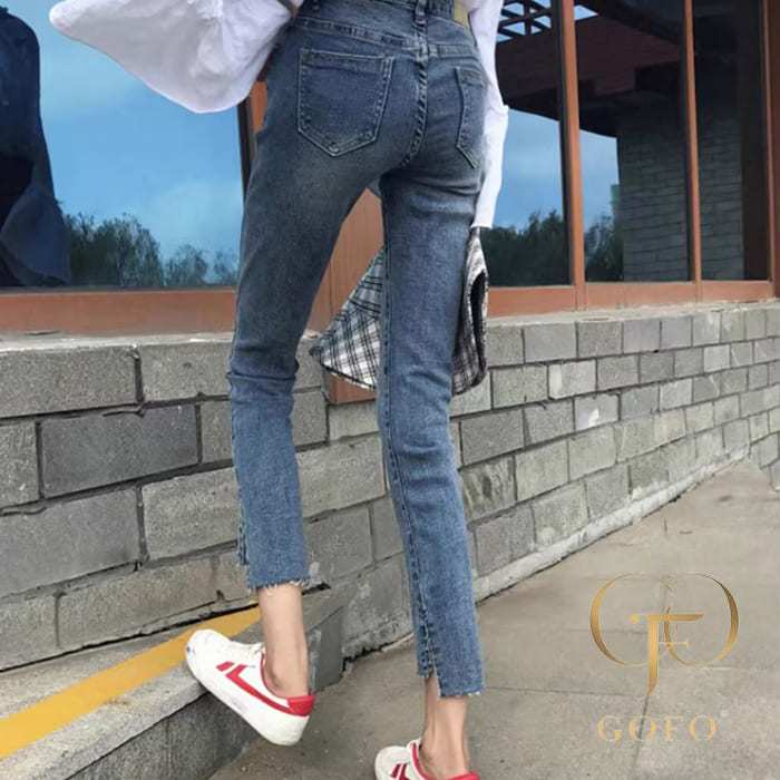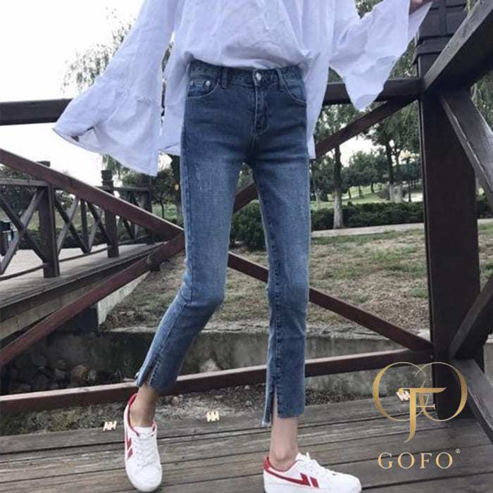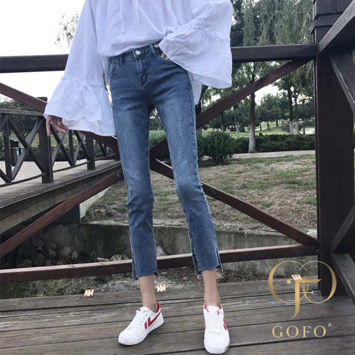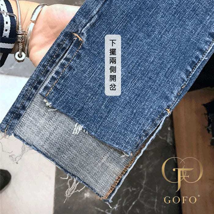 GOFO 九分褲 韓系穿搭 優質彈性顯瘦 刷白 下擺開岔 牛仔褲 夏季薄款 夏天女生 女裝 直筒褲 小腳褲 長褲 水洗褲藍色,S(24腰)|藍色,M(26腰)|藍色,L(28腰)|藍色,XL(30腰)|藍色,2XL(32腰)|藍色,3XL(34腰)|藍色,4XL(36腰)GOFO 台灣賣家 台灣出貨 台灣現貨