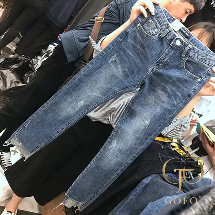 GOFO 長褲 韓系穿搭 街頭風 高腰顯瘦 復古水洗 破損割破 貓抓破洞 直筒褲 闊腿褲 夏季服飾 夏天女生 女裝S(24腰)|M(26腰)|L(28腰)|XL(30腰)|2XL(32腰)GOFO 台灣賣家 台灣出貨 台灣現貨