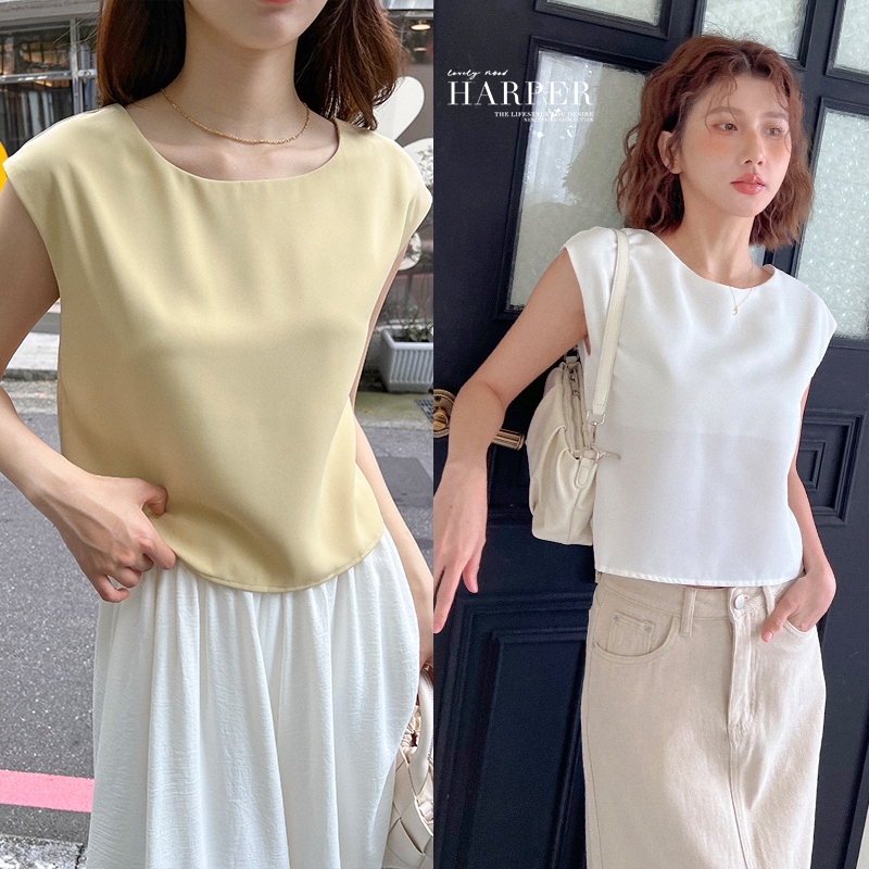 【HARPER】品牌自訂寬版雪紡背心 | 現貨 無袖 背心 短版 雪紡 上衣【CLD58425H】白,F|黃綠,FOthersHARPER