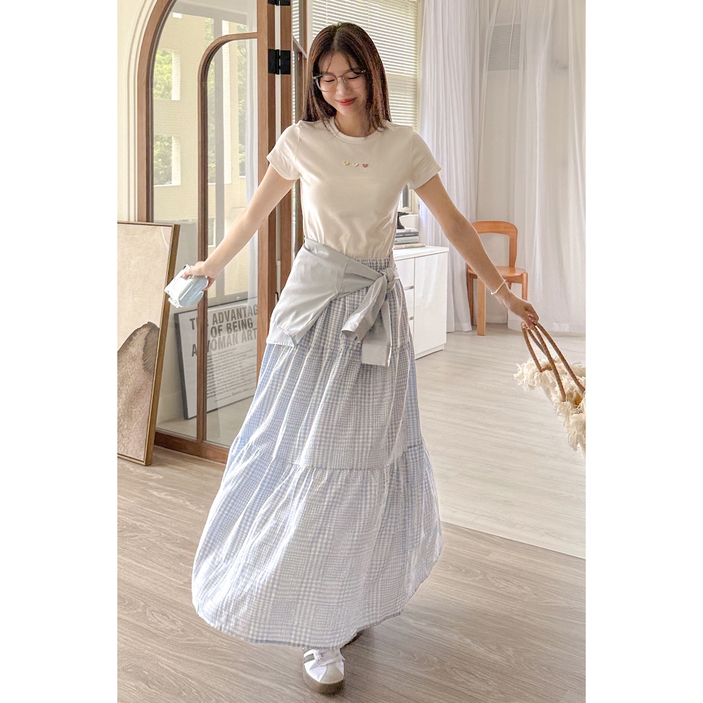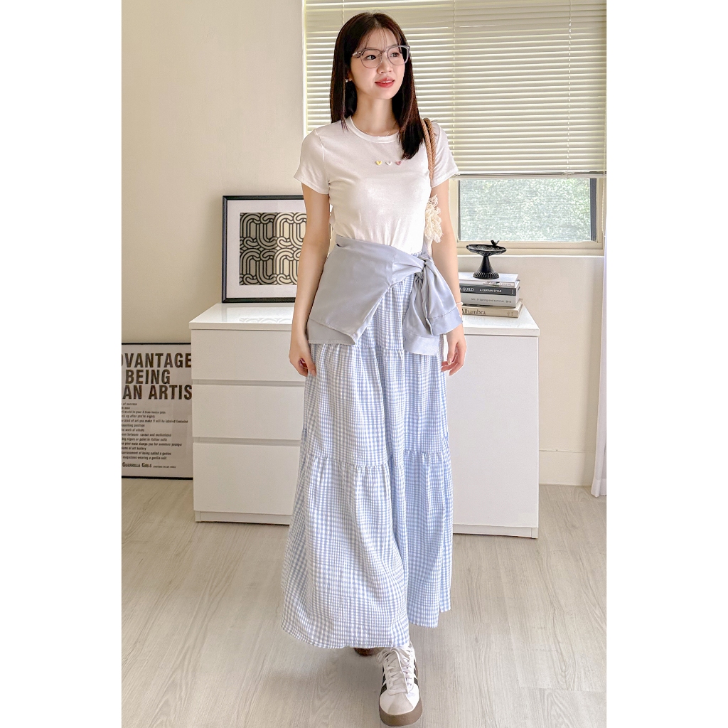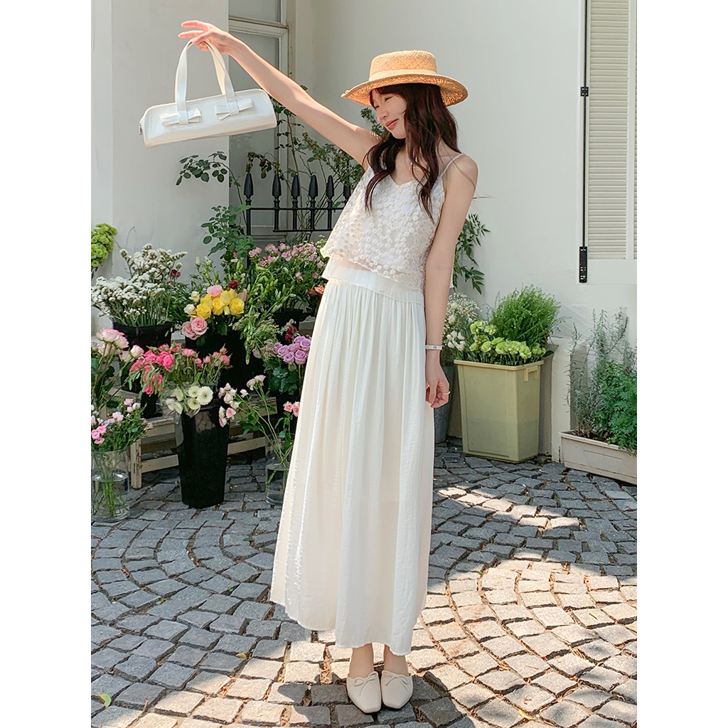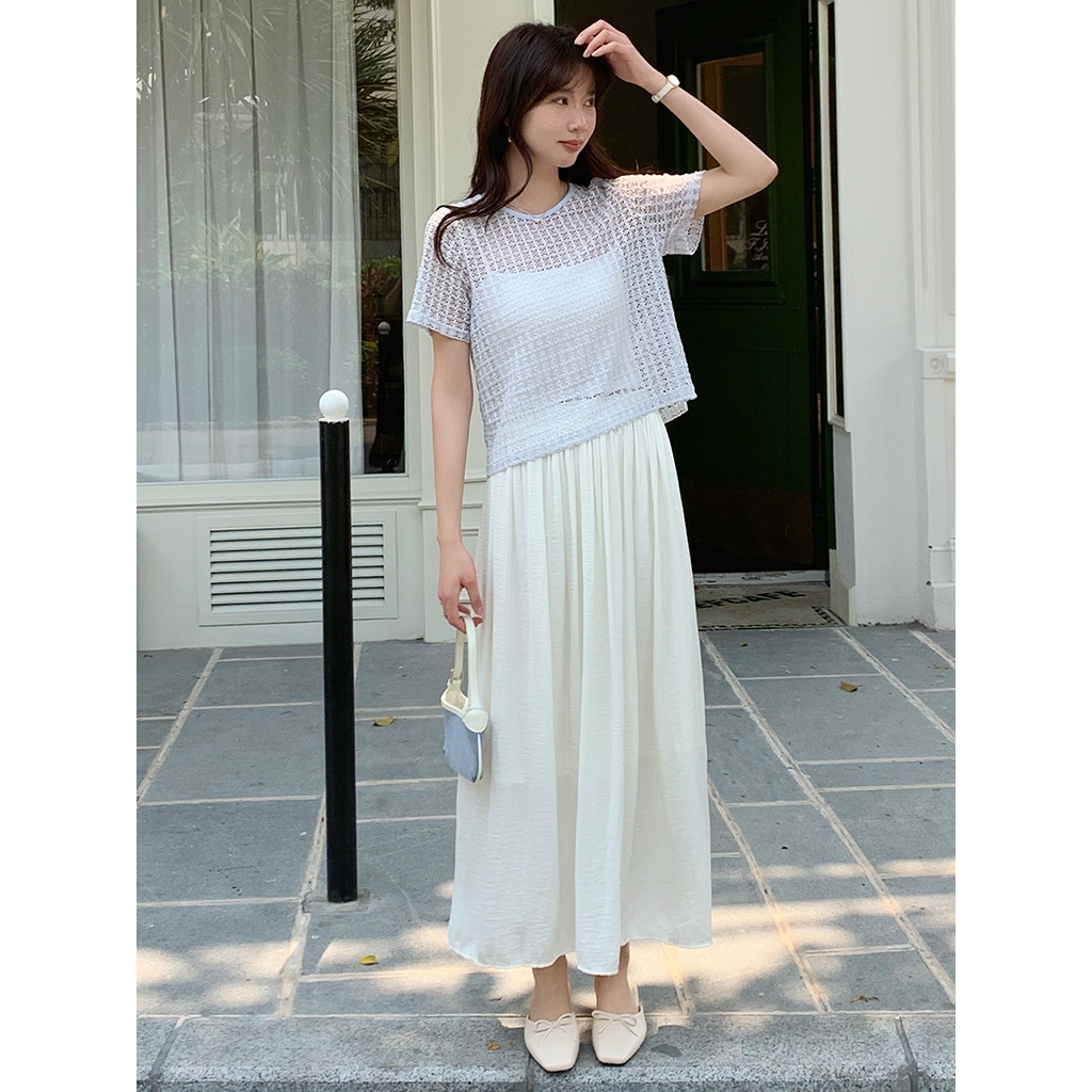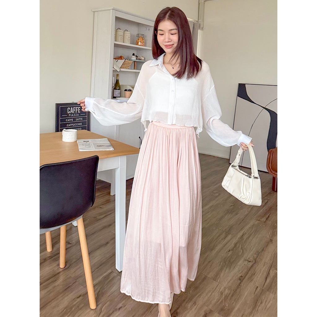 【HARPER】輕盈涼感壓褶長裙 有內裏 | 現貨 中長裙 裙子 涼感【SKE33216J】米杏,F|柔和桃,F|冰晶藍,FHARPER