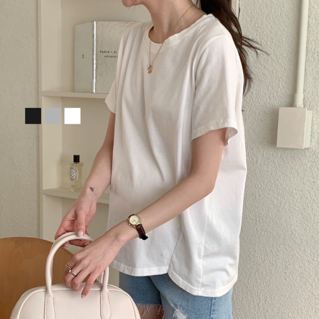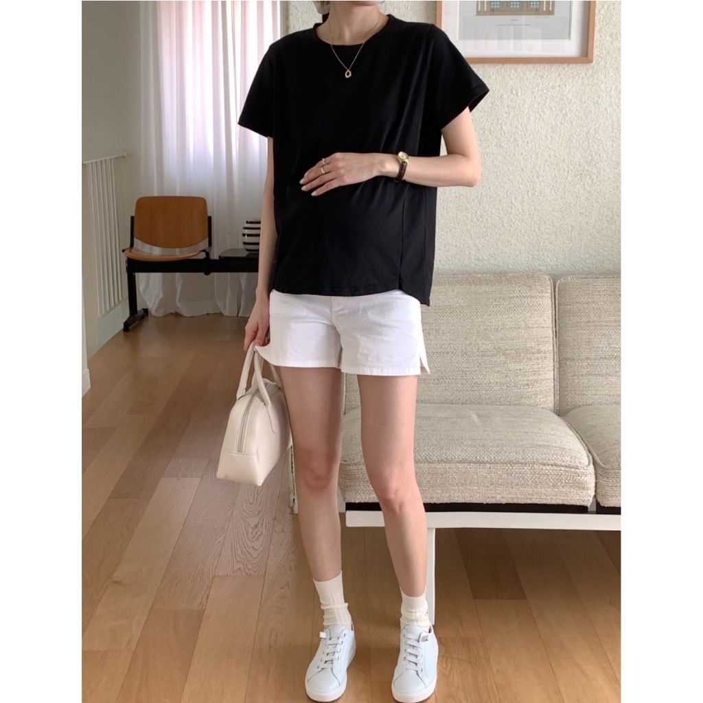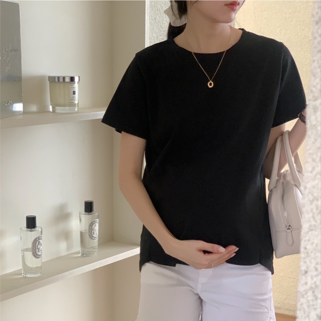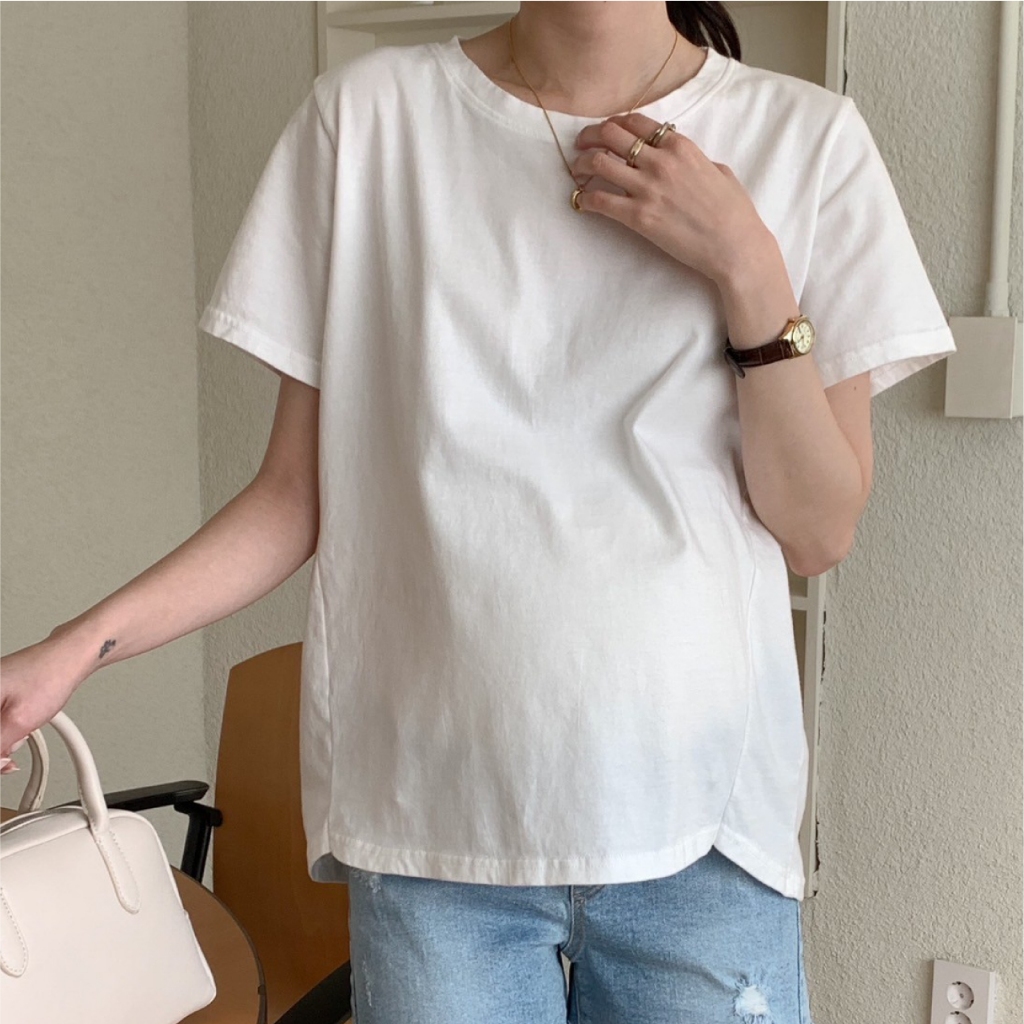 Mamamia孕婦裝 舒適實穿剪裁孕婦棉T 正韓製 孕婦裝 短袖 寬T 百搭T 長版上衣 孕婦上衣 [A1932]黑|白|灰Maternity TopsMamamia孕婦裝