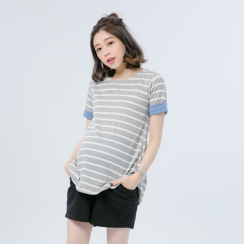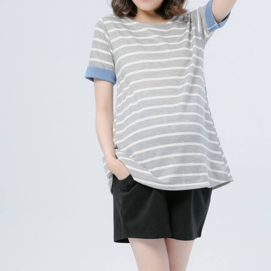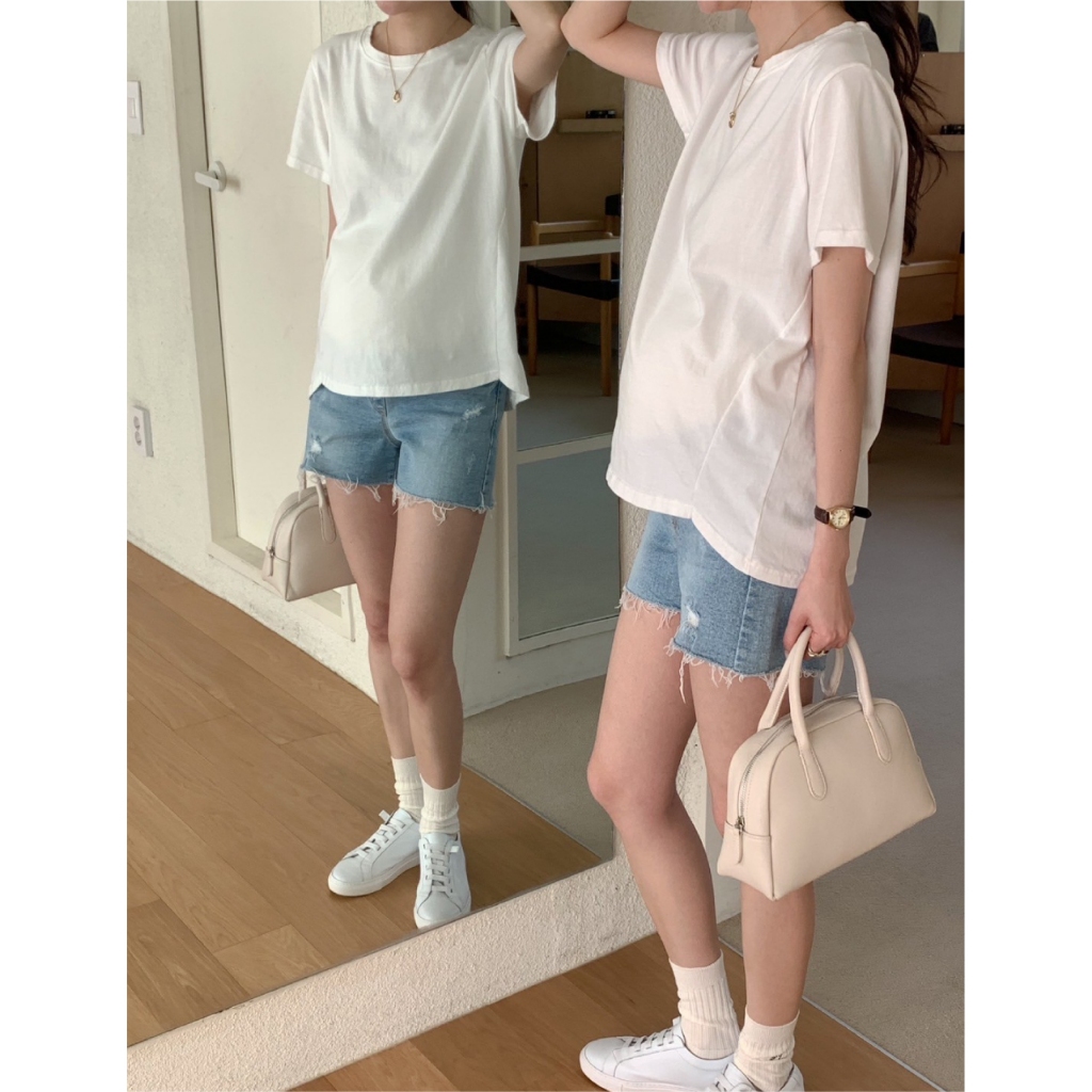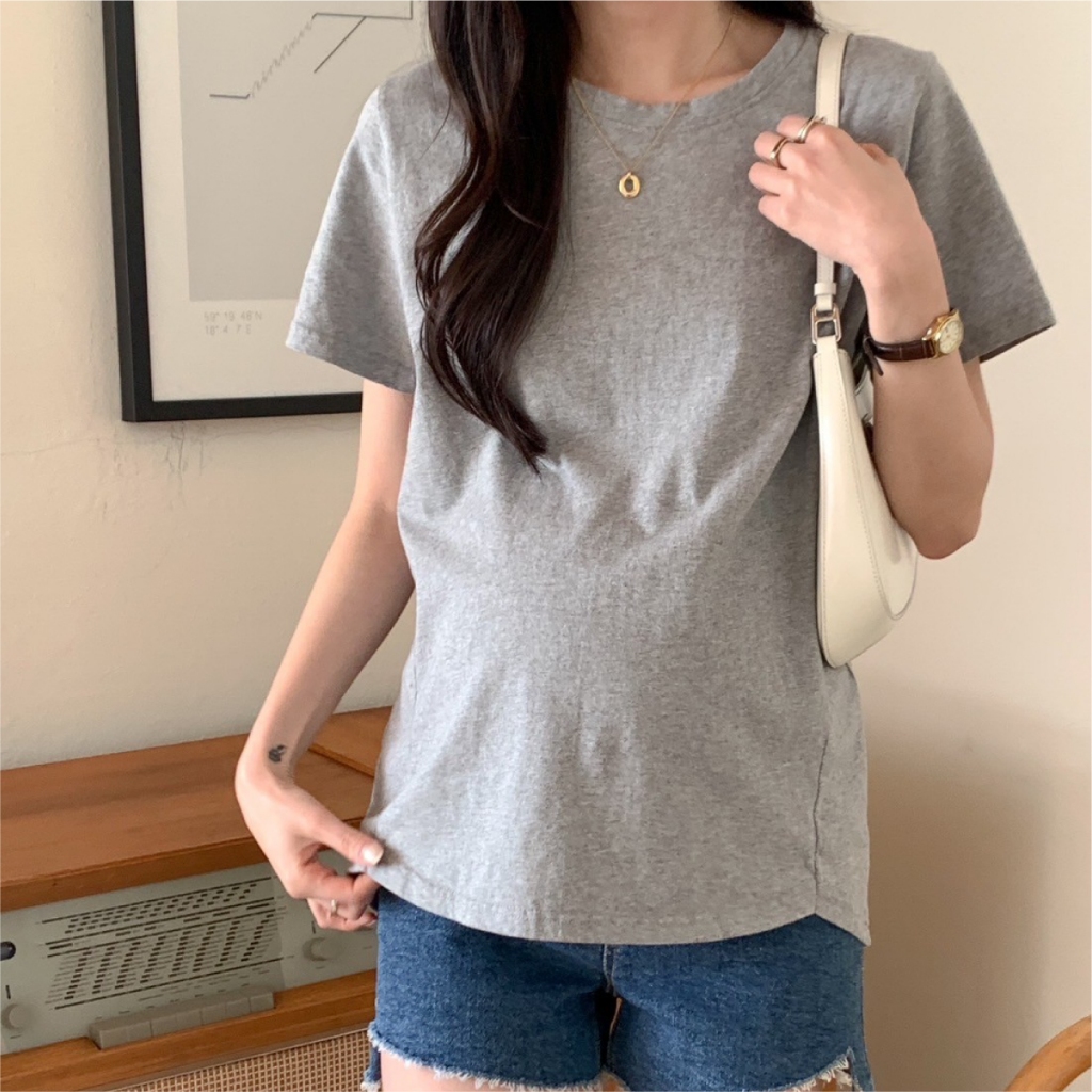 Mamamia孕婦裝 舒適實穿剪裁孕婦棉T 正韓製 孕婦裝 短袖 寬T 百搭T 長版上衣 孕婦上衣 [A1932]黑|白|灰Maternity TopsMamamia孕婦裝