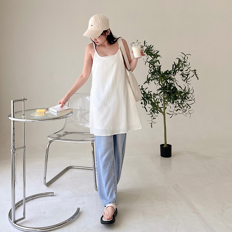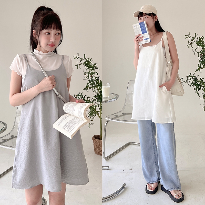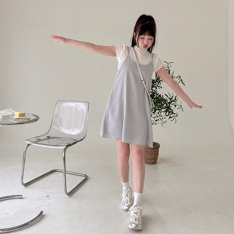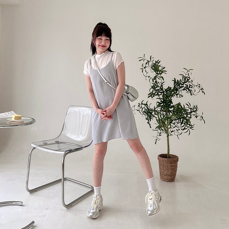【HARPER】夏日涼感肩帶短洋裝 有內裏 | 現貨 短洋裝 細肩帶 涼感【DSB64429H】白,F|灰,FHARPER