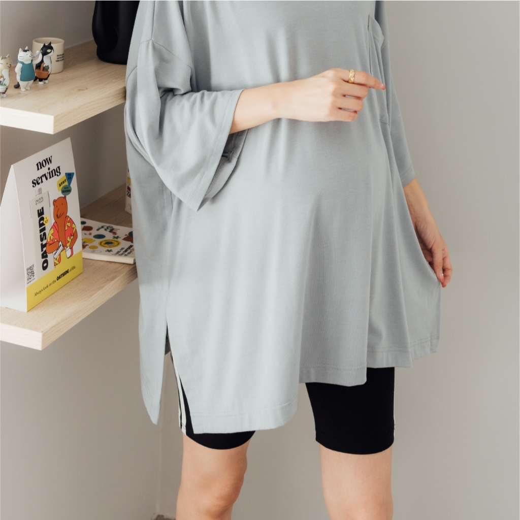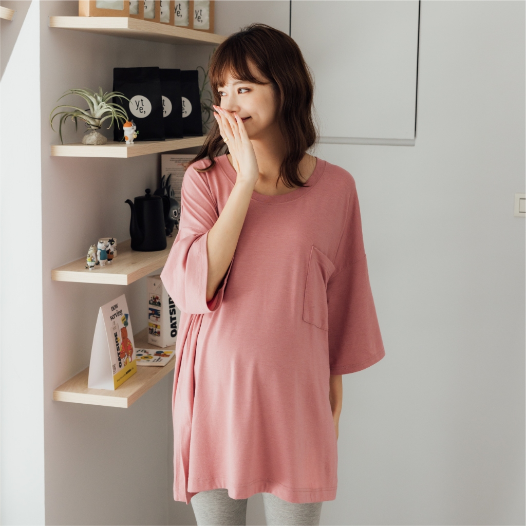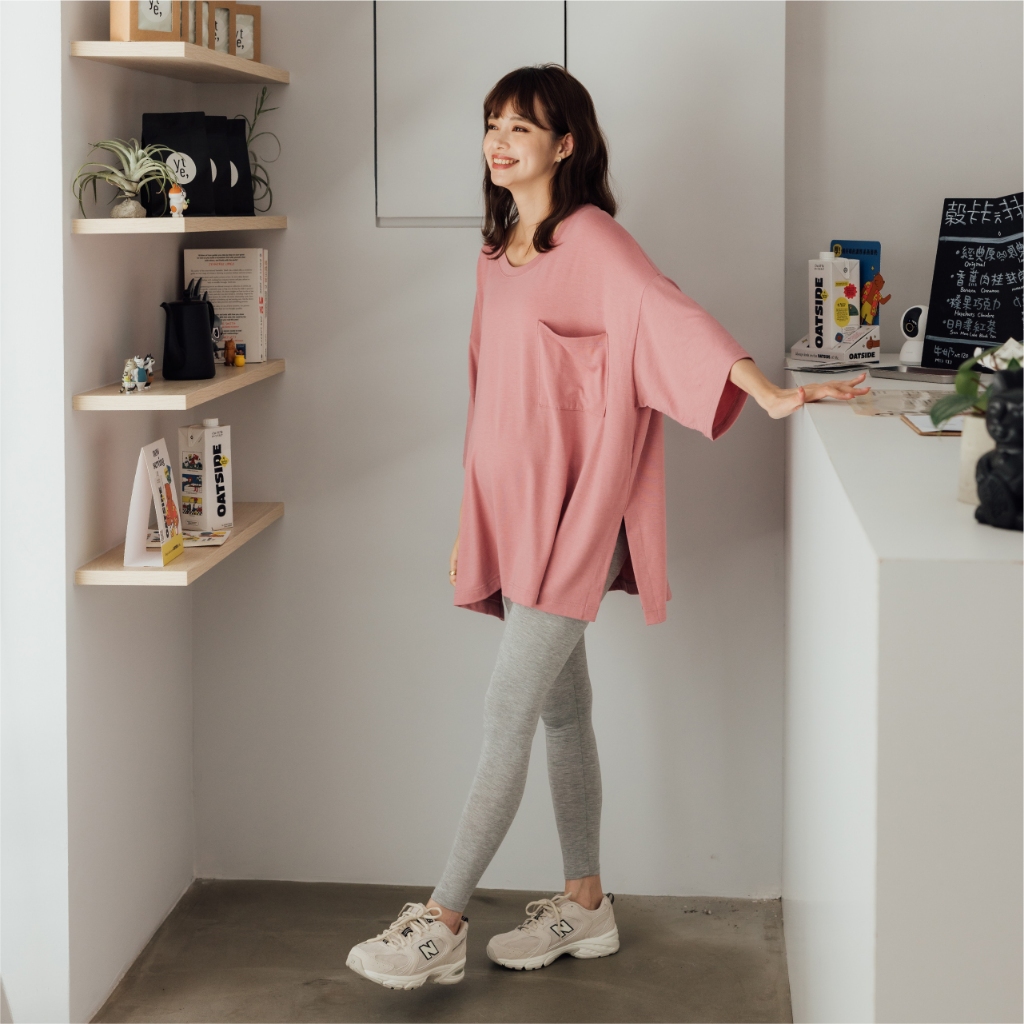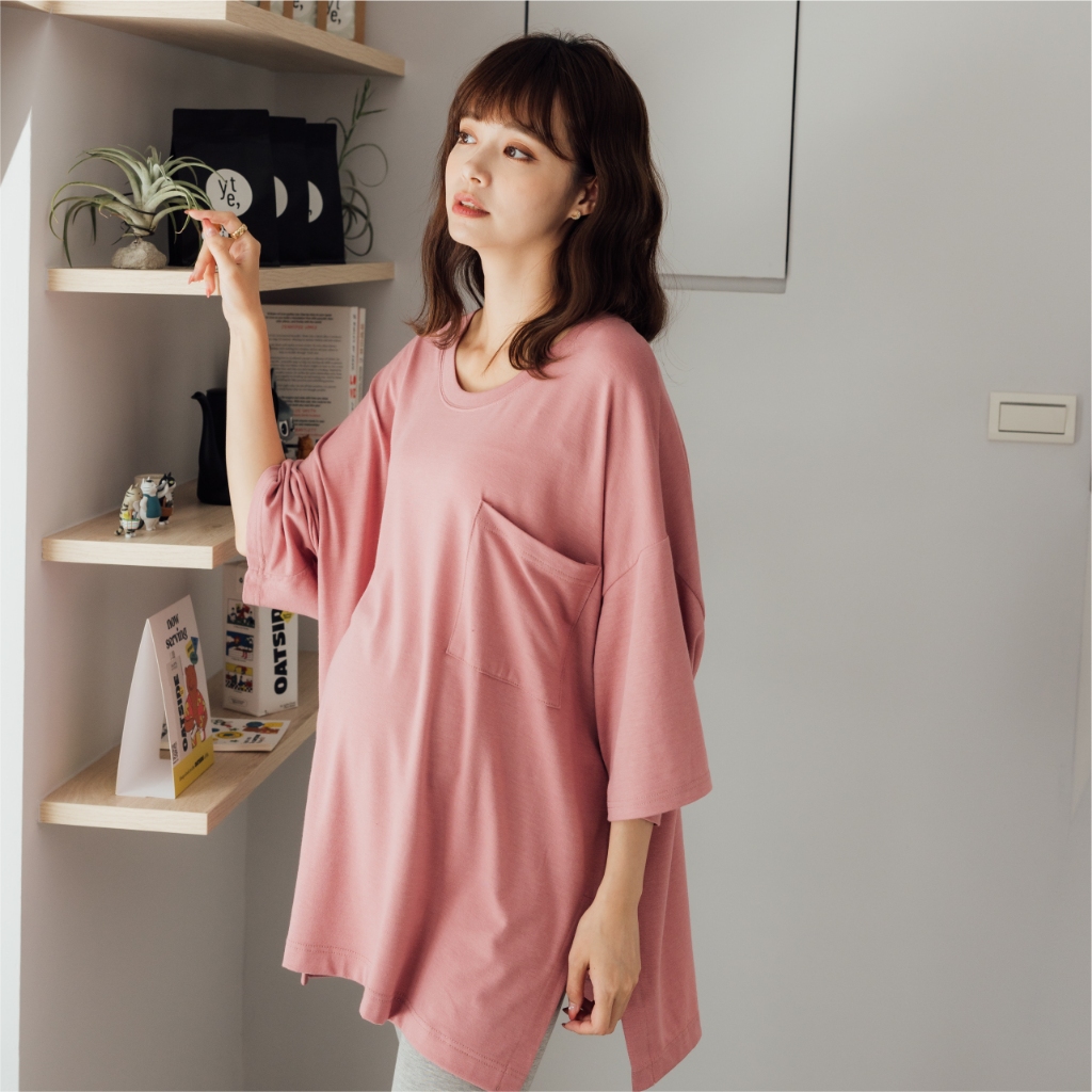 Mamamia孕婦裝 軟糯絲棉側開岔長版口袋T 正韓製 孕婦上衣 孕婦裝 長版上衣 短袖 口袋T [C3183]奶茶|粉|藍Maternity TopsMamamia孕婦裝