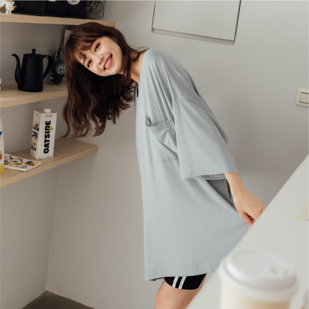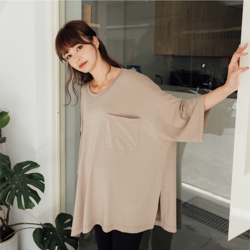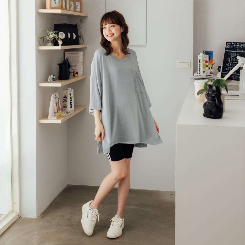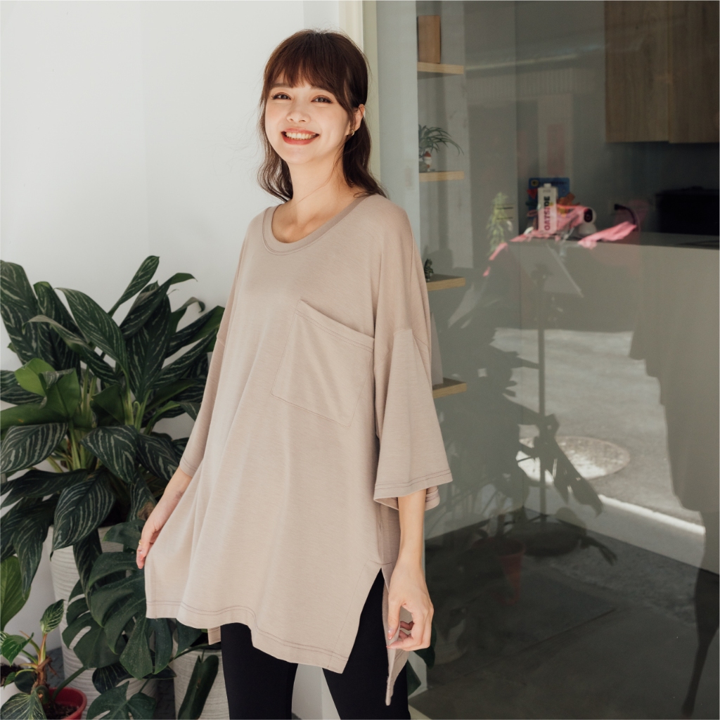 Mamamia孕婦裝 軟糯絲棉側開岔長版口袋T 正韓製 孕婦上衣 孕婦裝 長版上衣 短袖 口袋T [C3183]奶茶|粉|藍Maternity TopsMamamia孕婦裝
