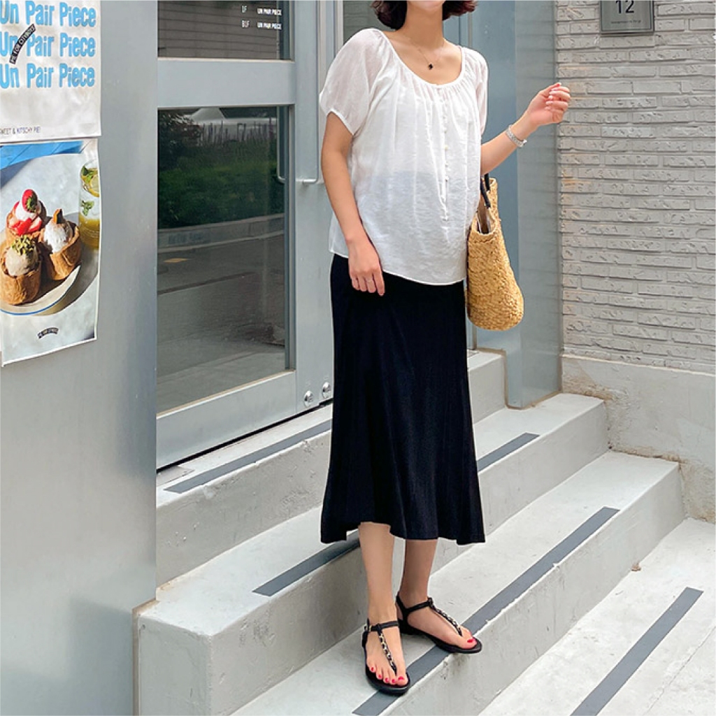 Mamamia孕婦裝 夏日舒適顯瘦彈力孕婦裙 M~L 正韓製 孕婦洋裝 孕婦穿搭 孕婦裝 [B6382]深灰,L|淺灰,M|淺灰,L|黑,M|黑,L|深灰,MMaternity BottomsMamamia孕婦裝