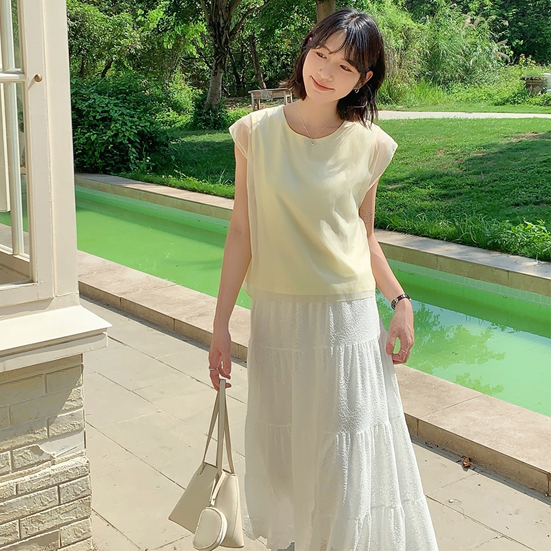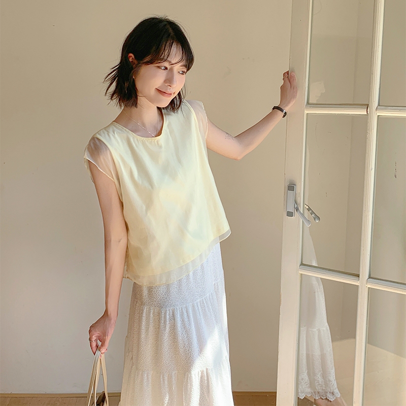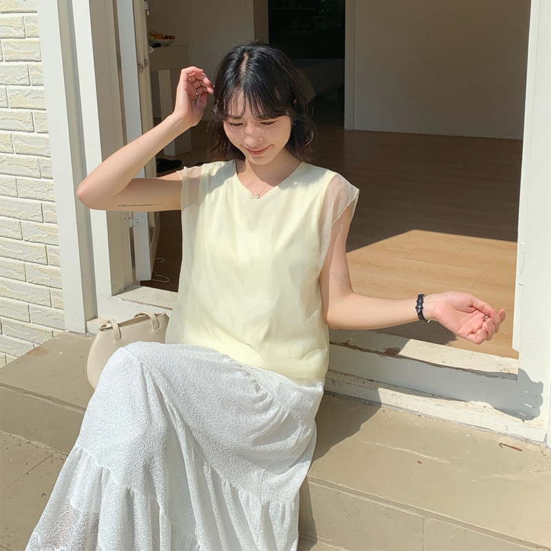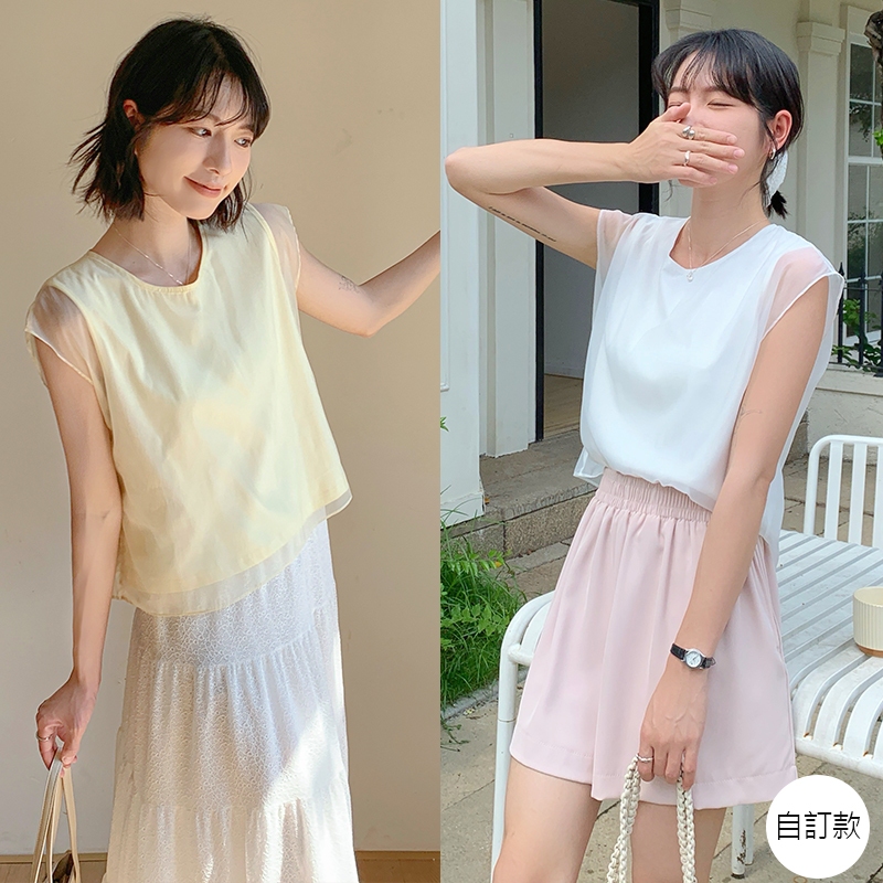 【HARPER】品牌自訂日系拼紗包袖上衣 | 現貨 短袖上衣 包秀 婚禮 包袖【CLZ52922J】白,S~M|白,L~XL|杏,S~M|杏,L~XLT-shirtsHARPER