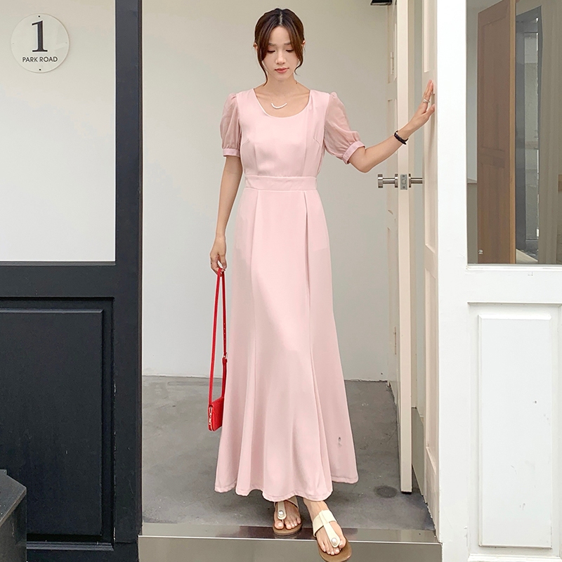 【HARPER】品牌自訂氣質小姐姐袖接紗洋裝 有內裏 | 現貨 短袖洋裝 連身 婚禮【DSB43024J】米杏,S~M|米杏,L~XL|粉,S~M|粉,L~XLHARPER