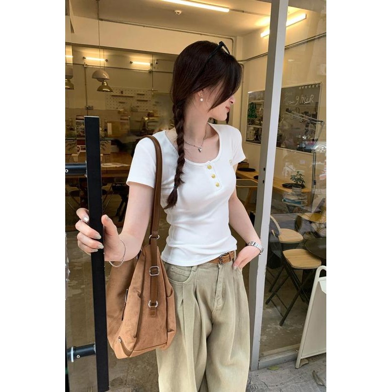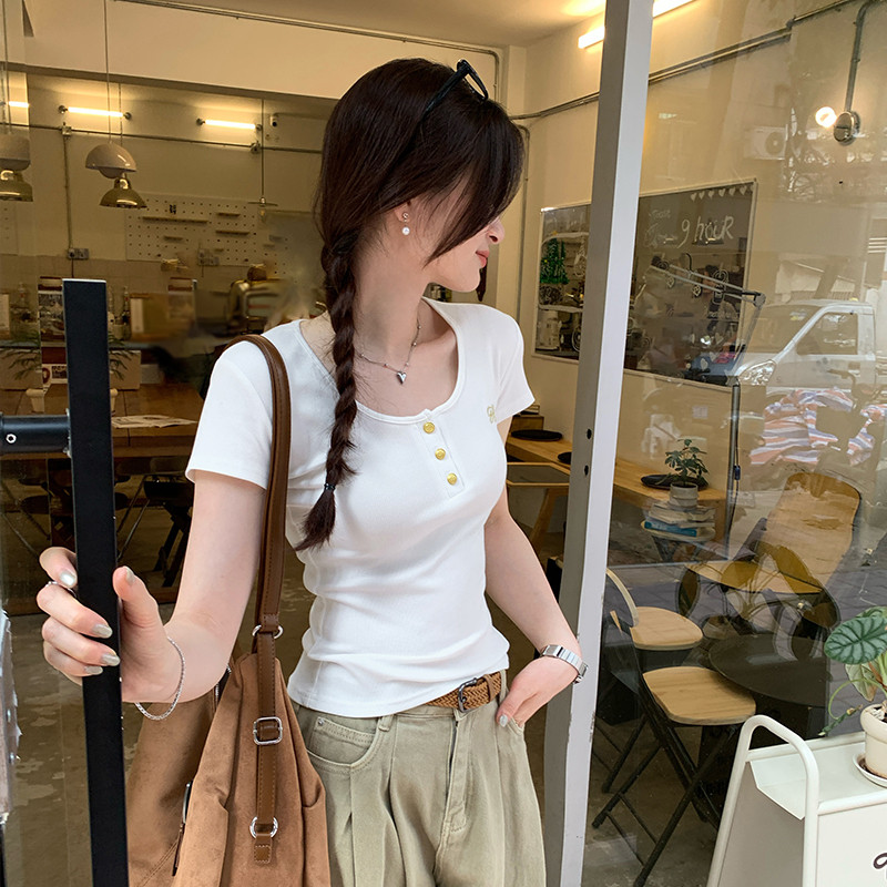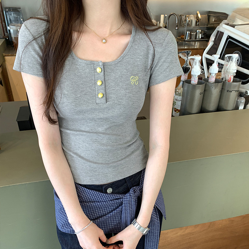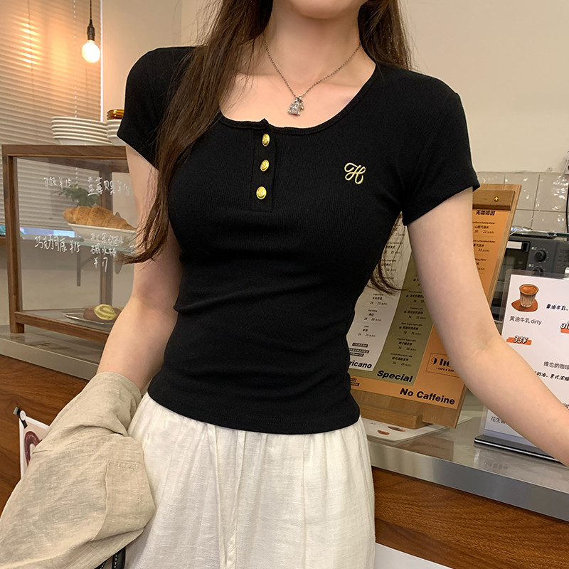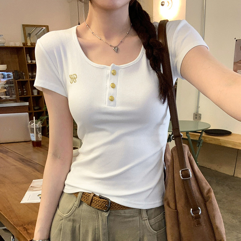 【HOT 本舖】 實拍圖刺繡正肩短袖T恤女2025夏新款美式辣妹顯瘦漂亮小上衣白色,S|白色,M|白色,L|白色,XL|灰色,S|灰色,M|灰色,L|灰色,XL|藏青色,S|藏青色,M|藏青色,L|藏青色,XL|黑色,S|黑色,M|黑色,L|黑色,XLT-shirtsHOT本舖|女裝館