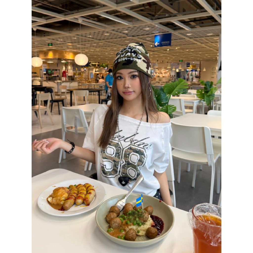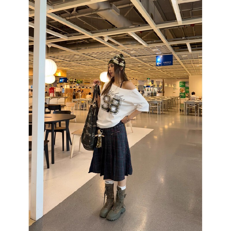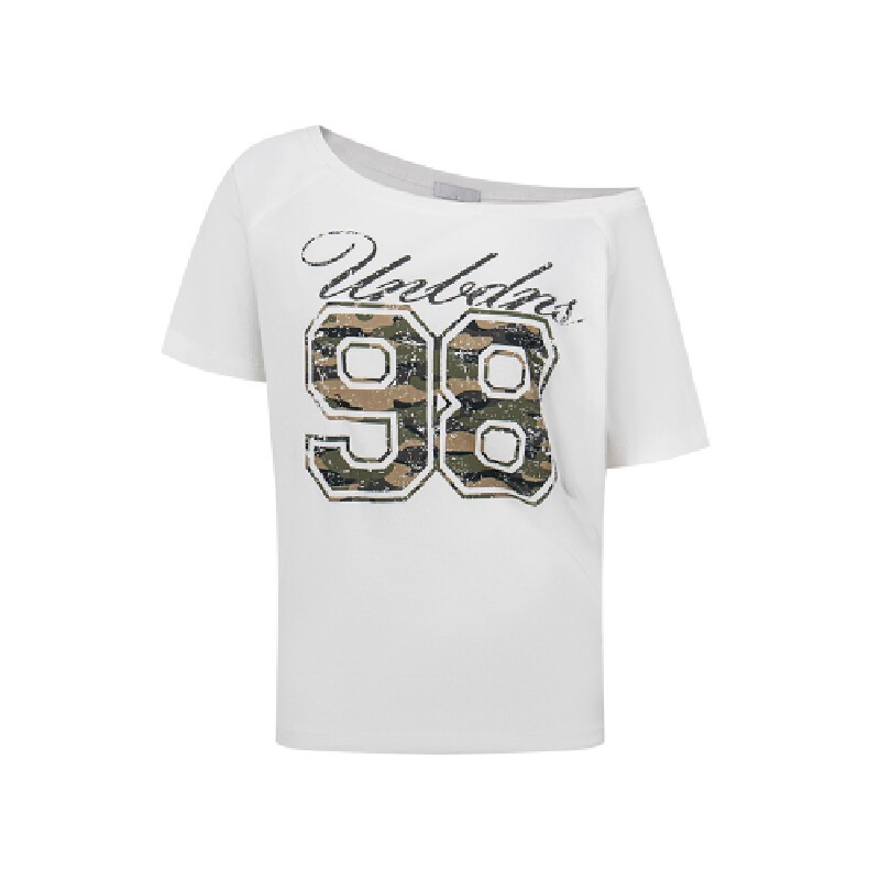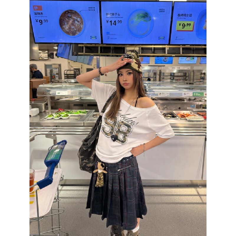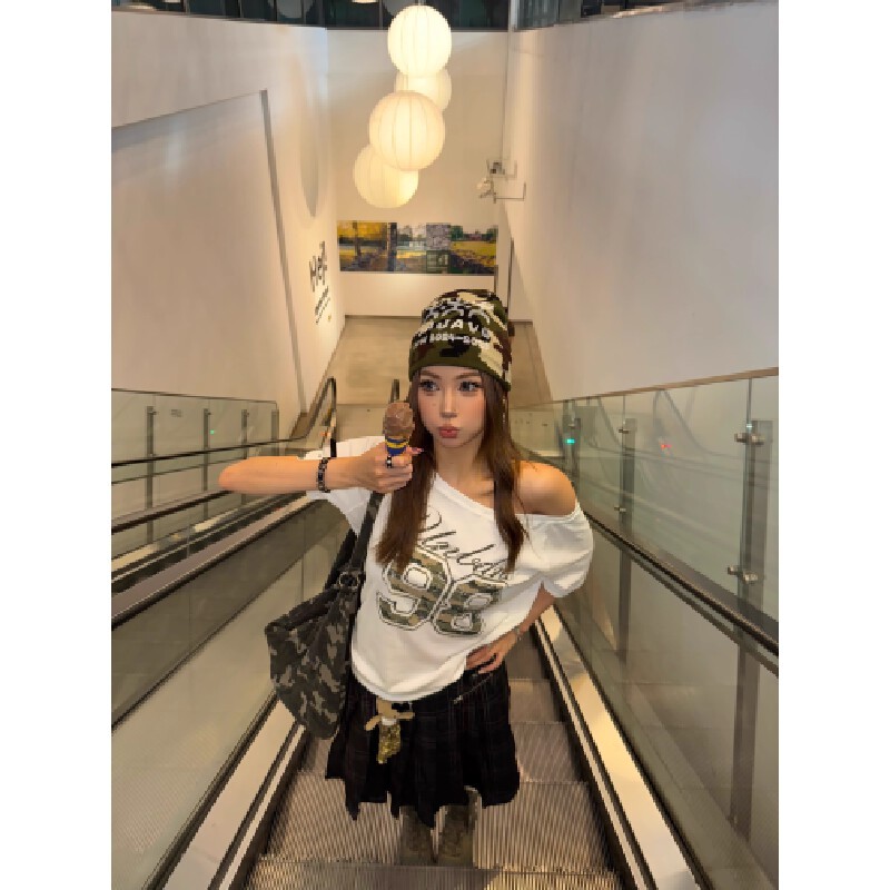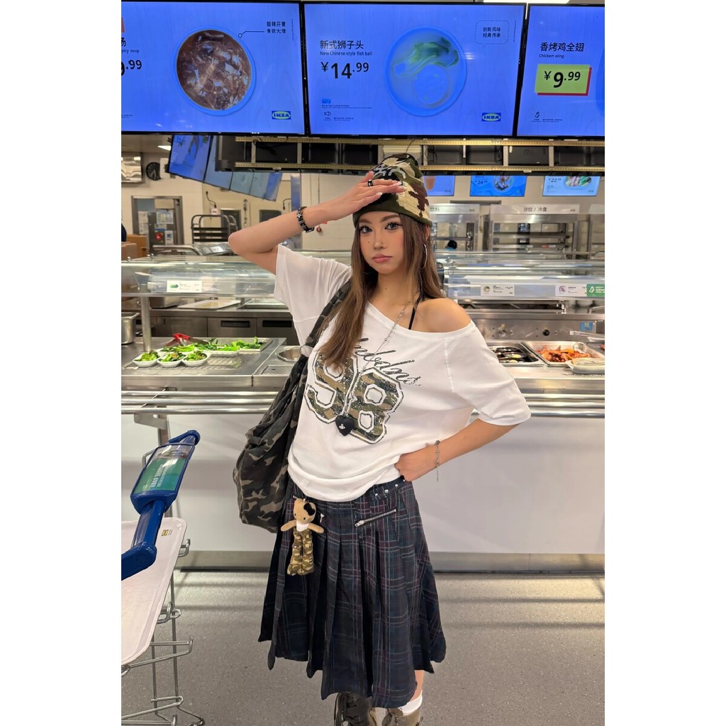 【HOT 本舖】 220克92%棉8%氨綸美式辣妹斜肩字母印花短袖T恤女白色,S|白色,M|白色,L|白色,XLT-shirtsHOT本舖|女裝館