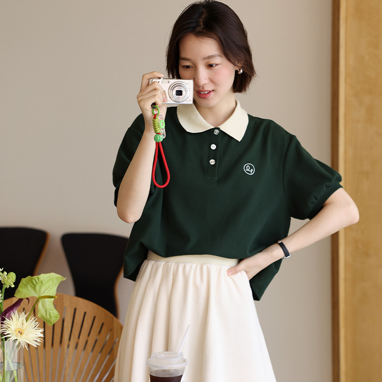 【HOT 本舖】 正肩杏色t恤女短袖夏季polo領設計感小眾撞色短款小個子半袖上衣杏色,S|杏色,M|杏色,L|杏色,XL|杏色,2XL|杏色,3XL|墨綠色,S|墨綠色,M|墨綠色,L|墨綠色,XL|墨綠色,2XL|墨綠色,3XLPolo ShirtsHOT本舖|女裝館