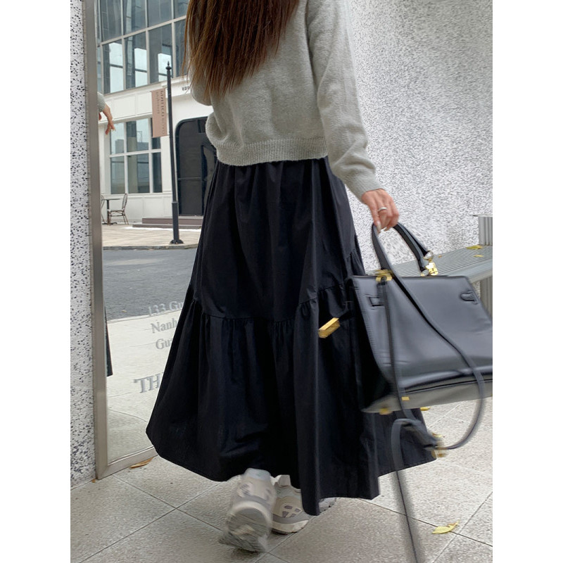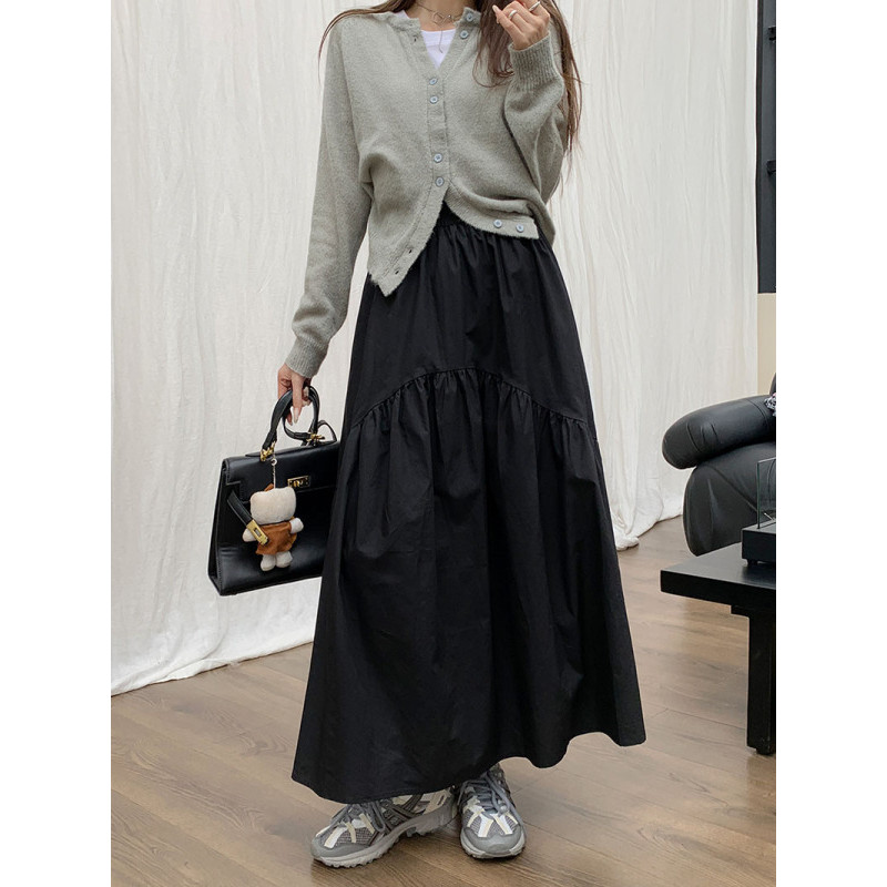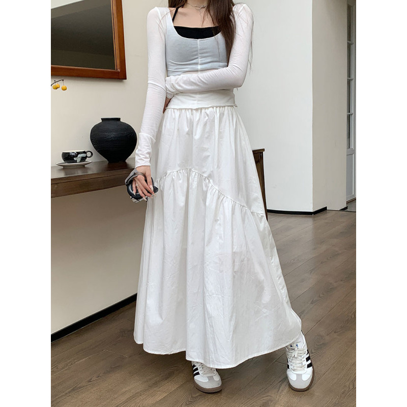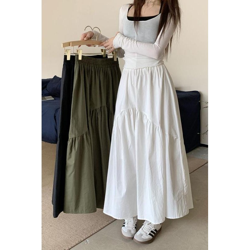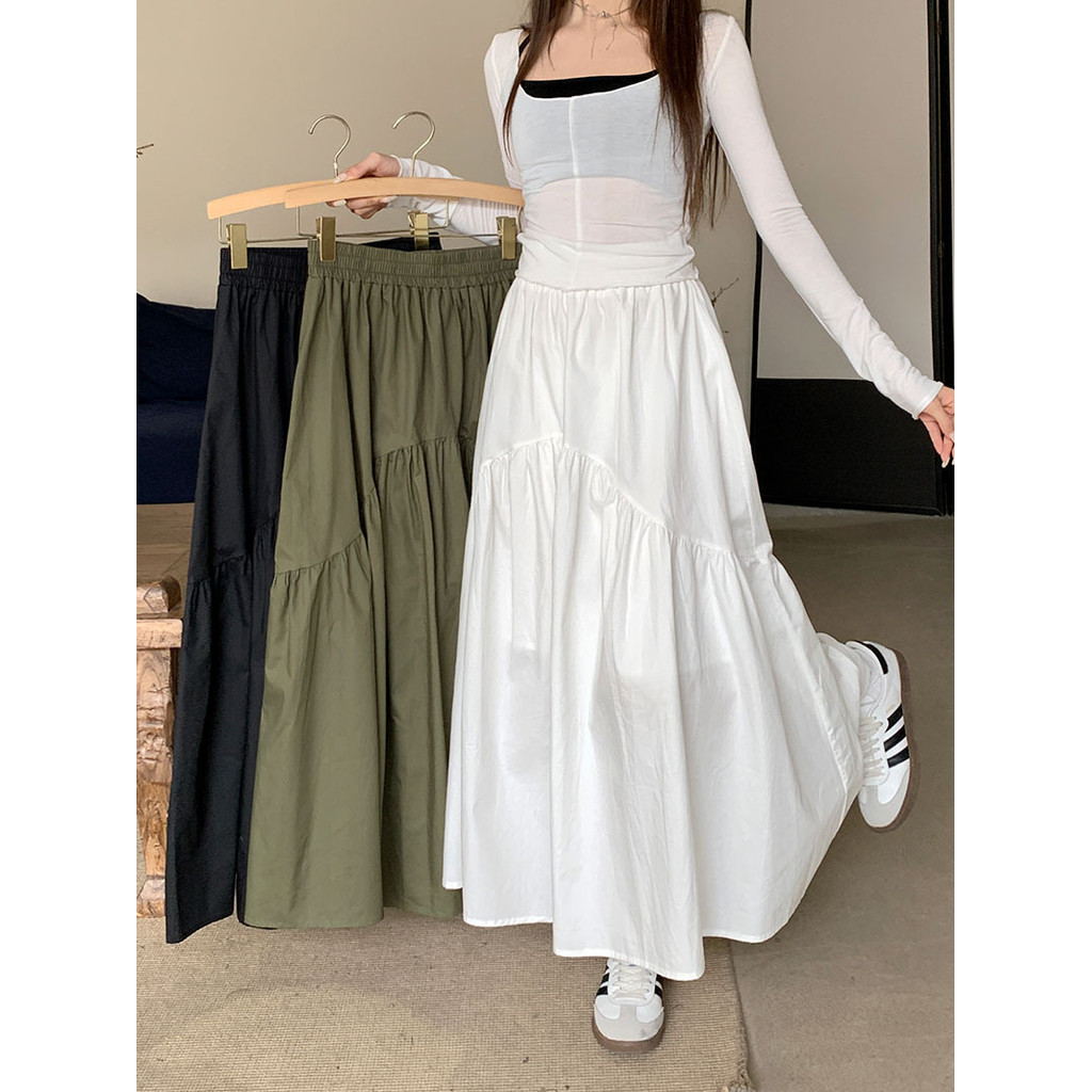【HOT 本舖】 實拍~2023秋季新款韓版鬆緊腰時尚設計感褶皺拼接長裙女潮軍綠色,S|軍綠色,M|軍綠色,L|黑色,S|黑色,M|黑色,L|白色,S|白色,M|白色,LHOT本舖|女裝館