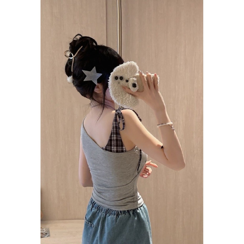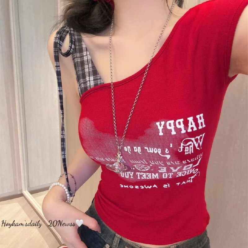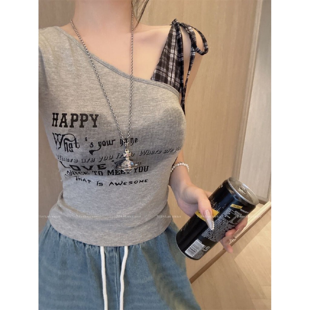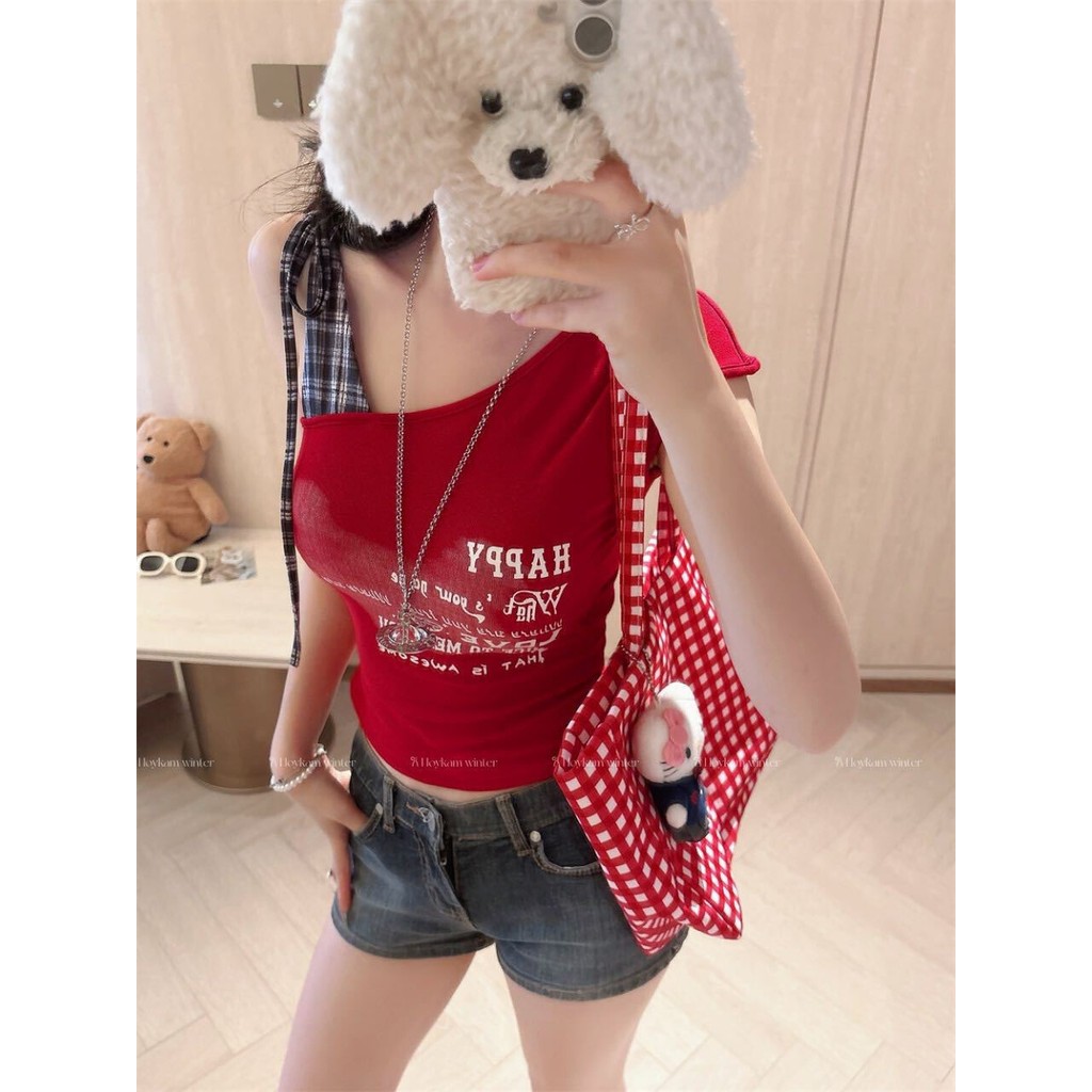 【HOT 本舖】夏季新款甜辣性感字母印花格子綁帶吊帶背心一體式帶胸墊上衣bra top辣妹背心白色,均碼|灰色,均碼|黑色,均碼|紅色,均碼Tanks & CamisolesHOT本舖|女裝館