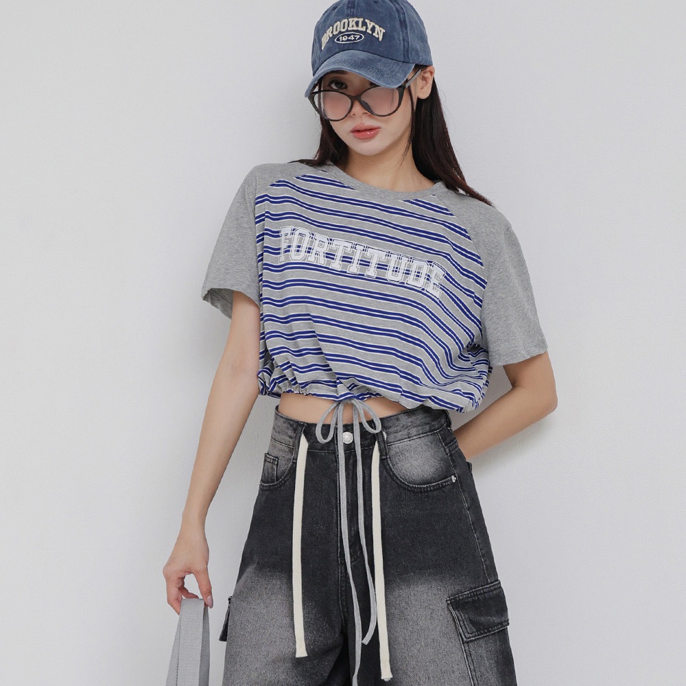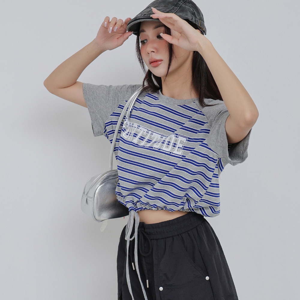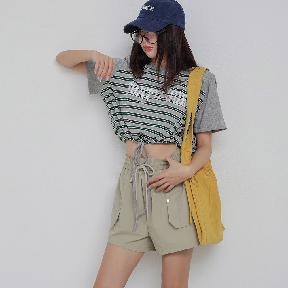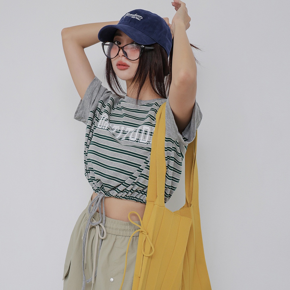 IN SHOP 撞色橫條縮腰T-共3色【KT224413】紅|綠|藍T-shirtsIN’ SHOP 旗艦店