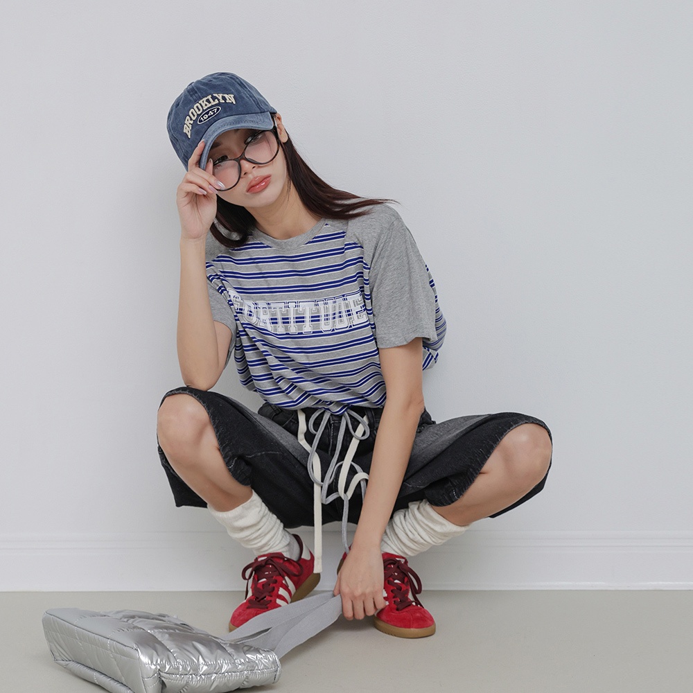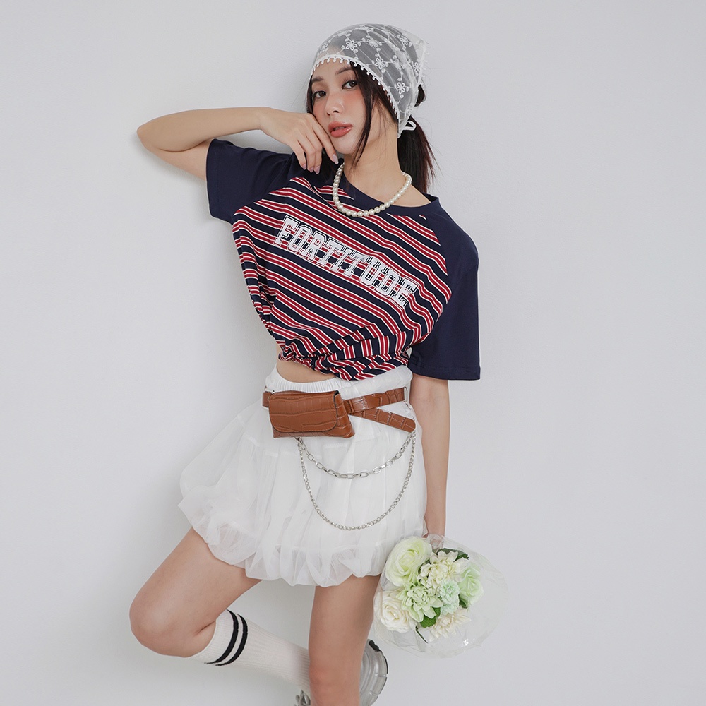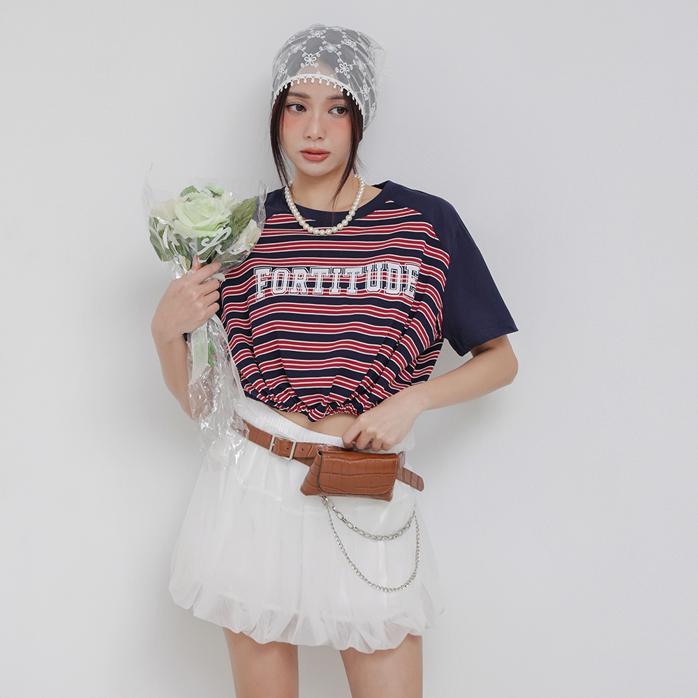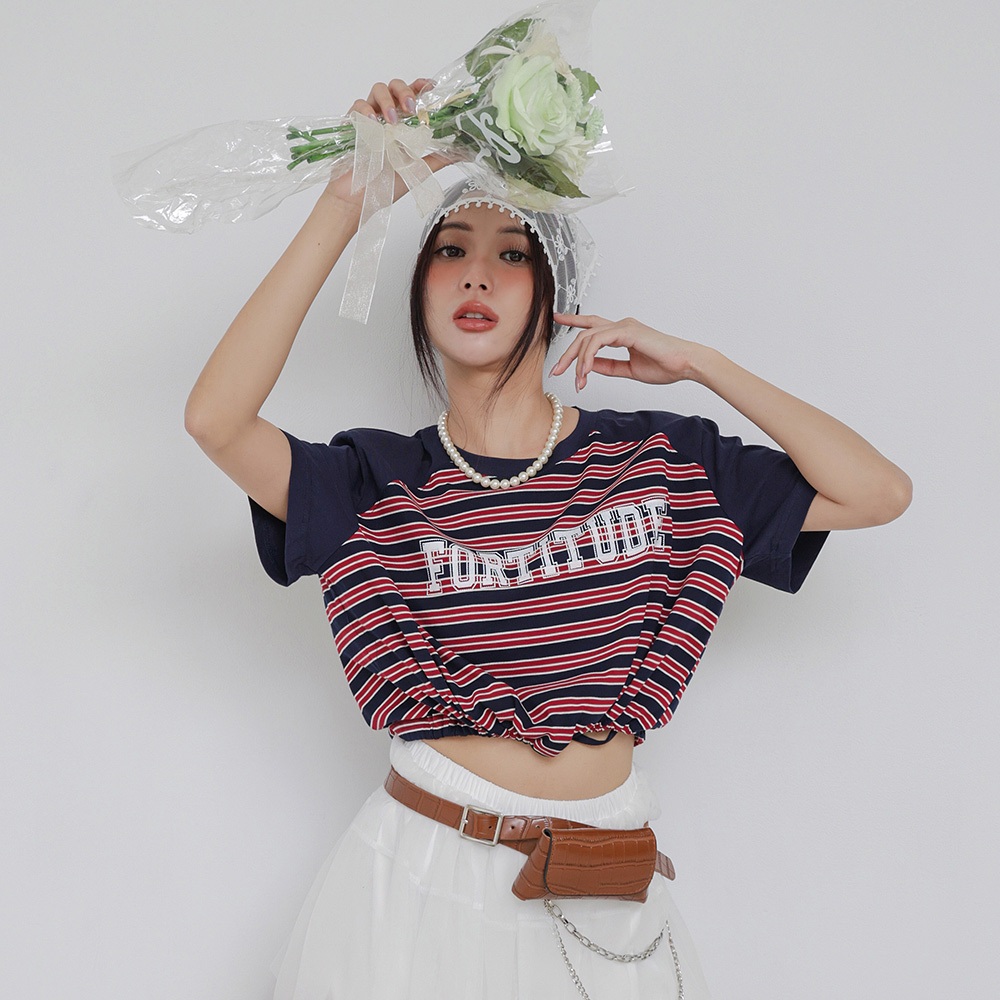 IN SHOP 撞色橫條縮腰T-共3色【KT224413】紅|綠|藍T-shirtsIN’ SHOP 旗艦店