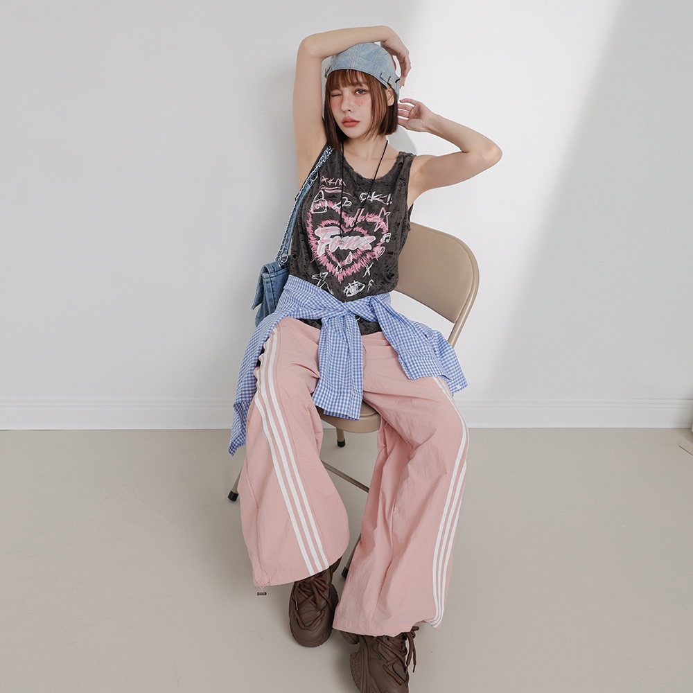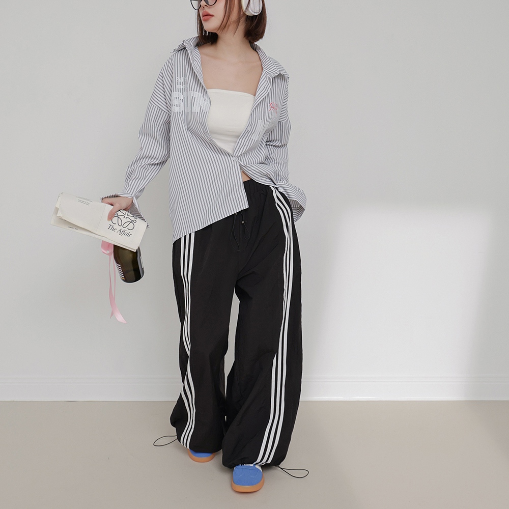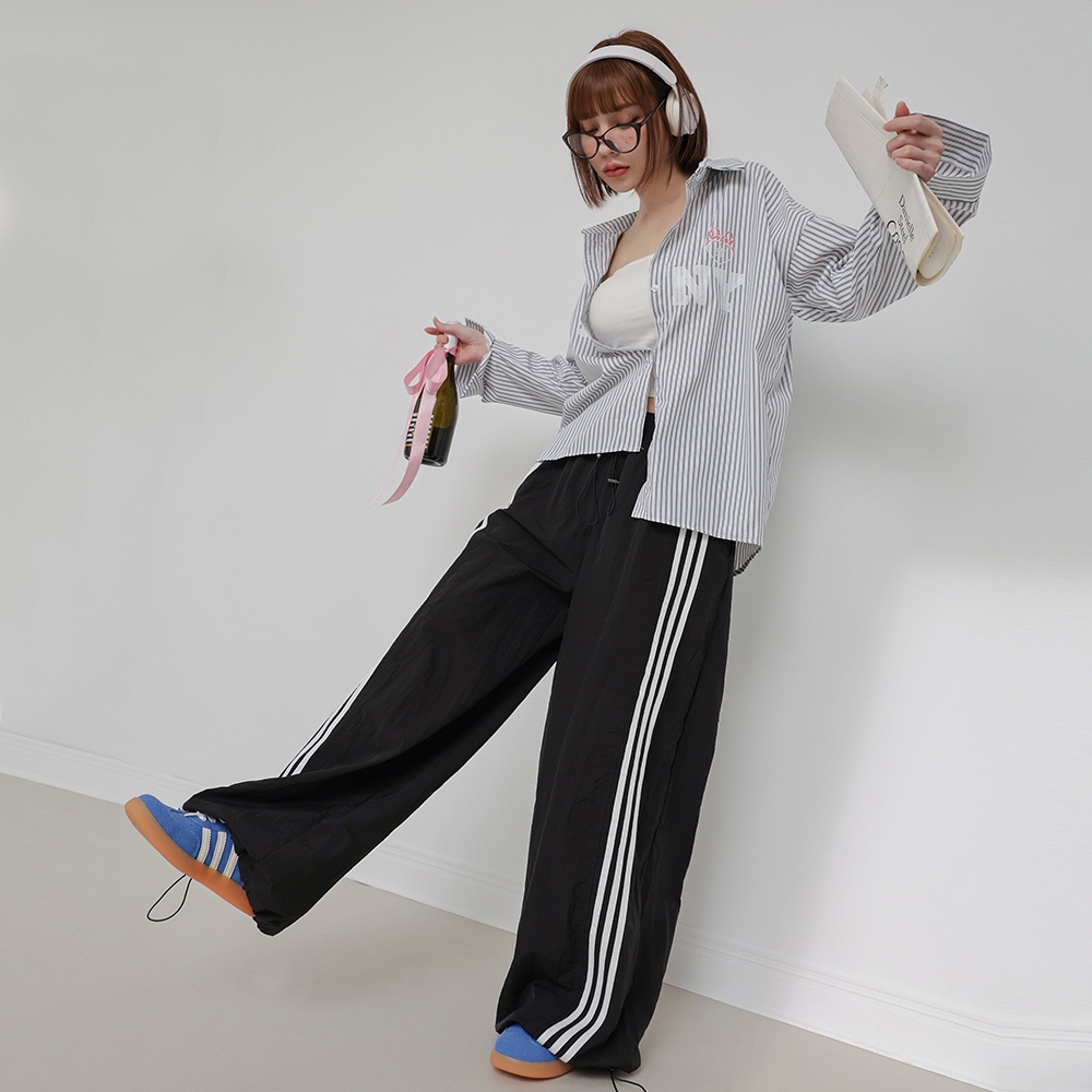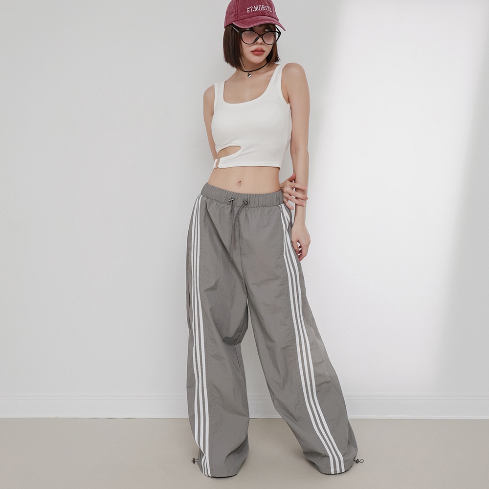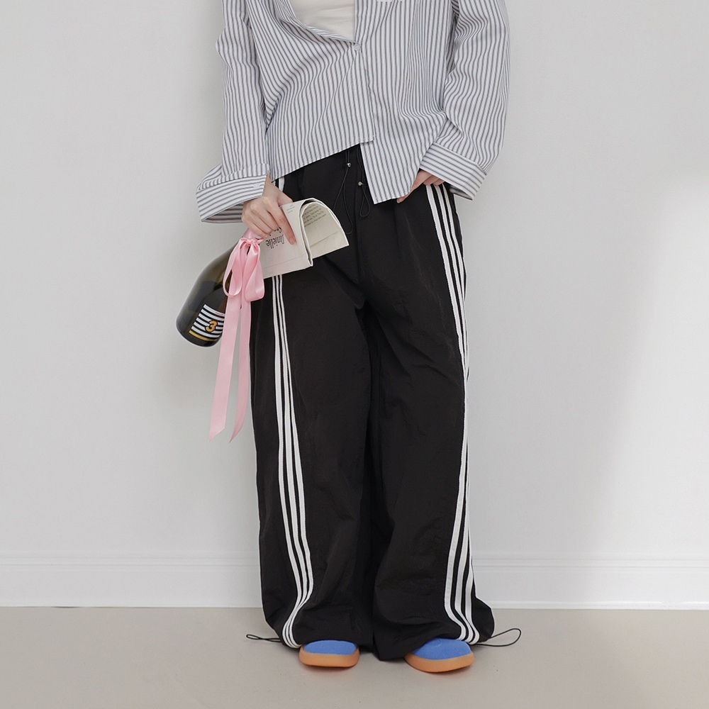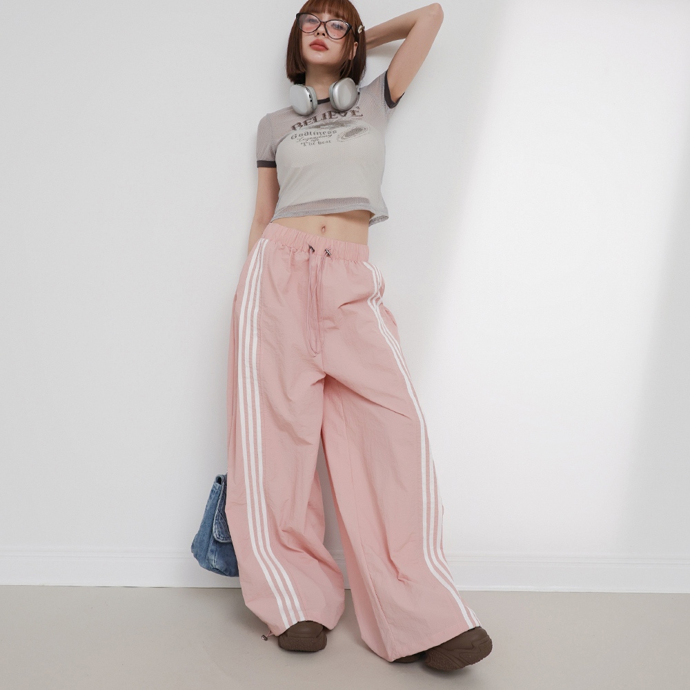 IN SHOP 側三槓速乾運動寬褲-共3色【KT201704】粉|灰|黑PantsIN’ SHOP 旗艦店