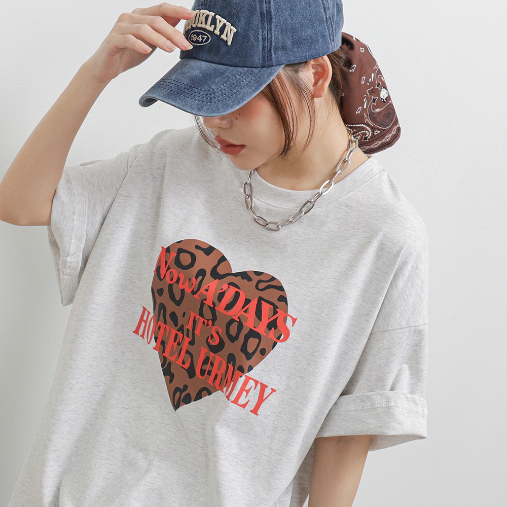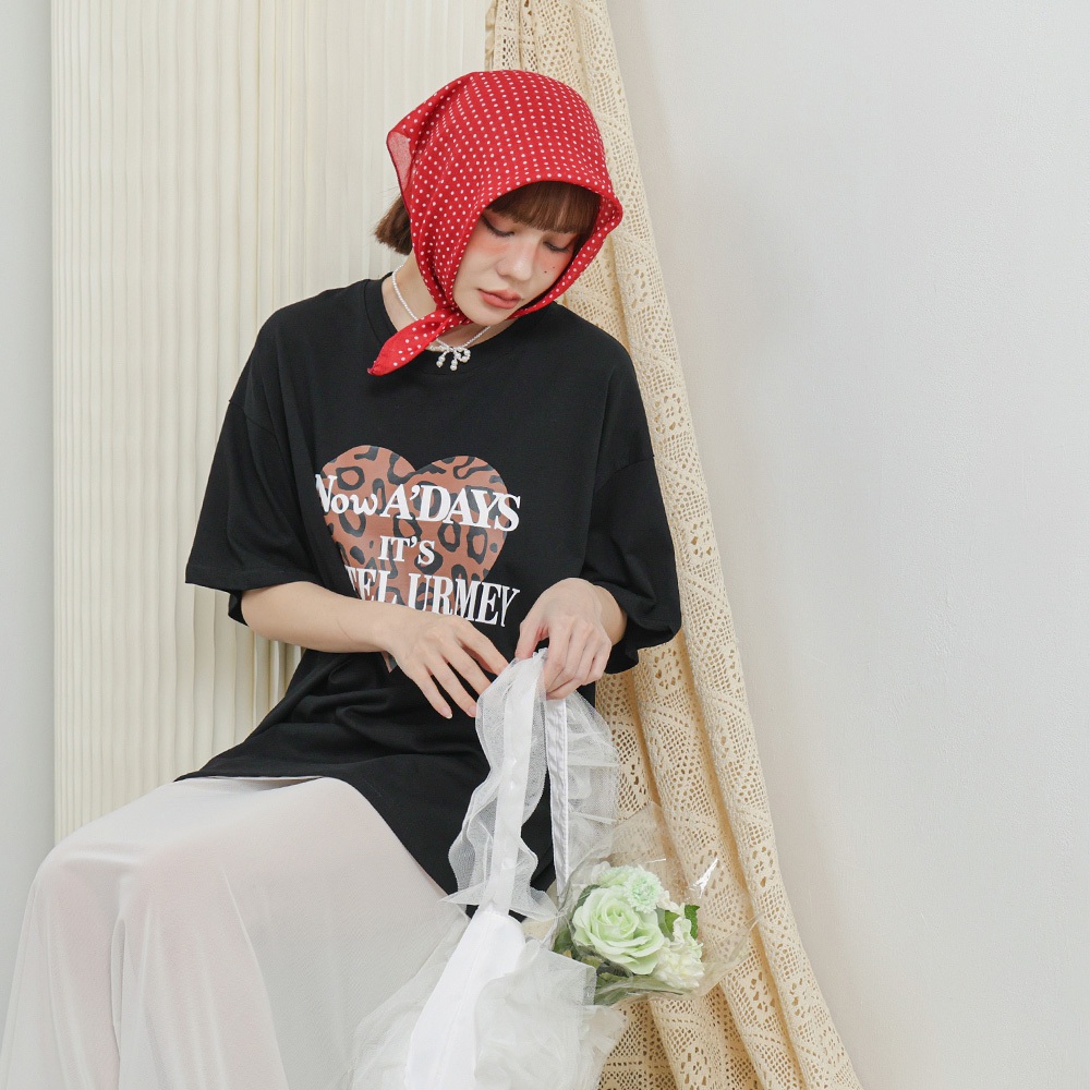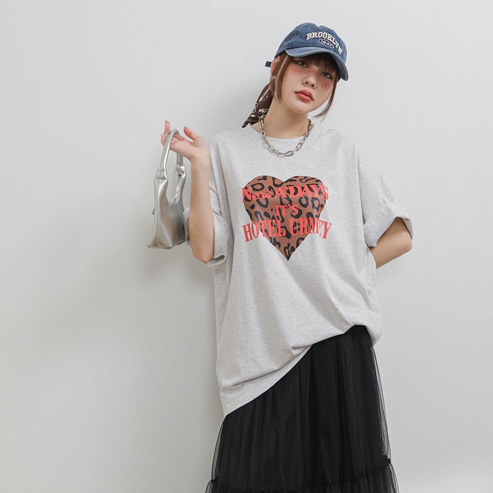 IN SHOP 豹紋愛心大T-共3色【KT224321】白|灰|黑T-shirtsIN’ SHOP 旗艦店