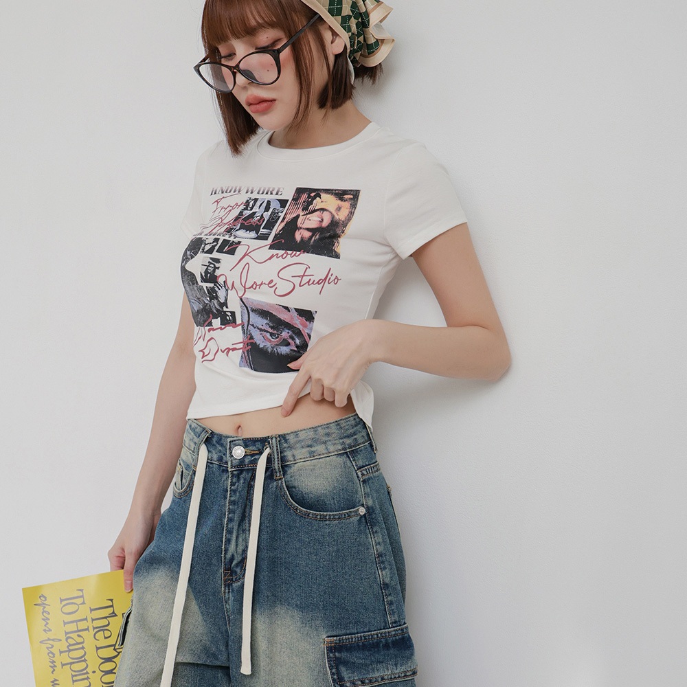 IN SHOP 合身插圖彈力棉T-共3色【KT224453】白|灰|黑T-shirtsIN’ SHOP 旗艦店